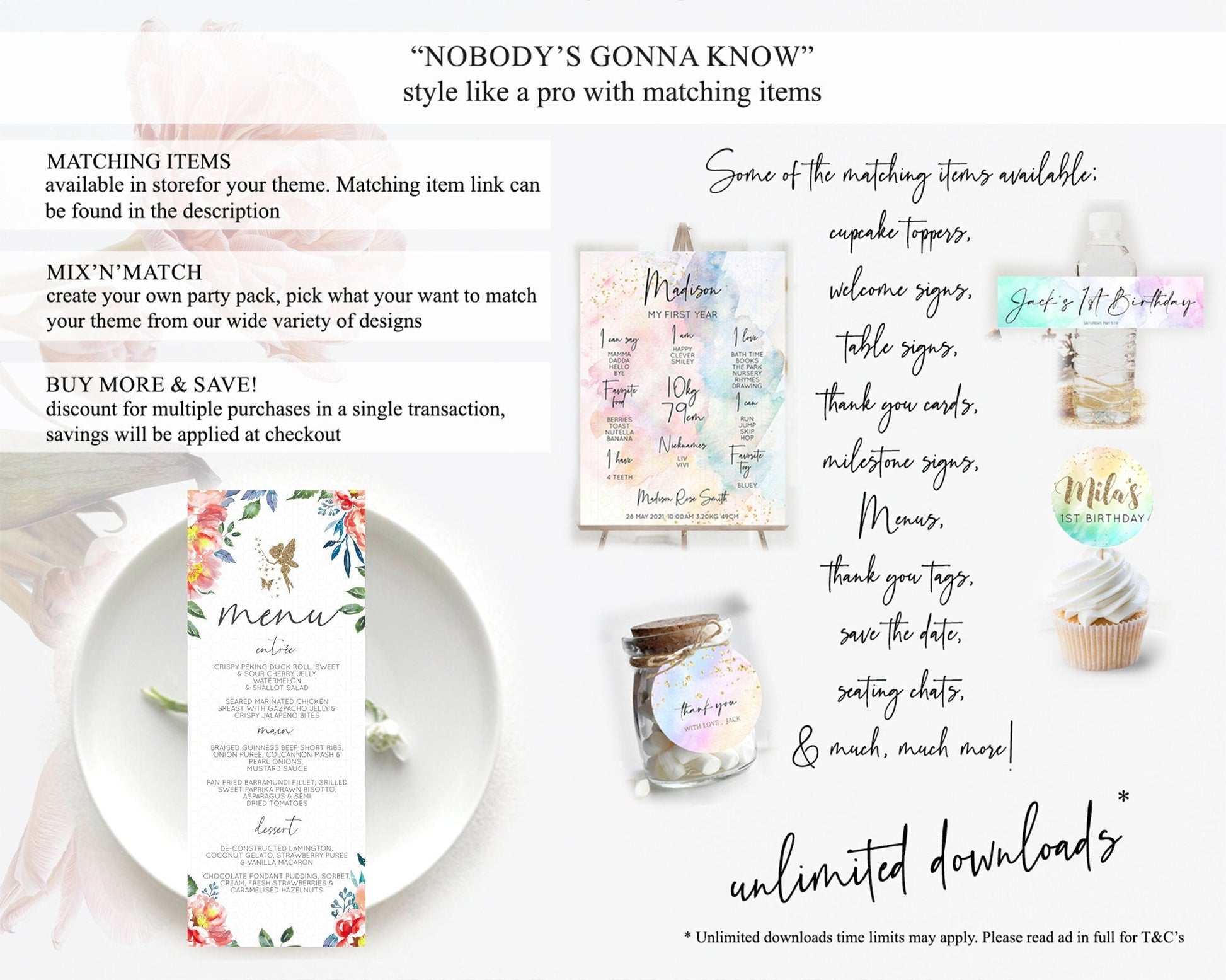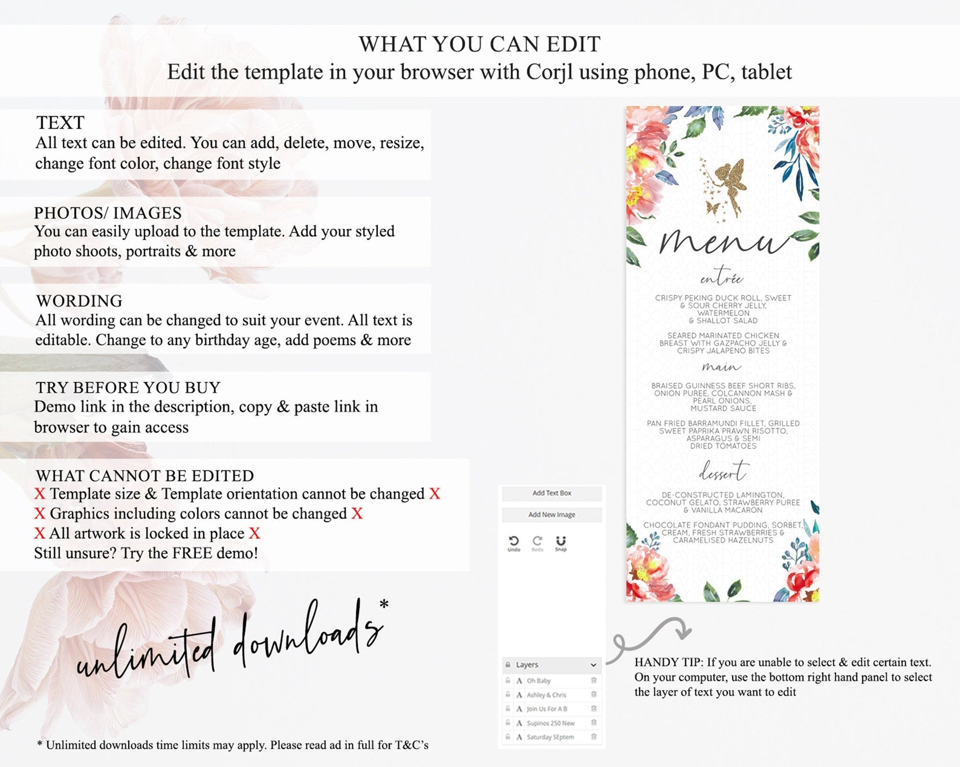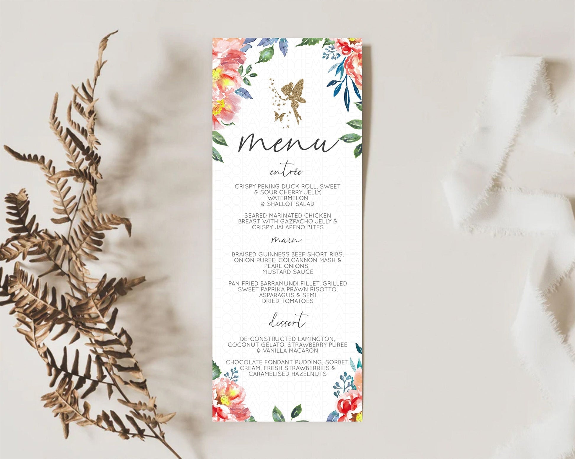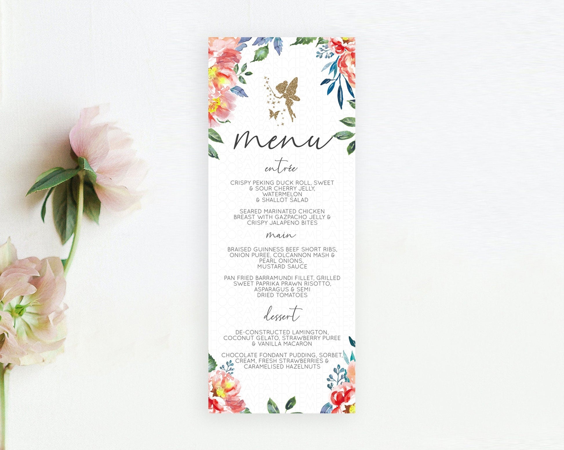 Fairy Menu Fairy Menu Template Enchanted Garden Pastel Floral Butterfly Table Decor Fairy Secret Garden Dinner Dessert Food Menu D10752