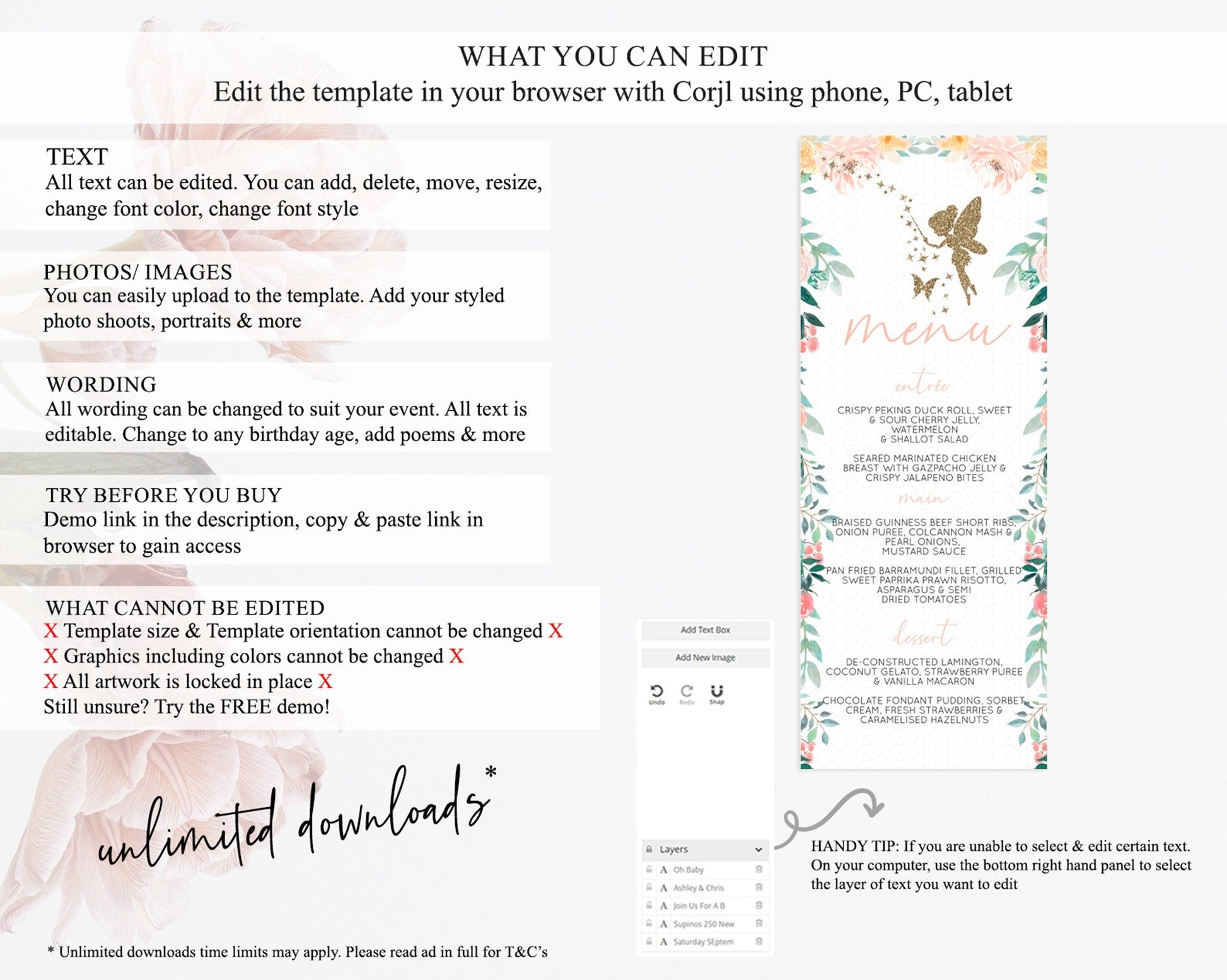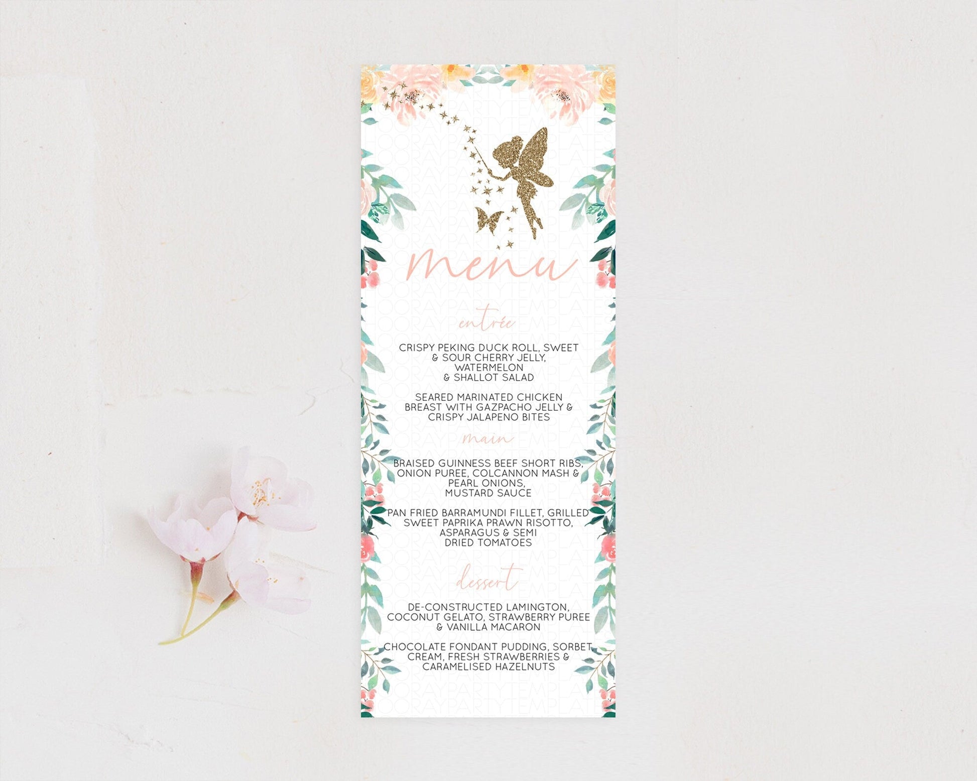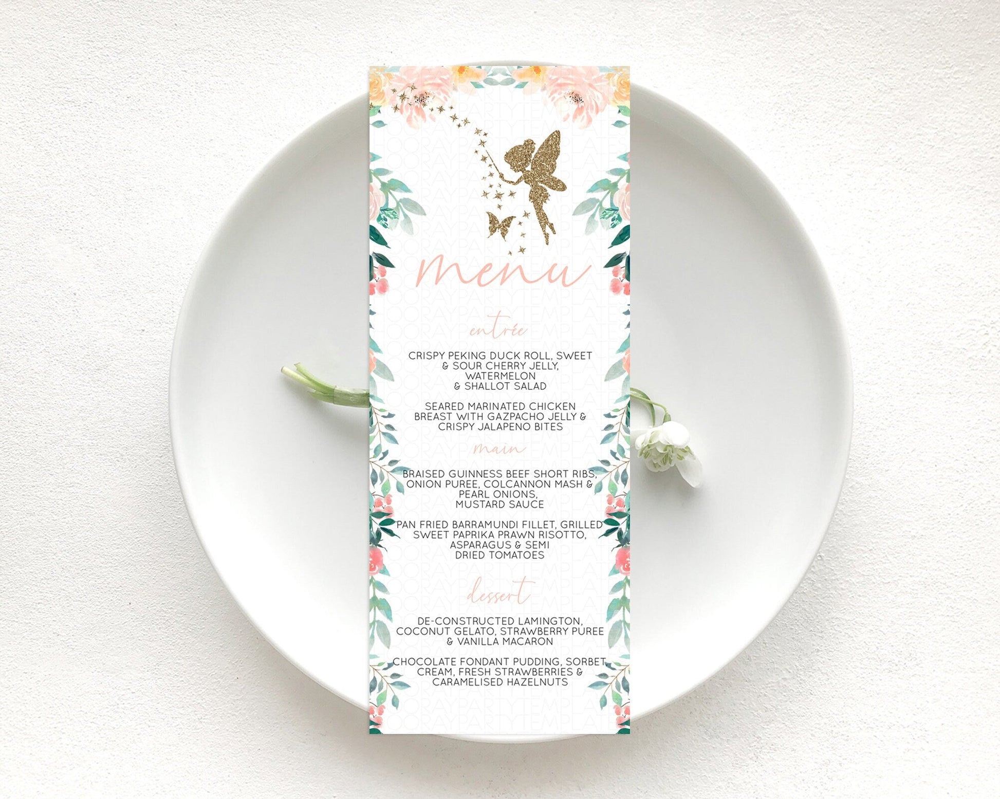 Fairy Menu Fairy Menu Template Enchanted Garden Pastel Floral Butterfly Table Decor Fairy Secret Garden Dinner Dessert Food Menu D10789
