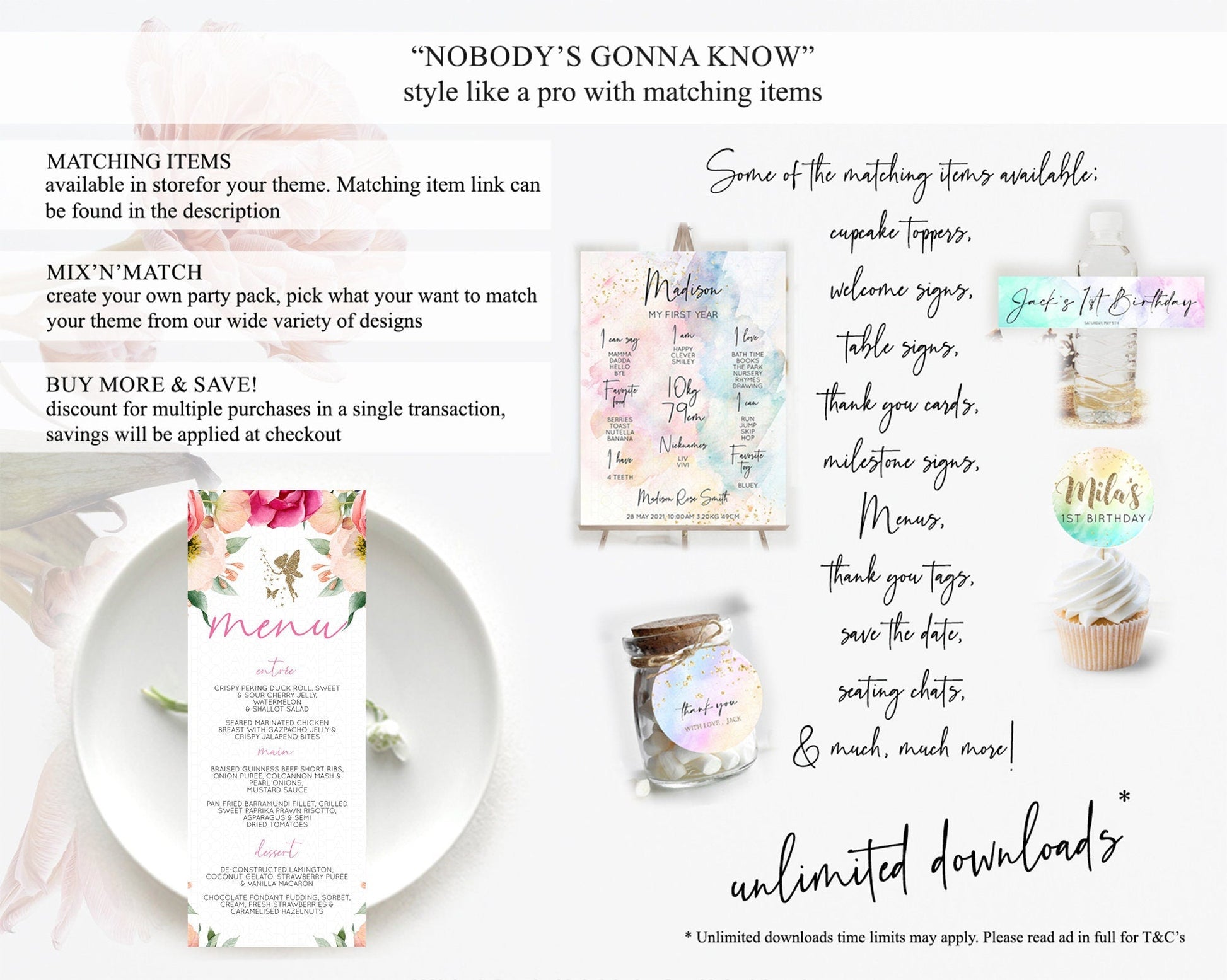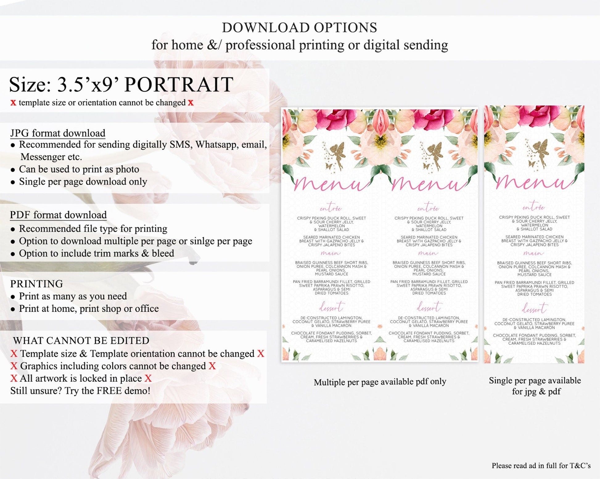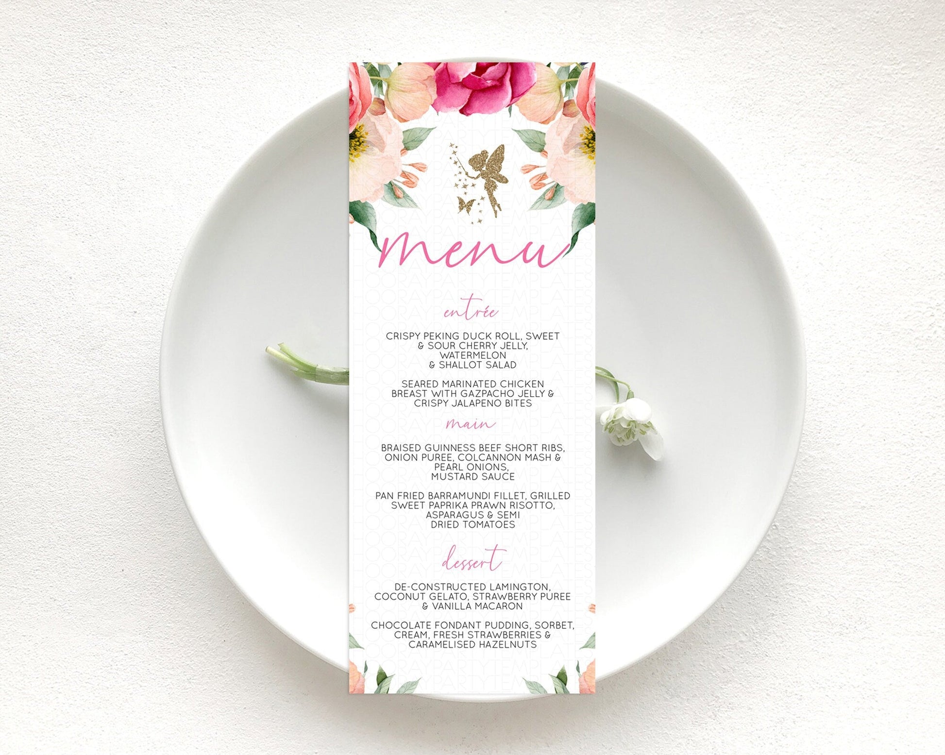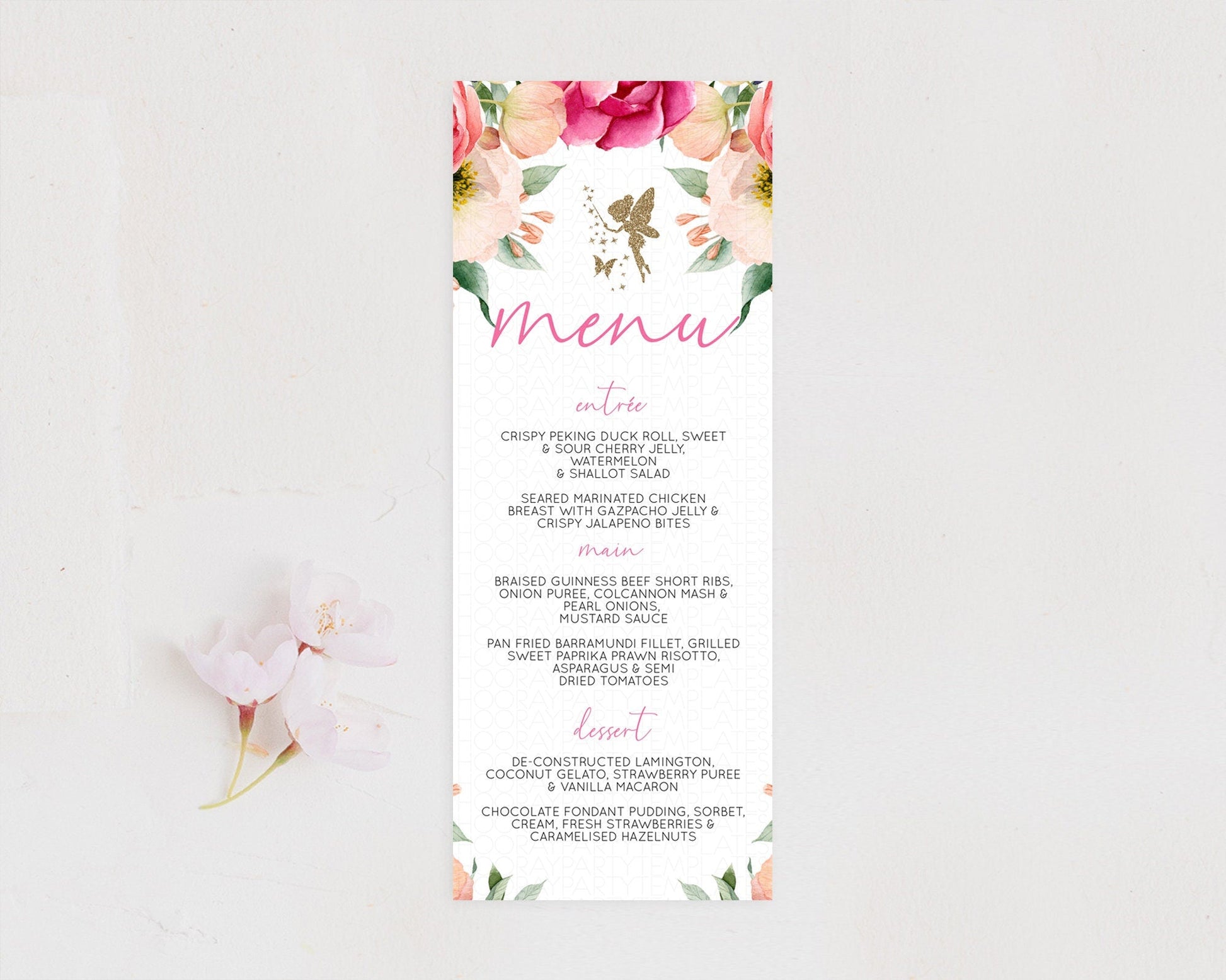 Fairy Menu Fairy Menu Template Enchanted Garden Pastel Floral Butterfly Table Decor Fairy Secret Garden Dinner Dessert Food Menu D10883