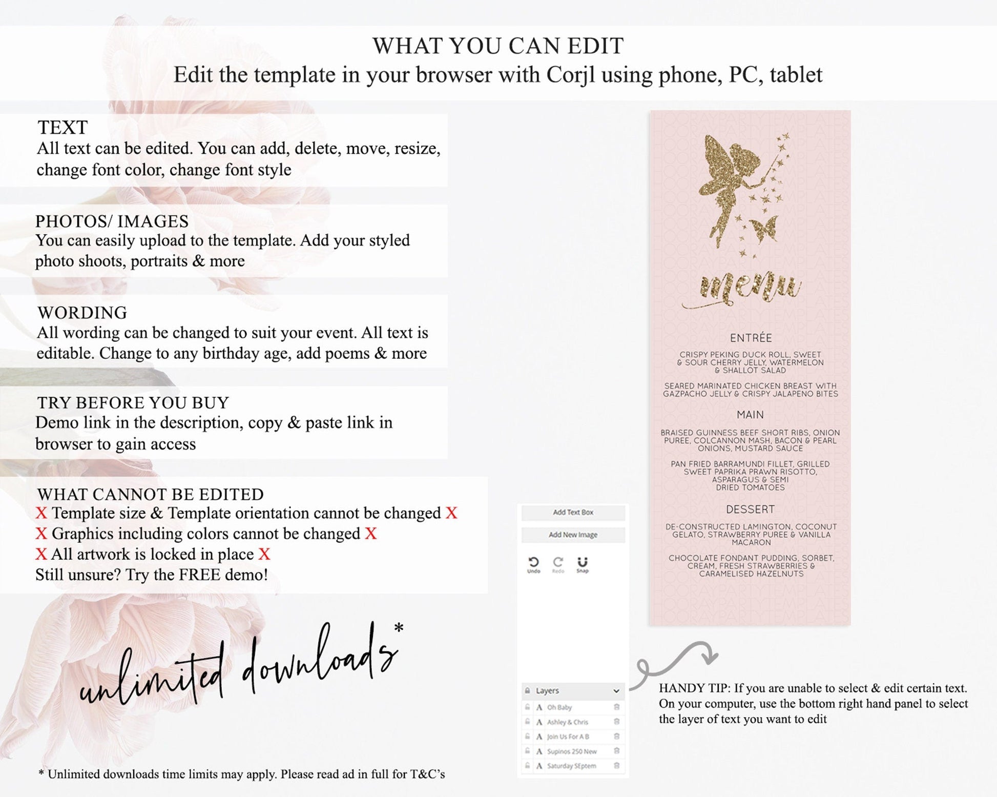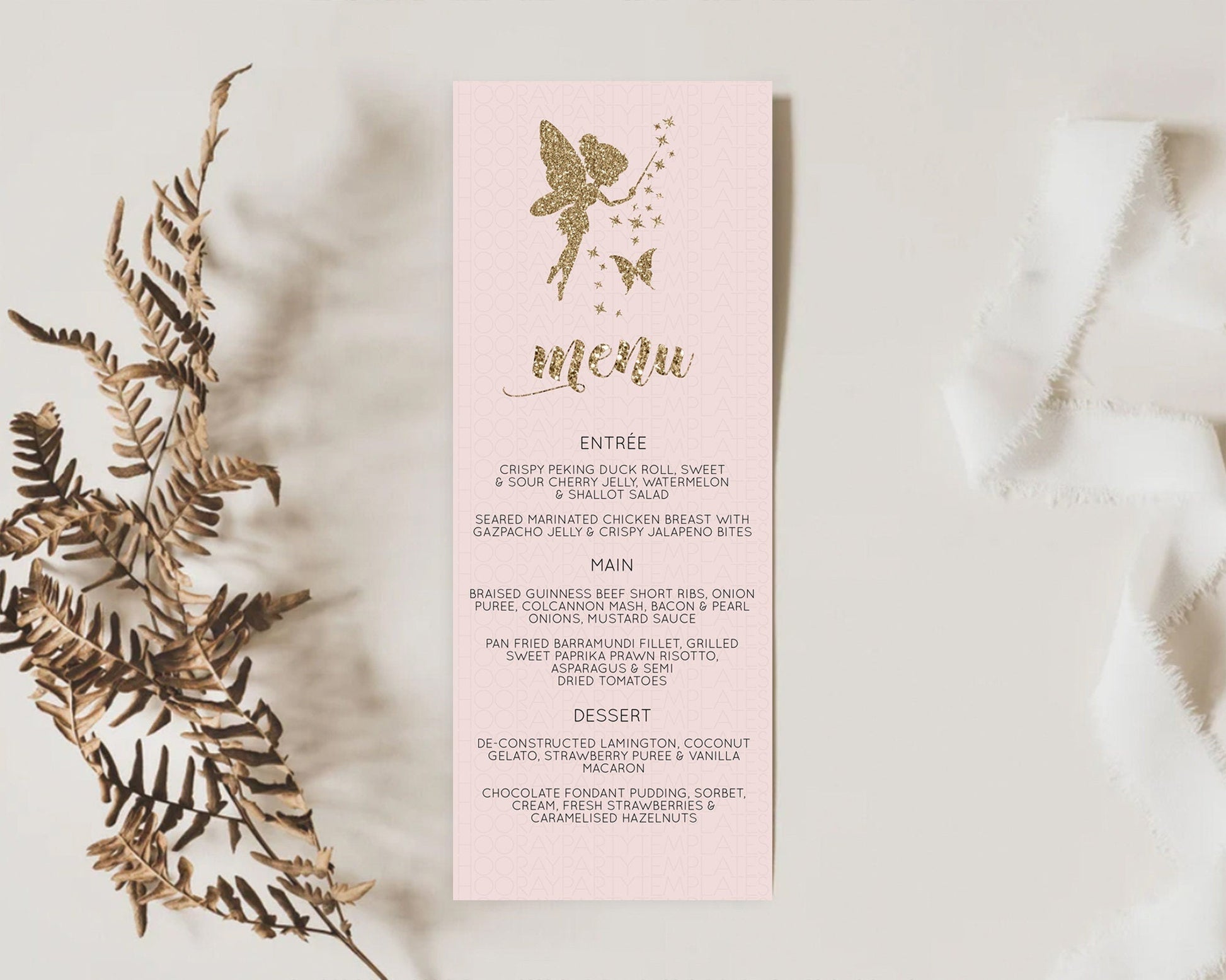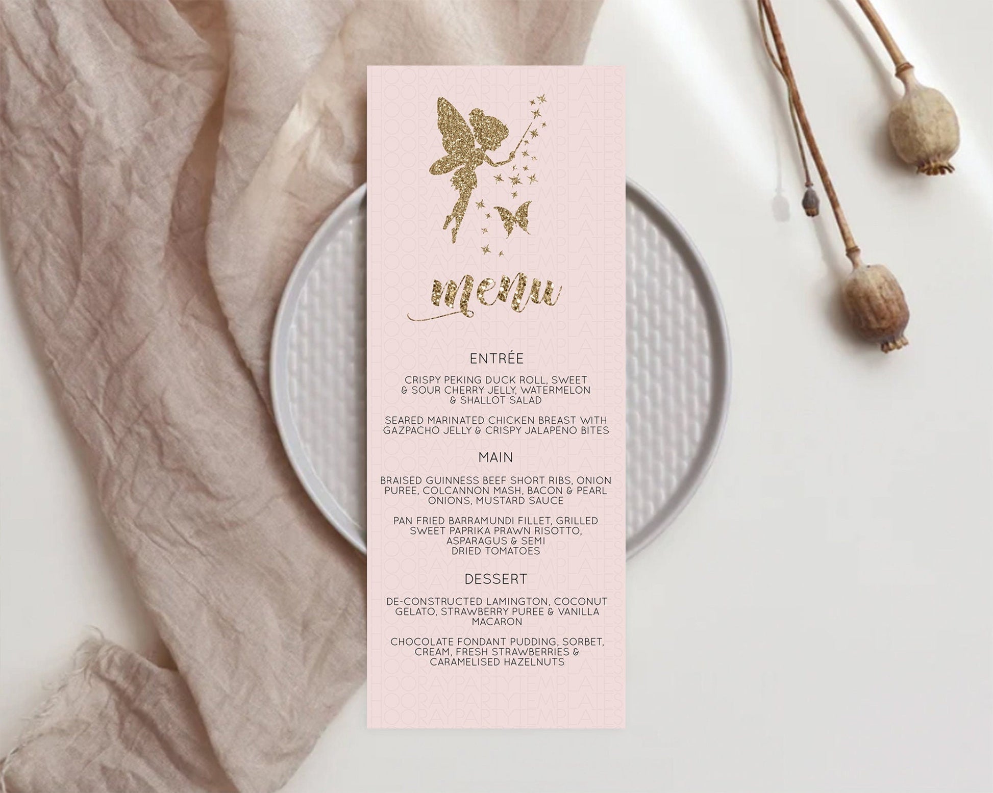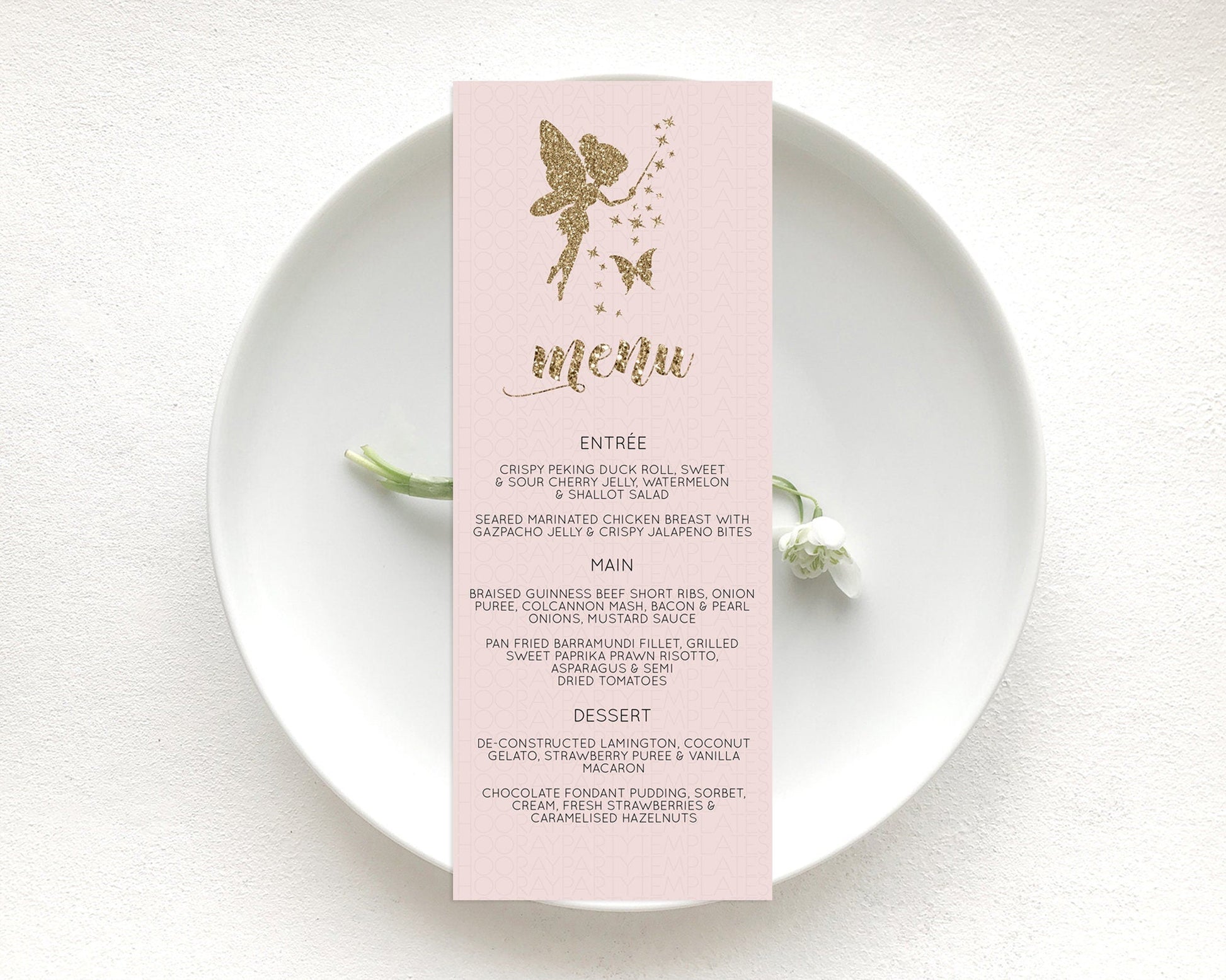 Fairy Menu Fairy Menu Template Enchanted Garden Pastel Floral Butterfly Table Decor Fairy Secret Garden Dinner Dessert Food Menu D10899