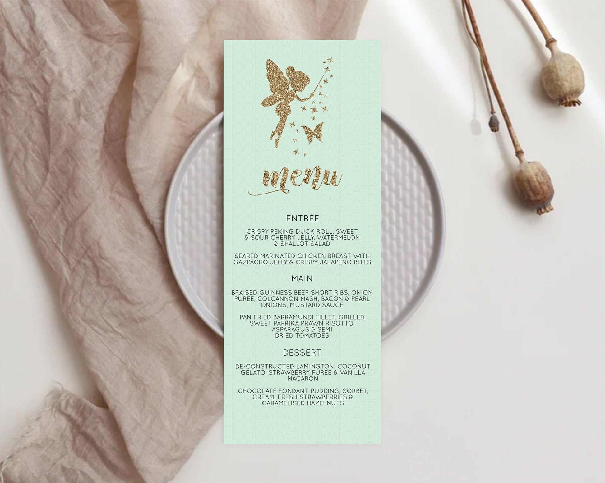 Fairy Menu Fairy Menu Template Enchanted Garden Pastel Floral Butterfly Table Decor Fairy Secret Garden Dinner Dessert Food Menu D10908