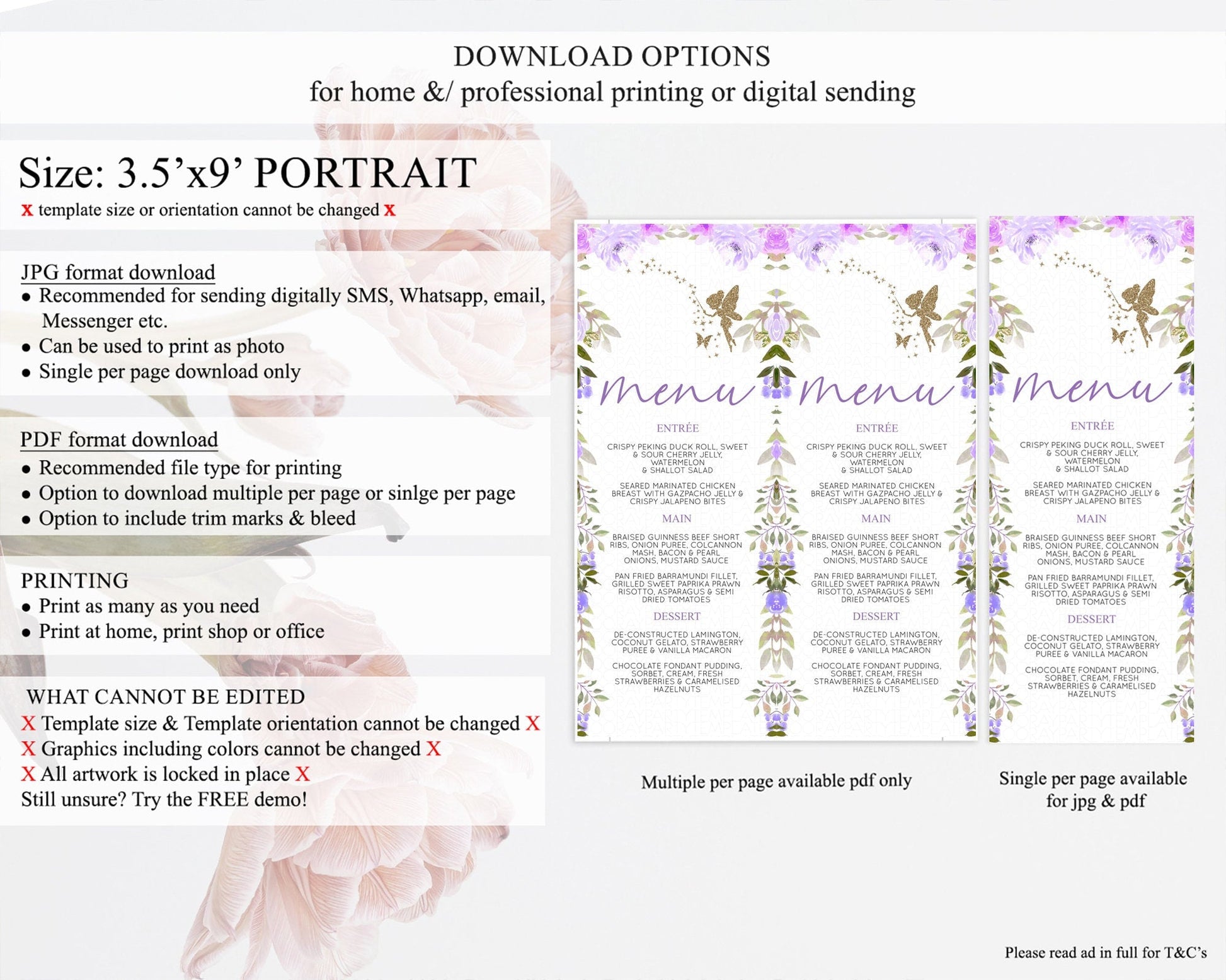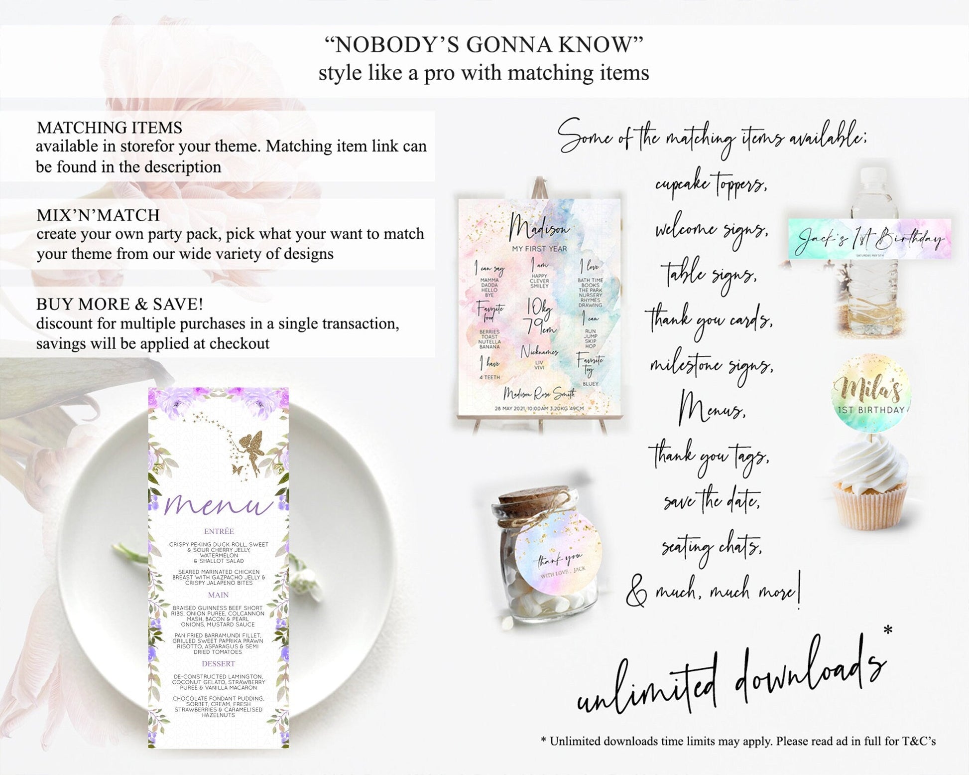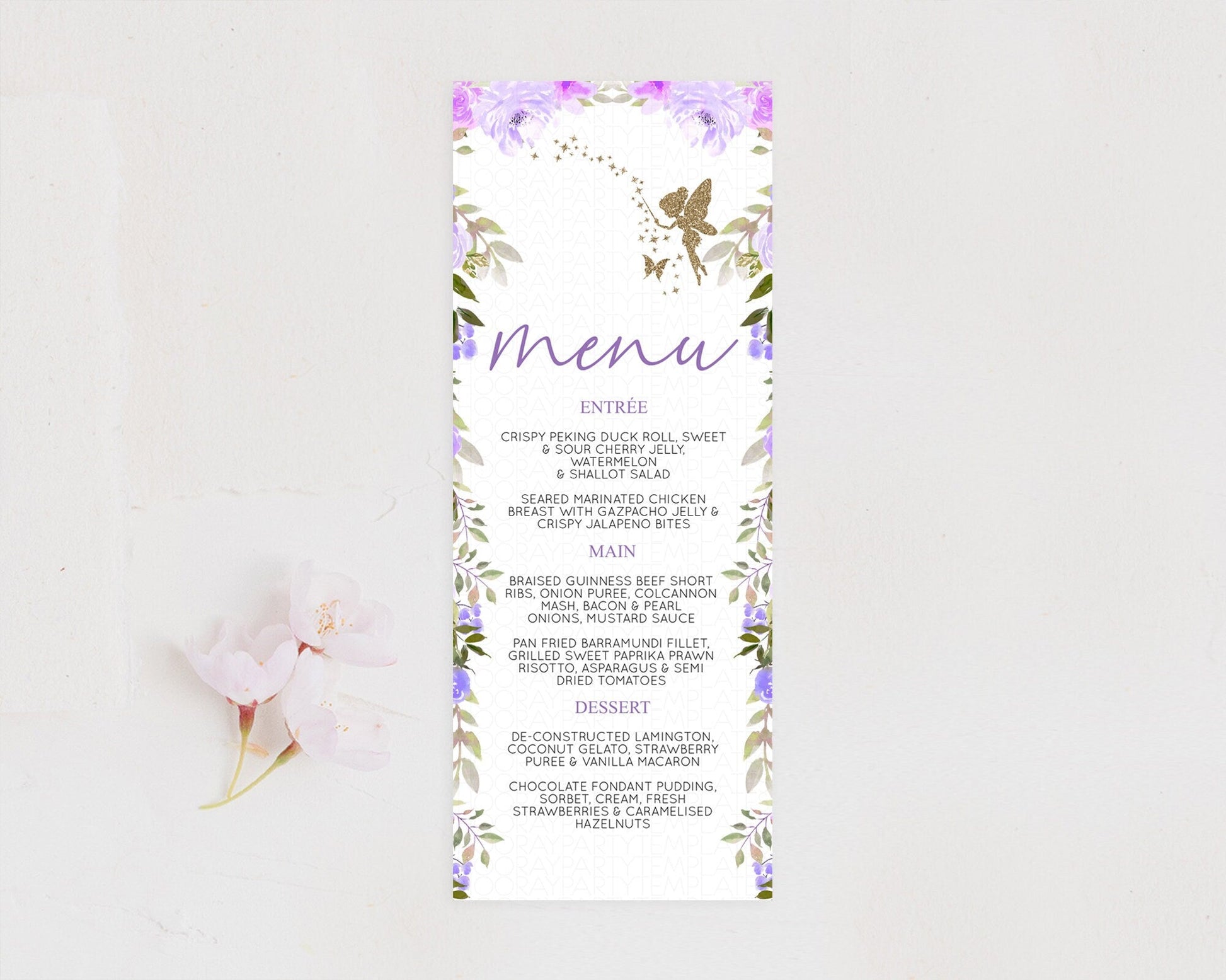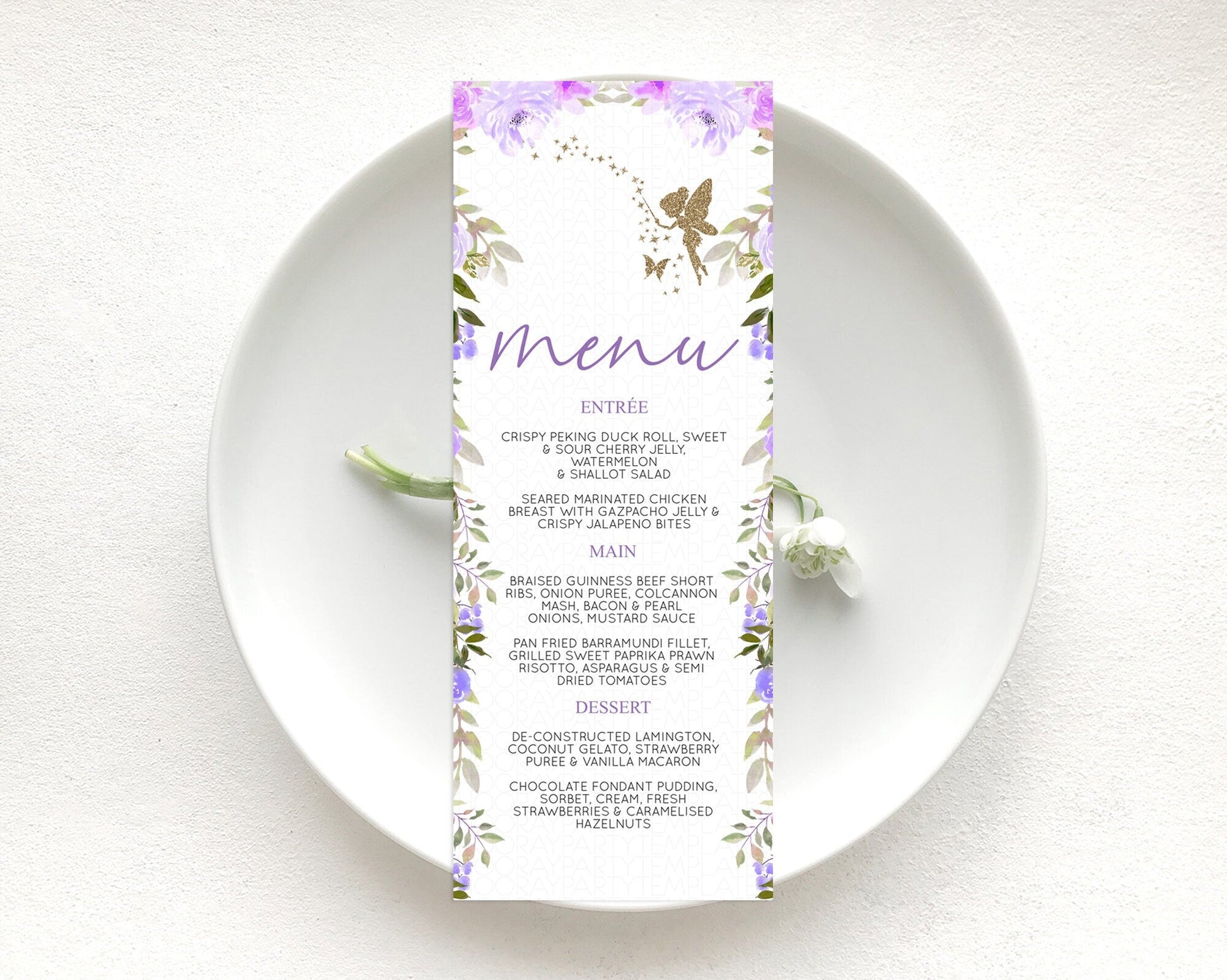 Fairy Menu Fairy Menu Template Enchanted Garden Pastel Floral Butterfly Table Decor Fairy Secret Garden Dinner Dessert Food Menu D10910