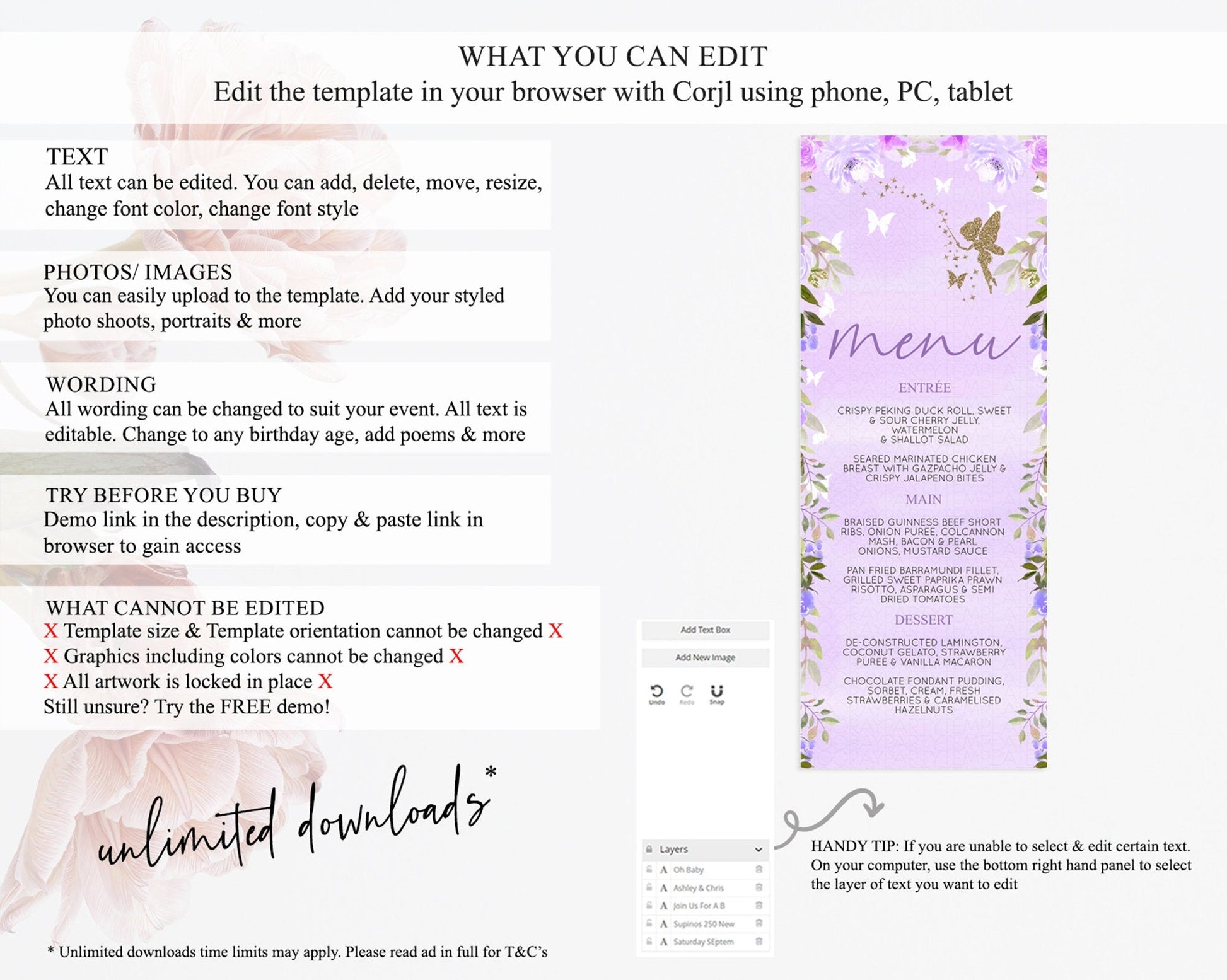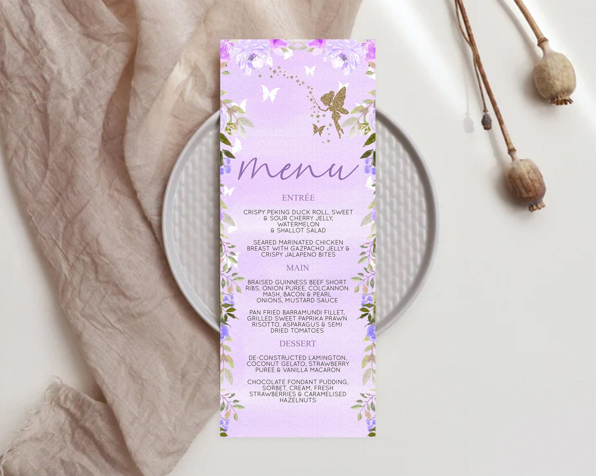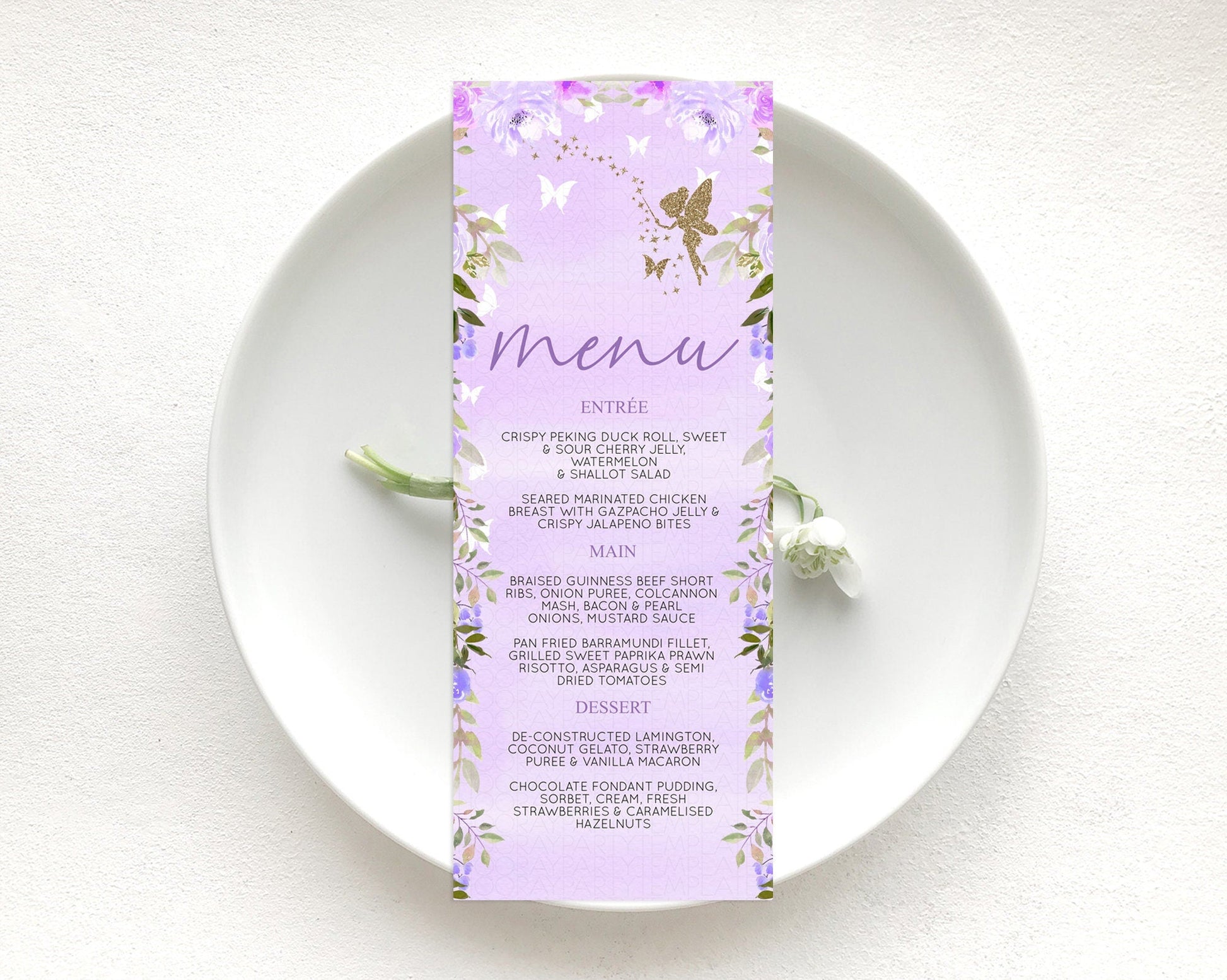 Fairy Menu Fairy Menu Template Enchanted Garden Pastel Floral Butterfly Table Decor Fairy Secret Garden Dinner Dessert Food Menu D10910
