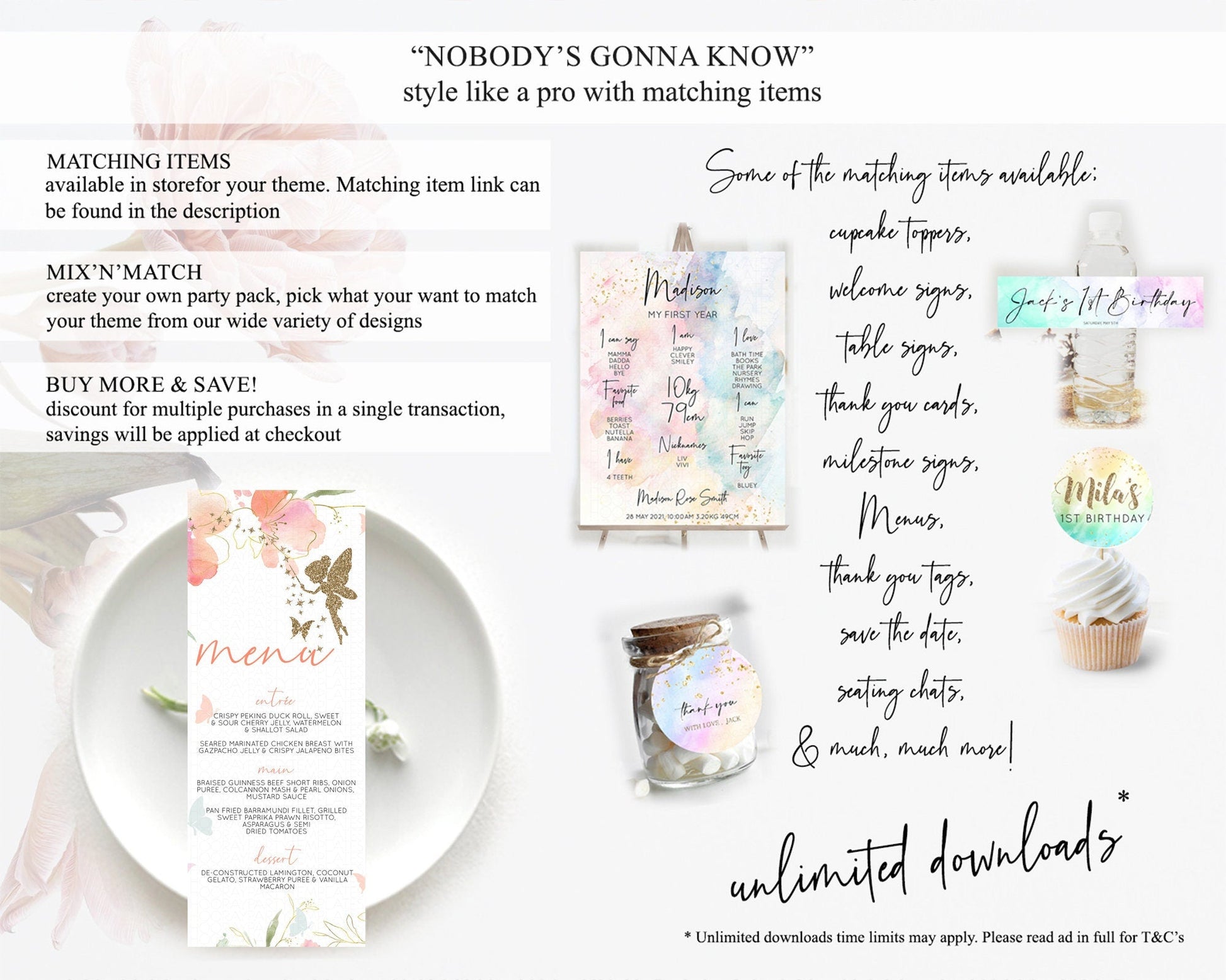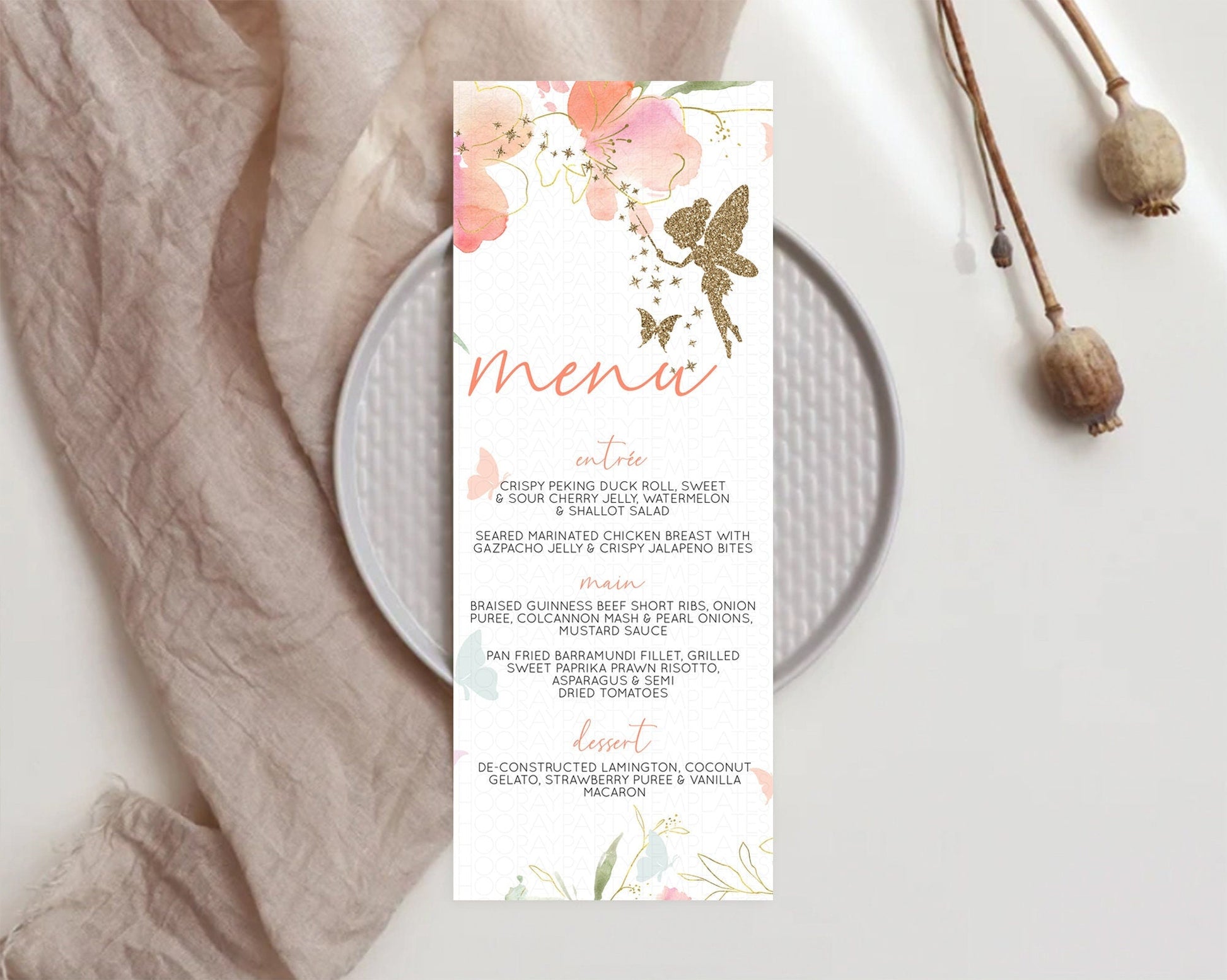 Fairy Menu Fairy Menu Template Enchanted Garden Pastel Floral Butterfly Table Decor Fairy Secret Garden Dinner Dessert Food Menu D10934