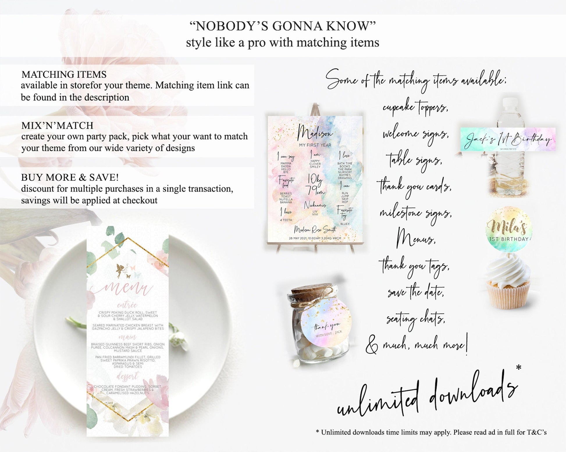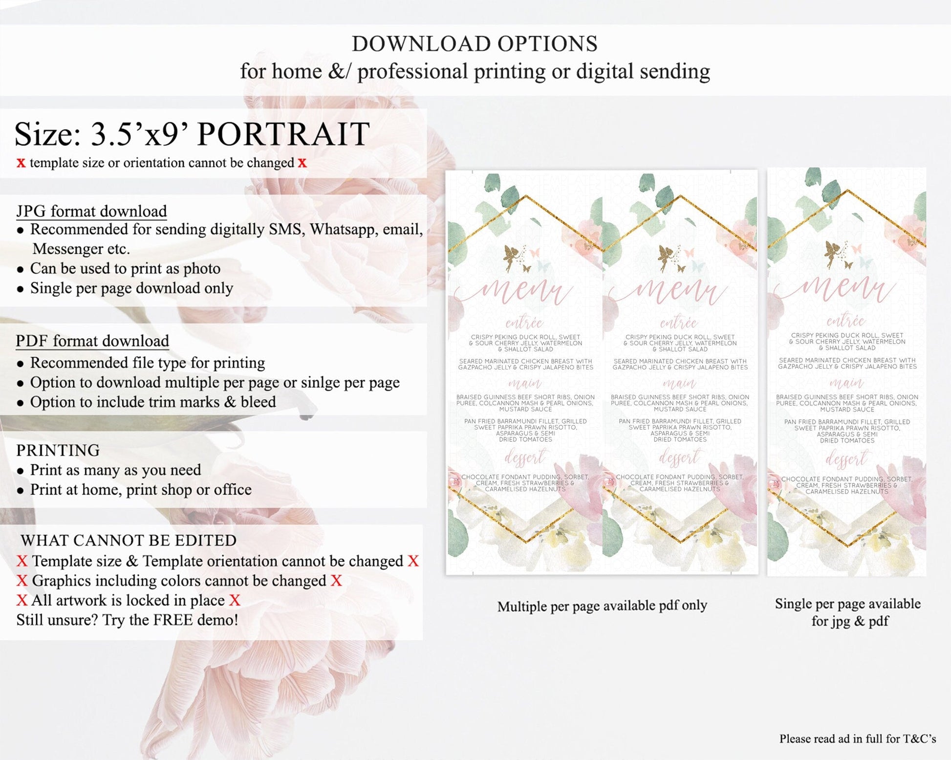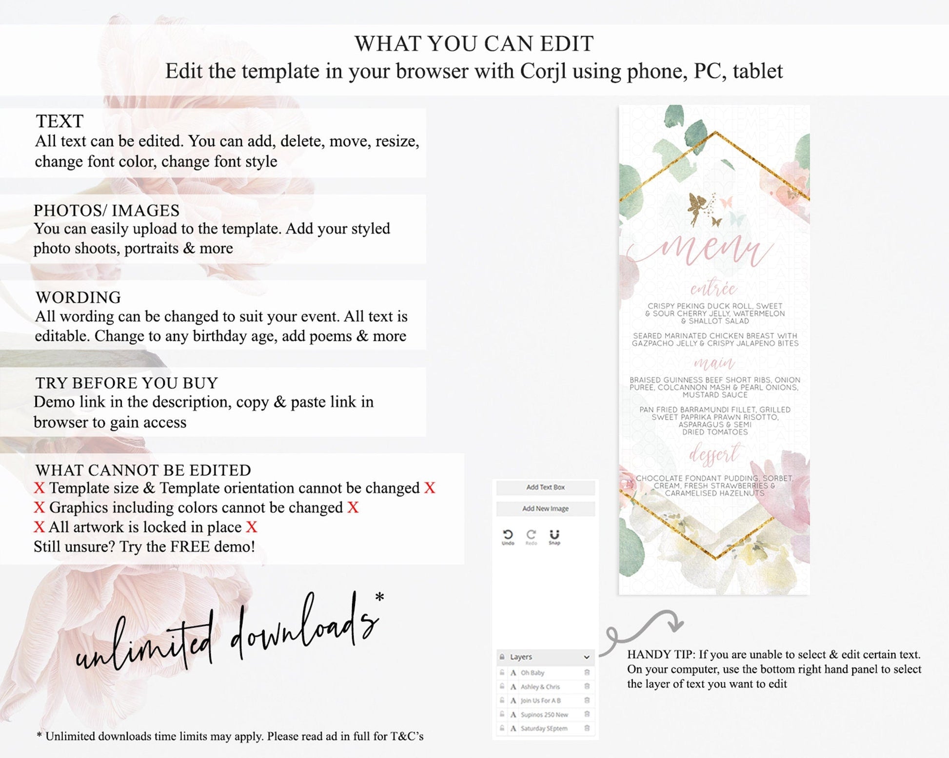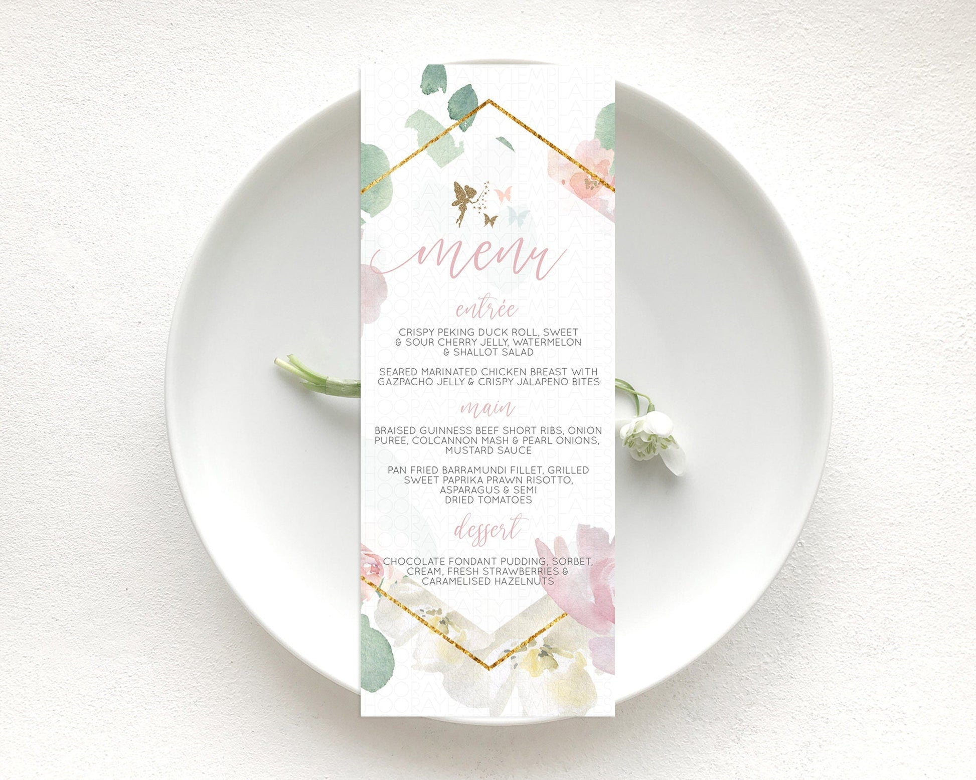 Fairy Menu Fairy Menu Template Enchanted Garden Pastel Floral Butterfly Table Decor Fairy Secret Garden Dinner Dessert Food Menu D10965
