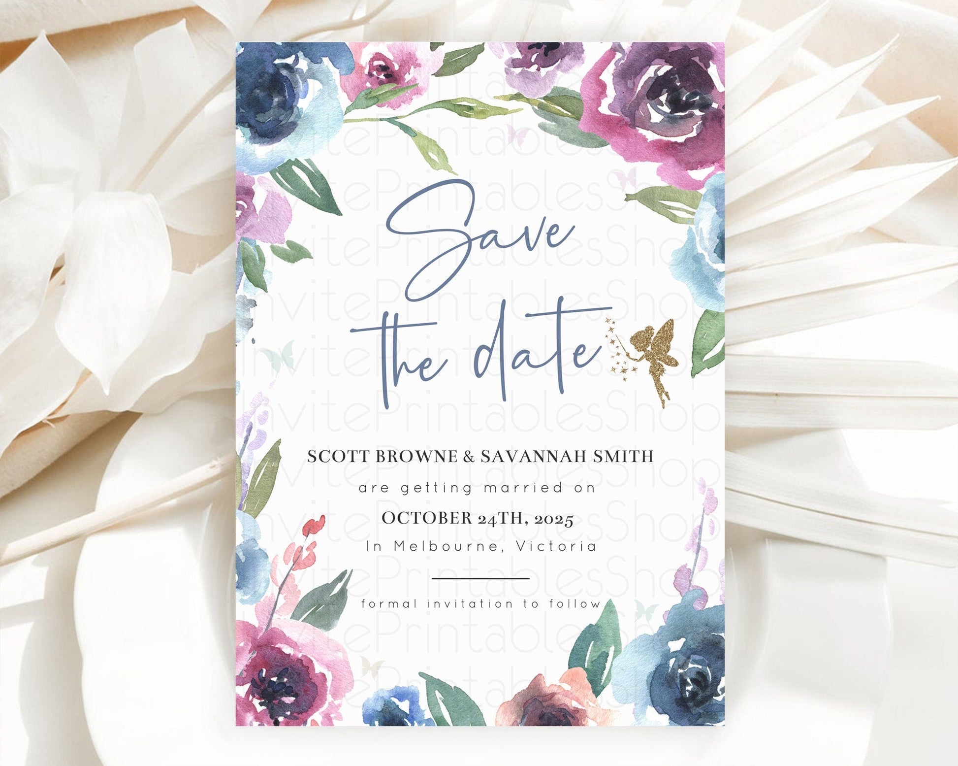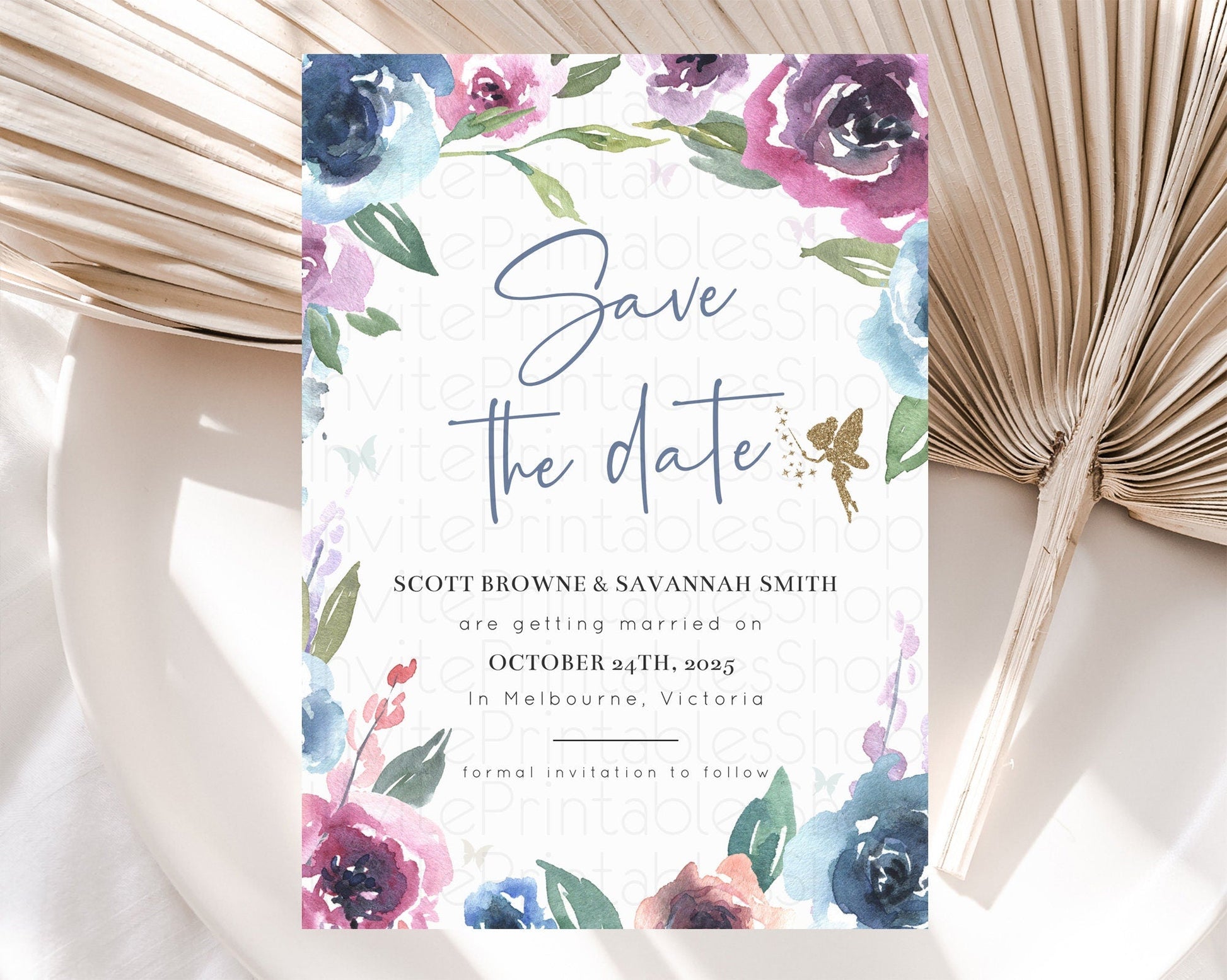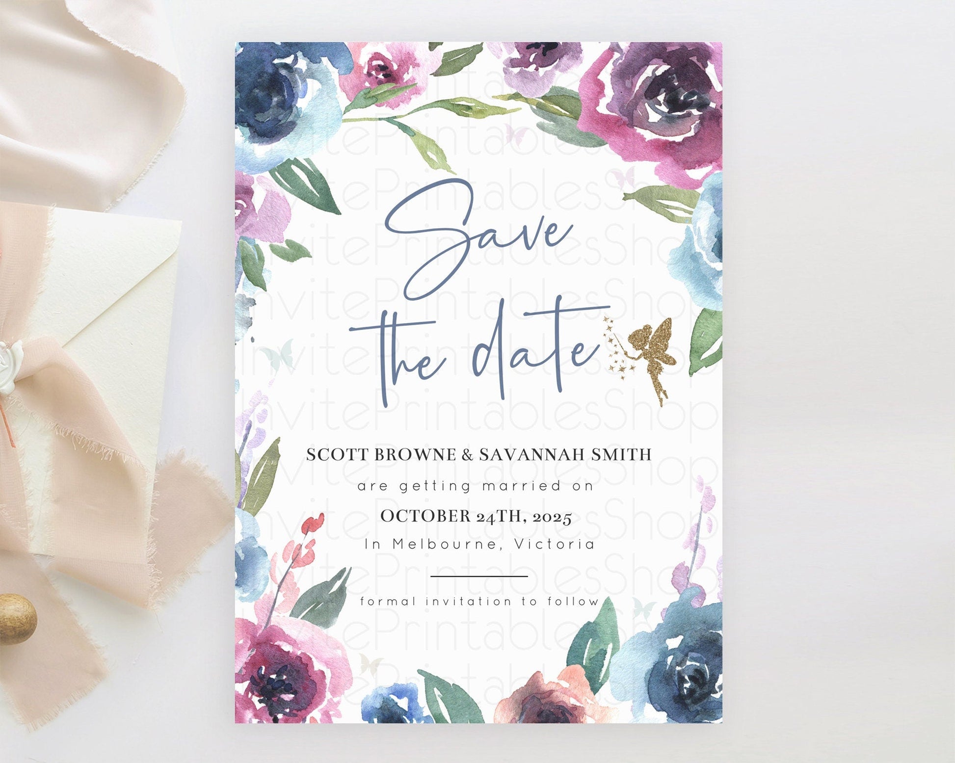 Fairy Save The Date Template Enchanted Garden Pastel Floral Butterfly Party Secret Garden Birthday Baptism Baby Shower Bridal Shower D10188
