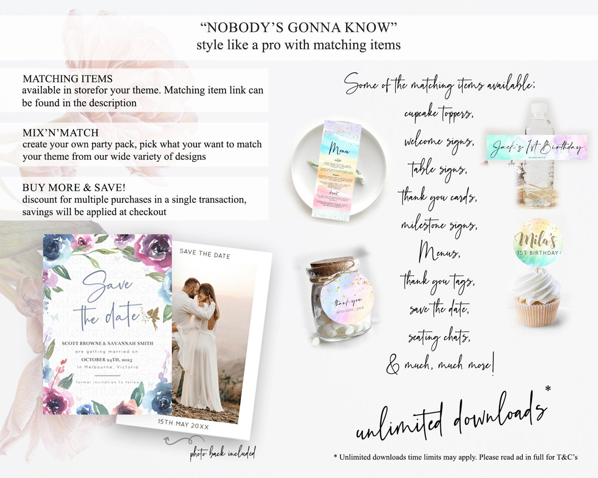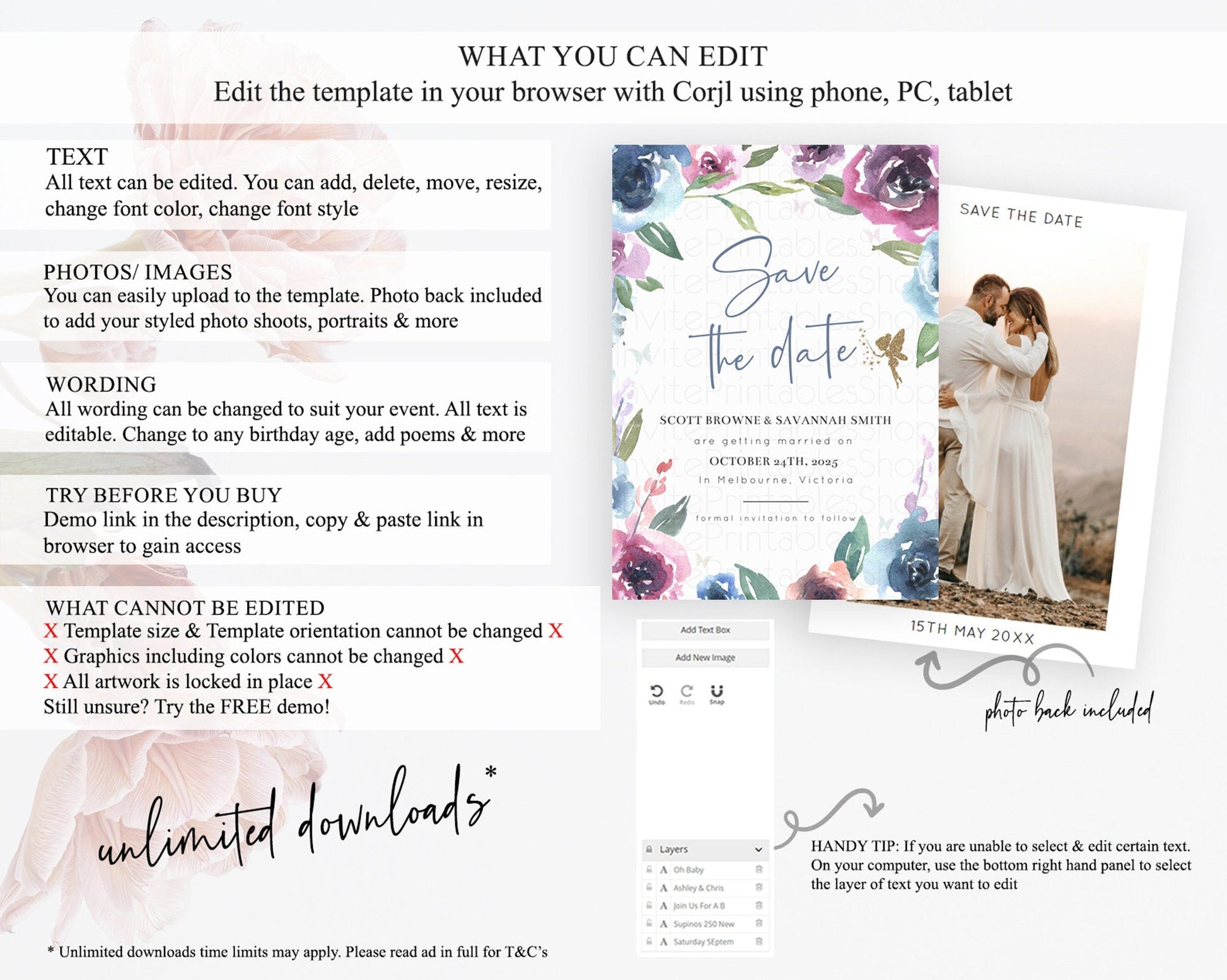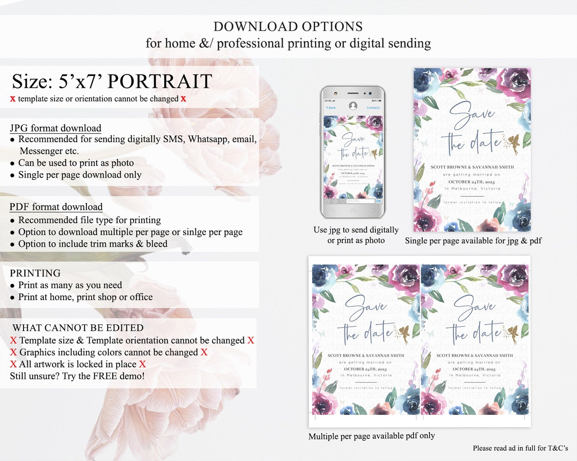 Fairy Save The Date Template Enchanted Garden Pastel Floral Butterfly Party Secret Garden Birthday Baptism Baby Shower Bridal Shower D10188