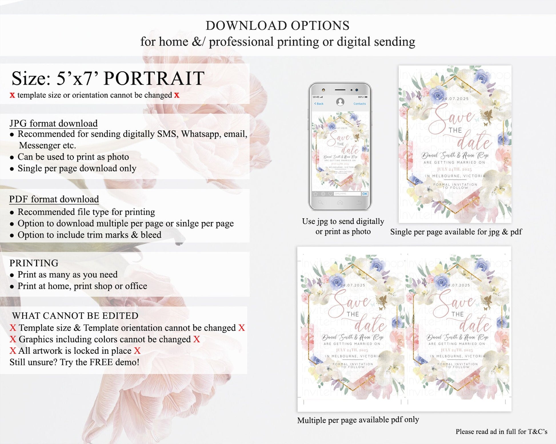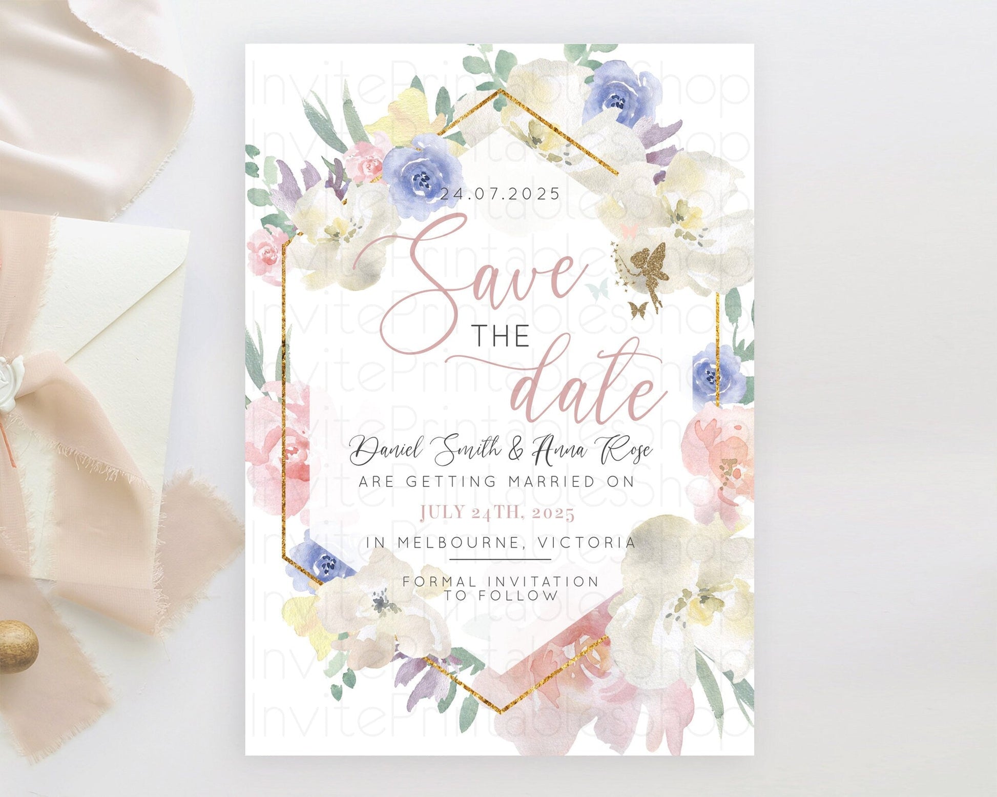 Fairy Save The Date Template Enchanted Garden Pastel Floral Butterfly Party Secret Garden Birthday Baptism Baby Shower Bridal Shower D10829