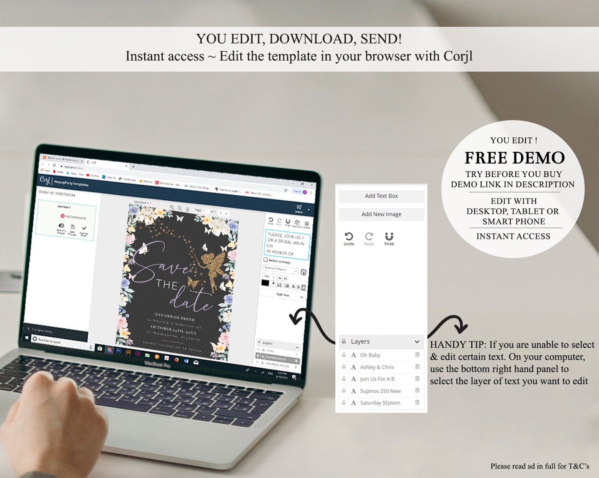 Fairy Save The Date Template Enchanted Garden Pastel Floral Butterfly Party Secret Garden Birthday Baptism Baby Shower Bridal Shower D10881