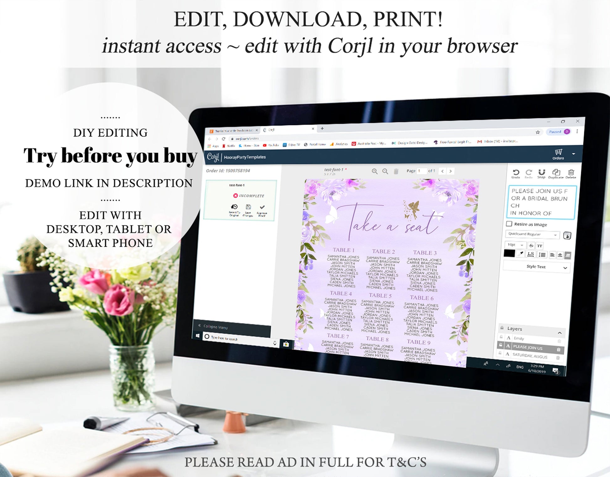 • After purchase, Corjl emails your editing link. Allow up to 15 minutes for delivery.