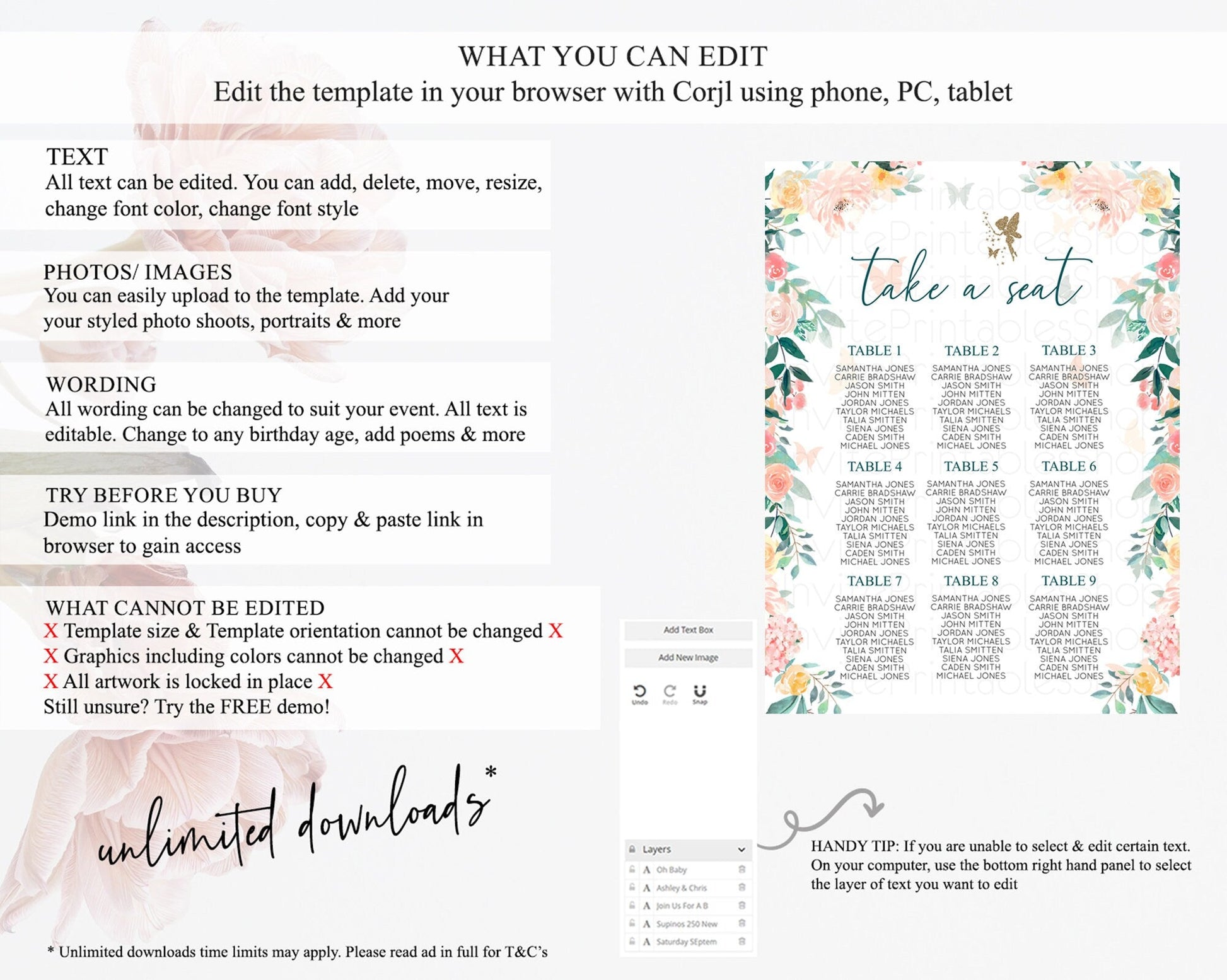 Fairy Seating Chart Pastel Fairy Seating Chart Fairy Tea Party Fairy Garden Seating Sign Enchanted Garden Floral Butterfly Decor D10239