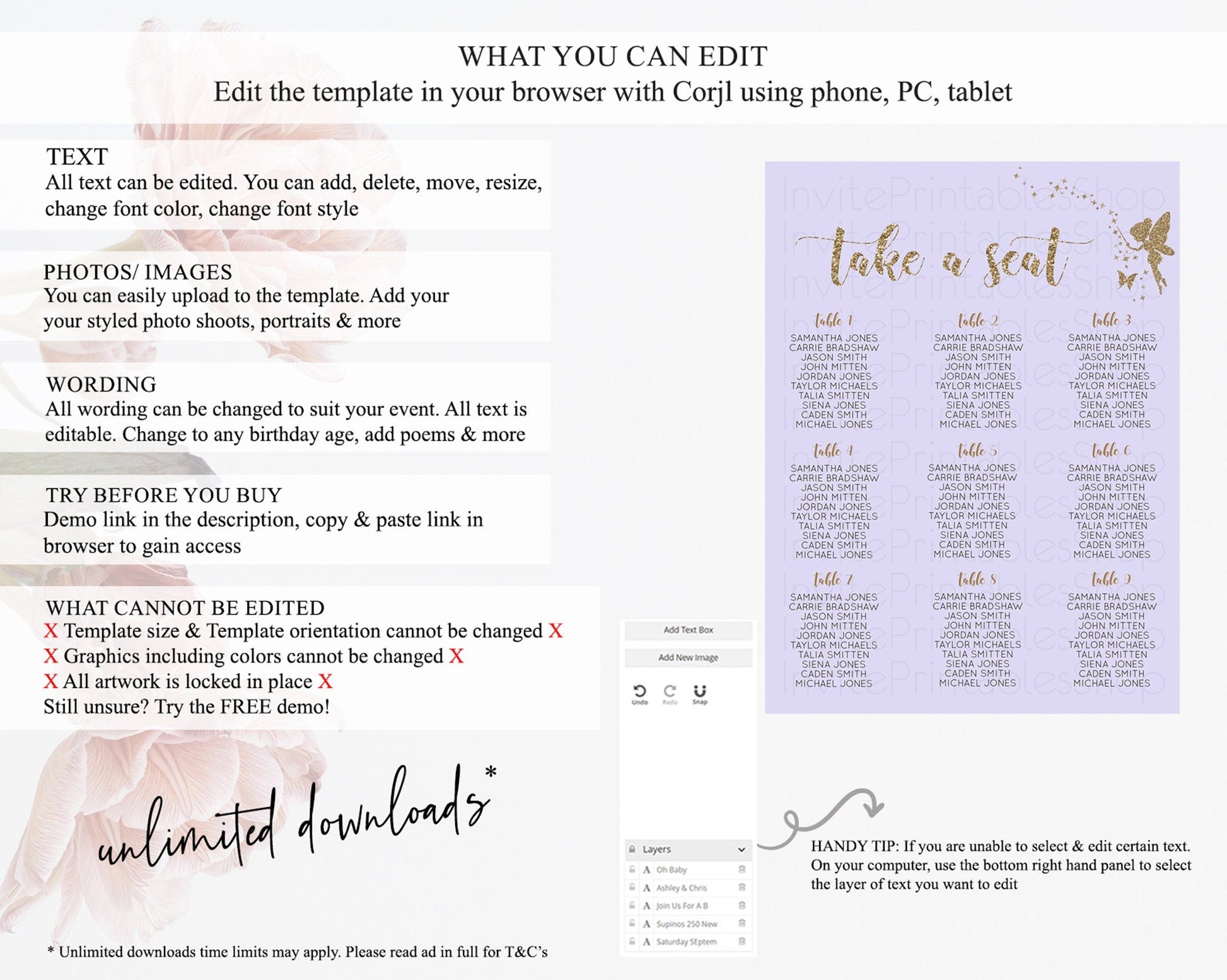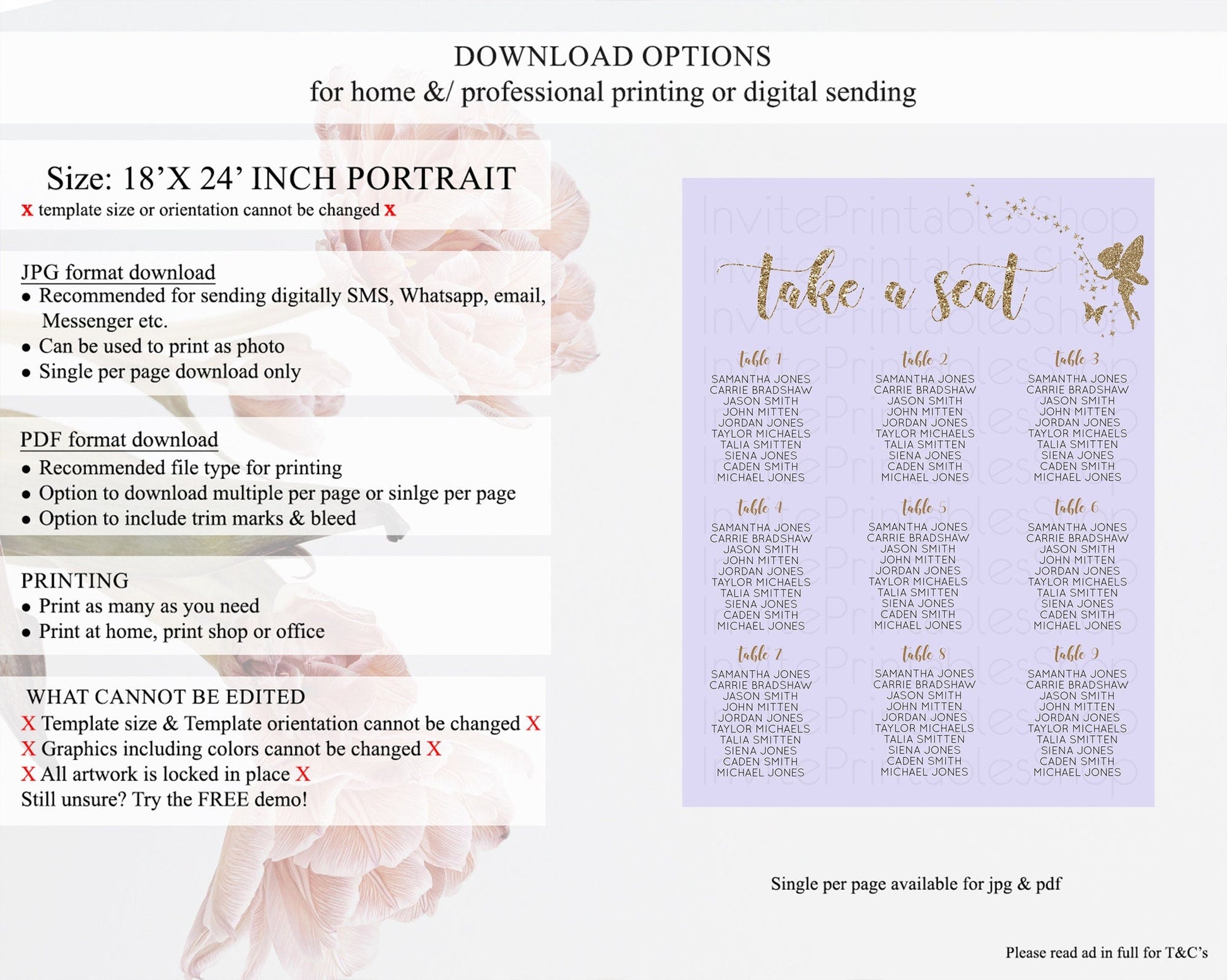 Fairy Seating Chart Pastel Fairy Seating Chart Fairy Tea Party Fairy Garden Seating Sign Enchanted Garden Floral Butterfly Decor D10389