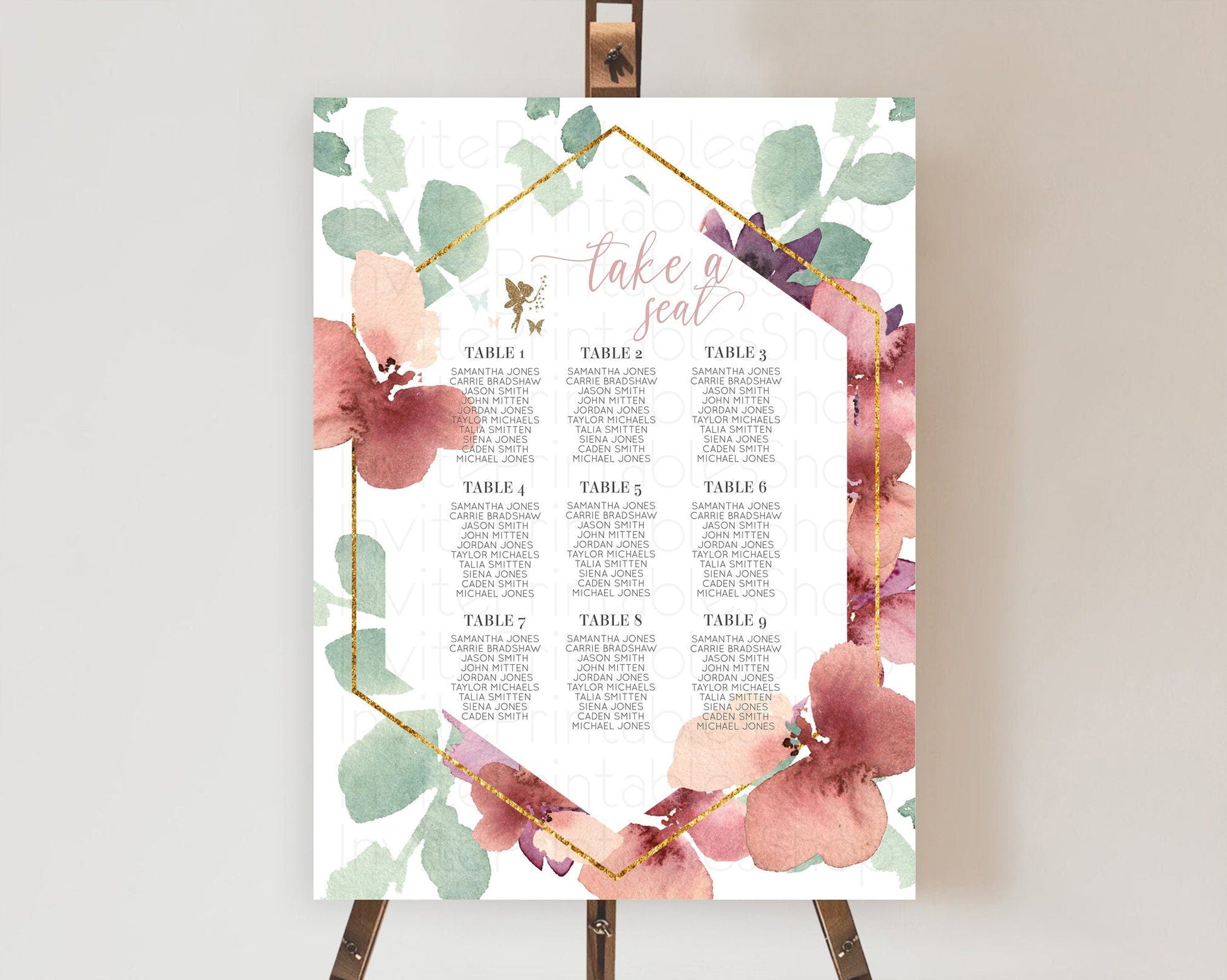 Fairy Seating Chart Pastel Fairy Seating Chart Fairy Tea Party Fairy Garden Seating Sign Enchanted Garden Floral Butterfly Decor D10460