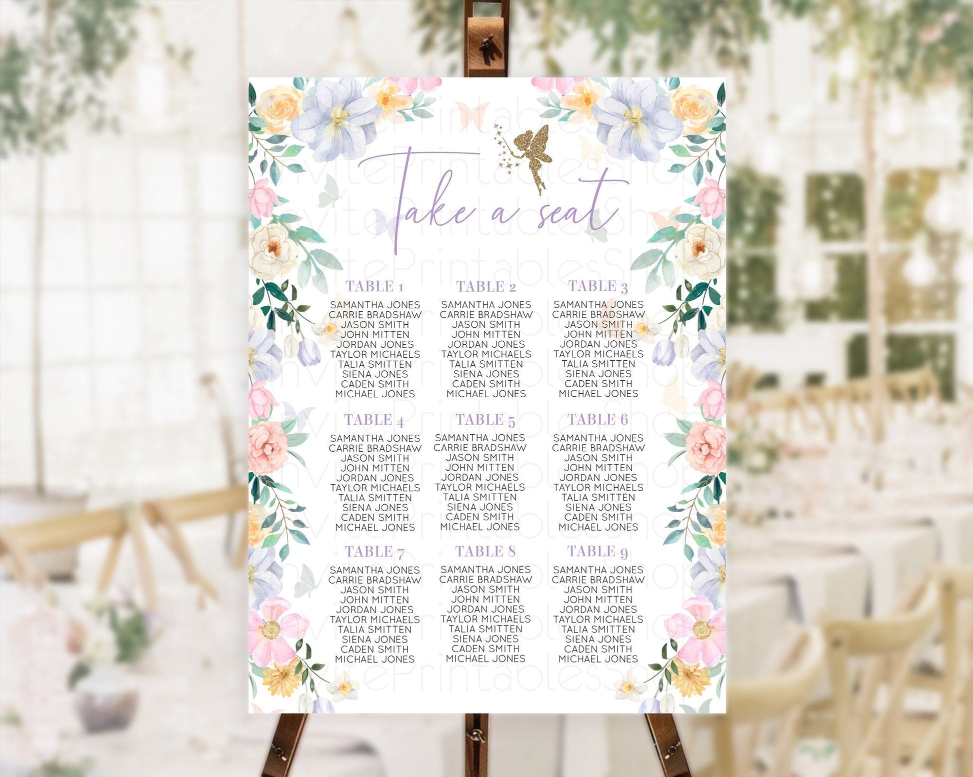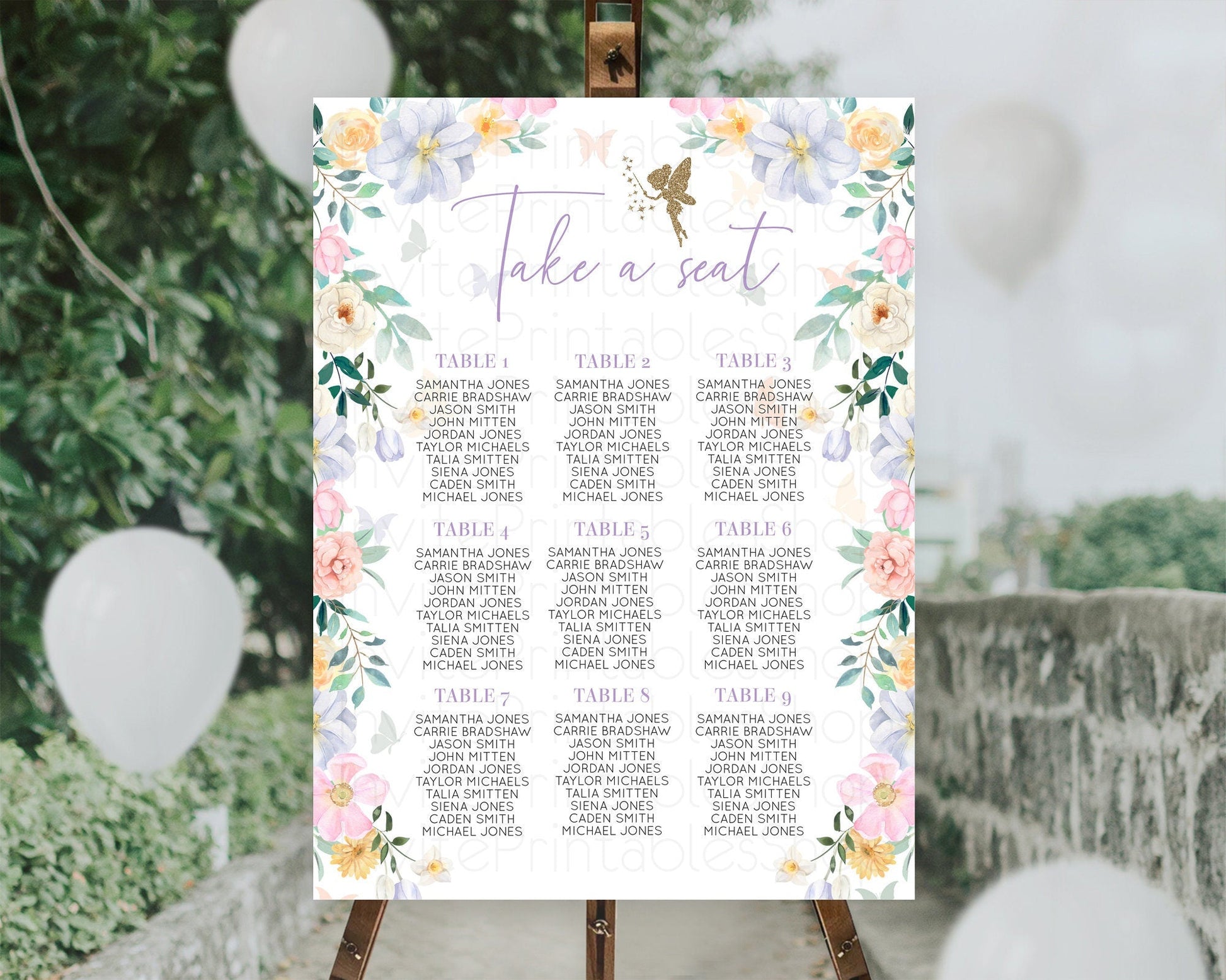 Fairy Seating Chart Pastel Fairy Seating Chart Fairy Tea Party Fairy Garden Seating Sign Enchanted Garden Floral Butterfly Decor D10474