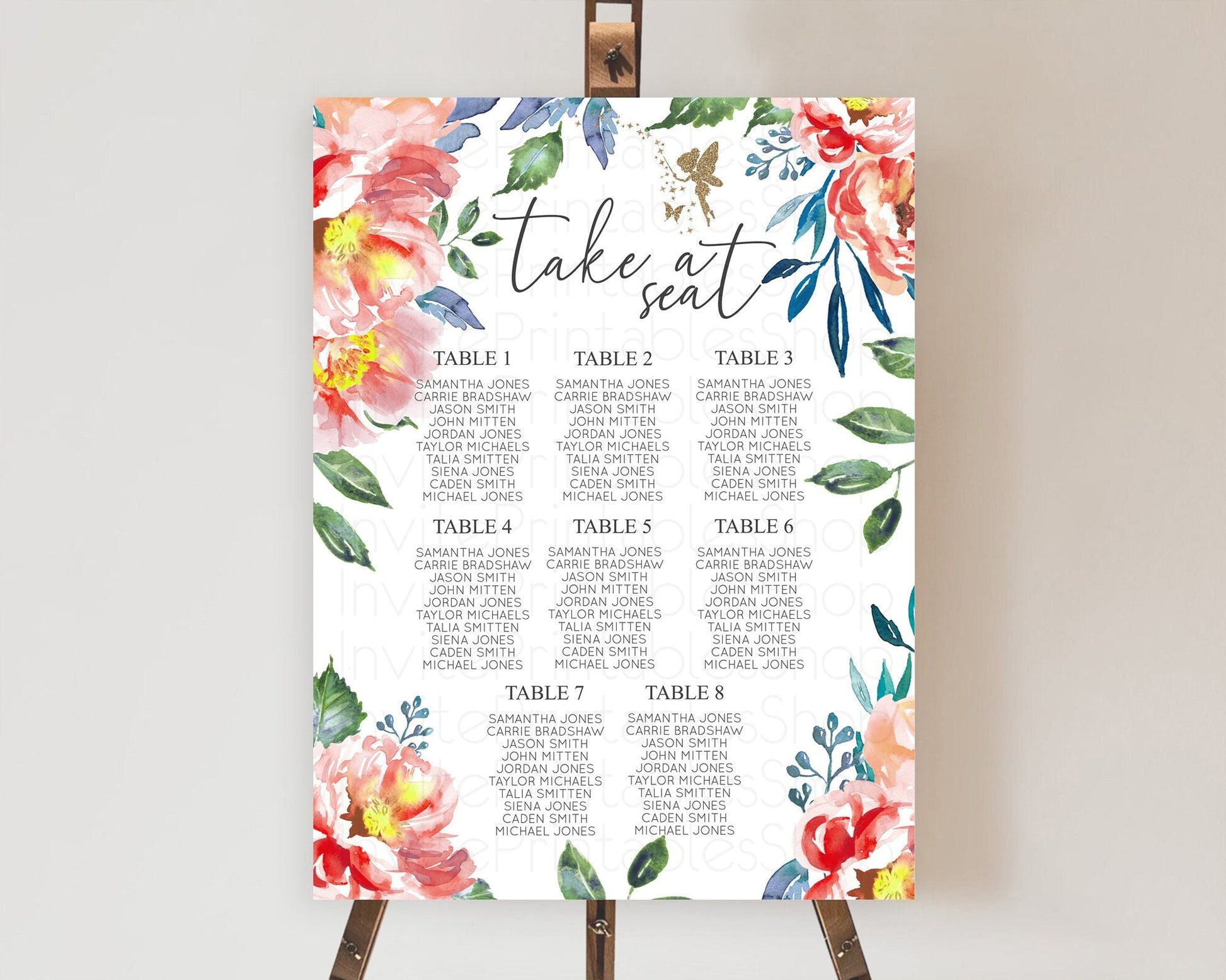 Fairy Seating Chart Pastel Fairy Seating Chart Fairy Tea Party Fairy Garden Seating Sign Enchanted Garden Floral Butterfly Decor D10752