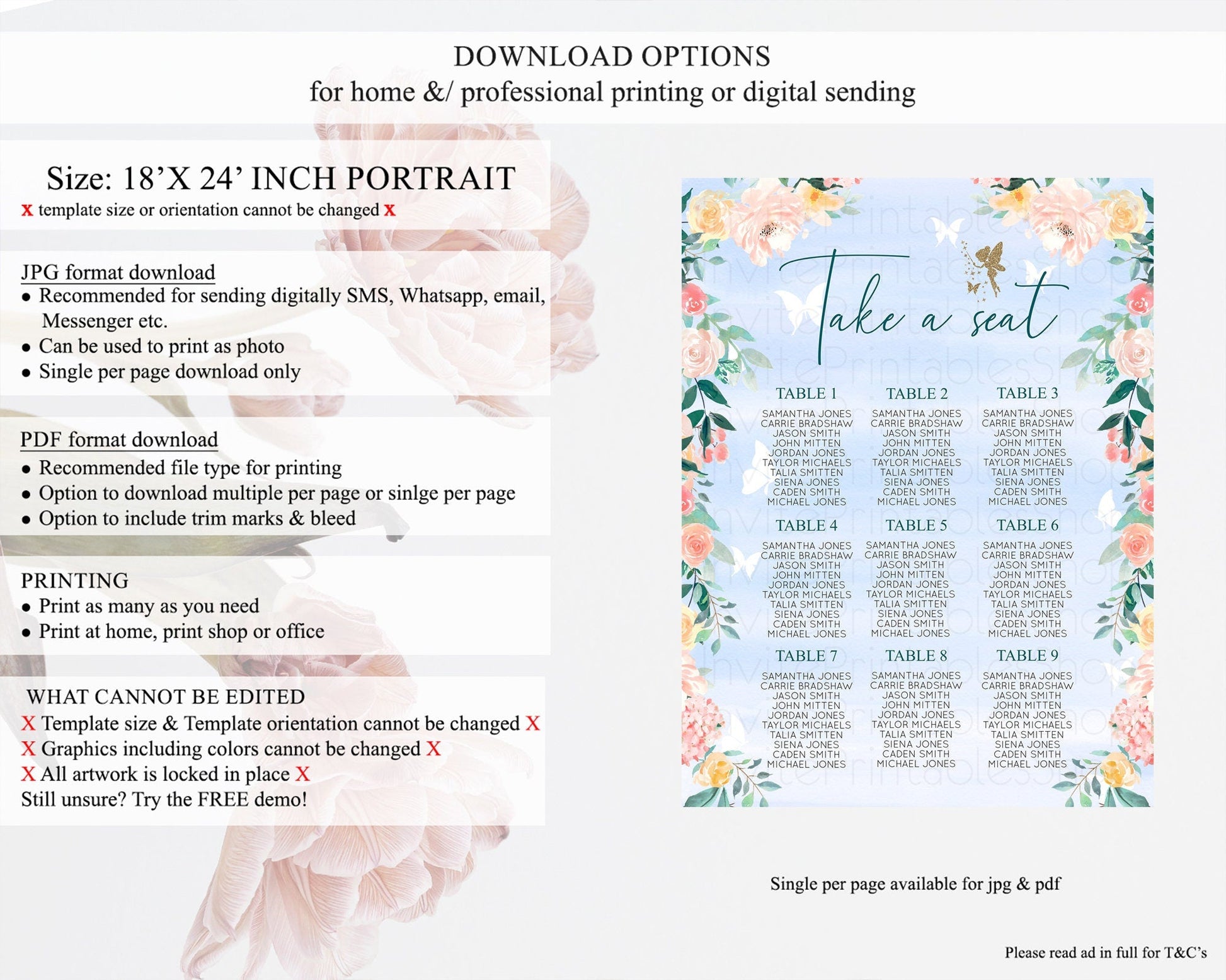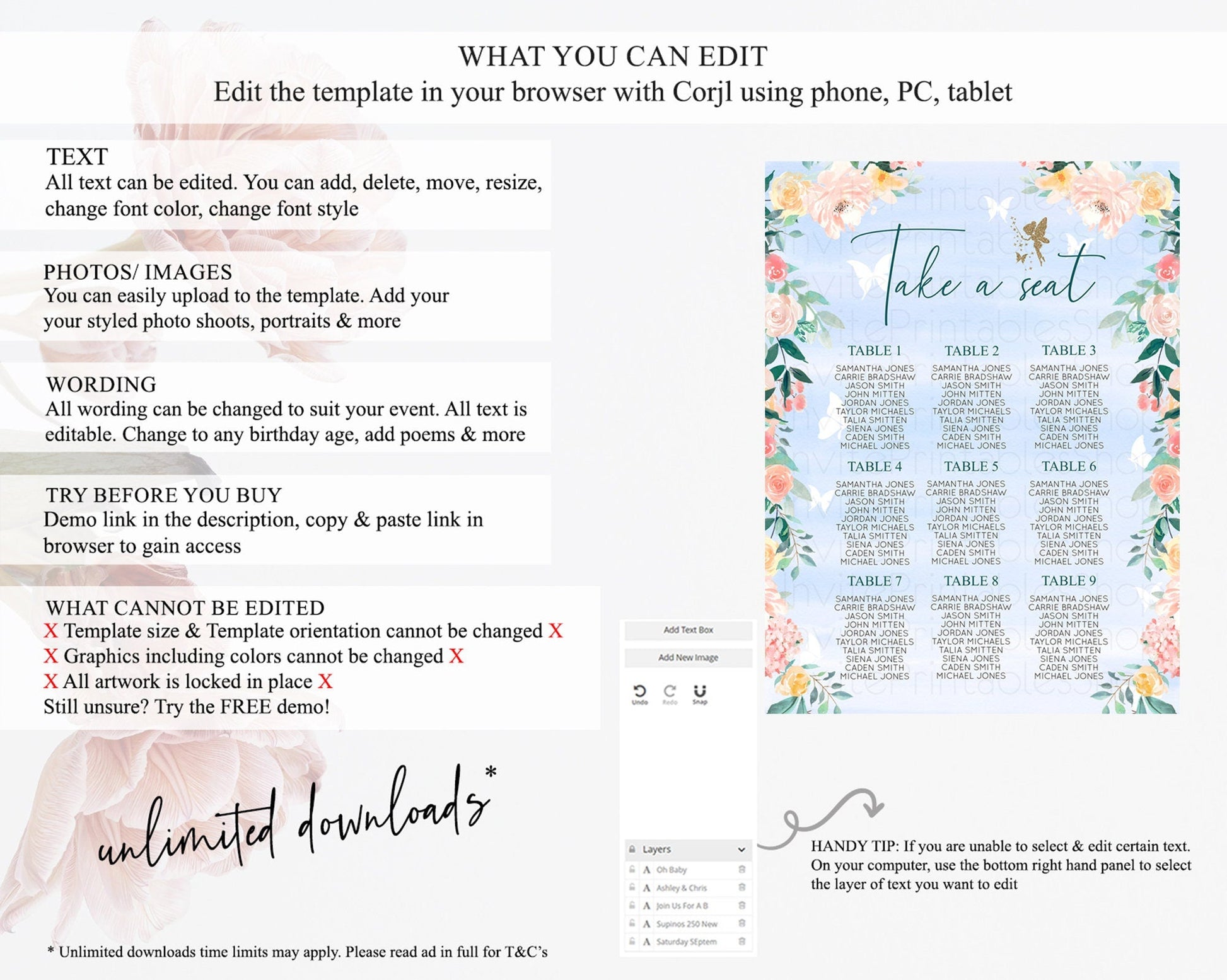 Fairy Seating Chart Pastel Fairy Seating Chart Fairy Tea Party Fairy Garden Seating Sign Enchanted Garden Floral Butterfly Decor D10794