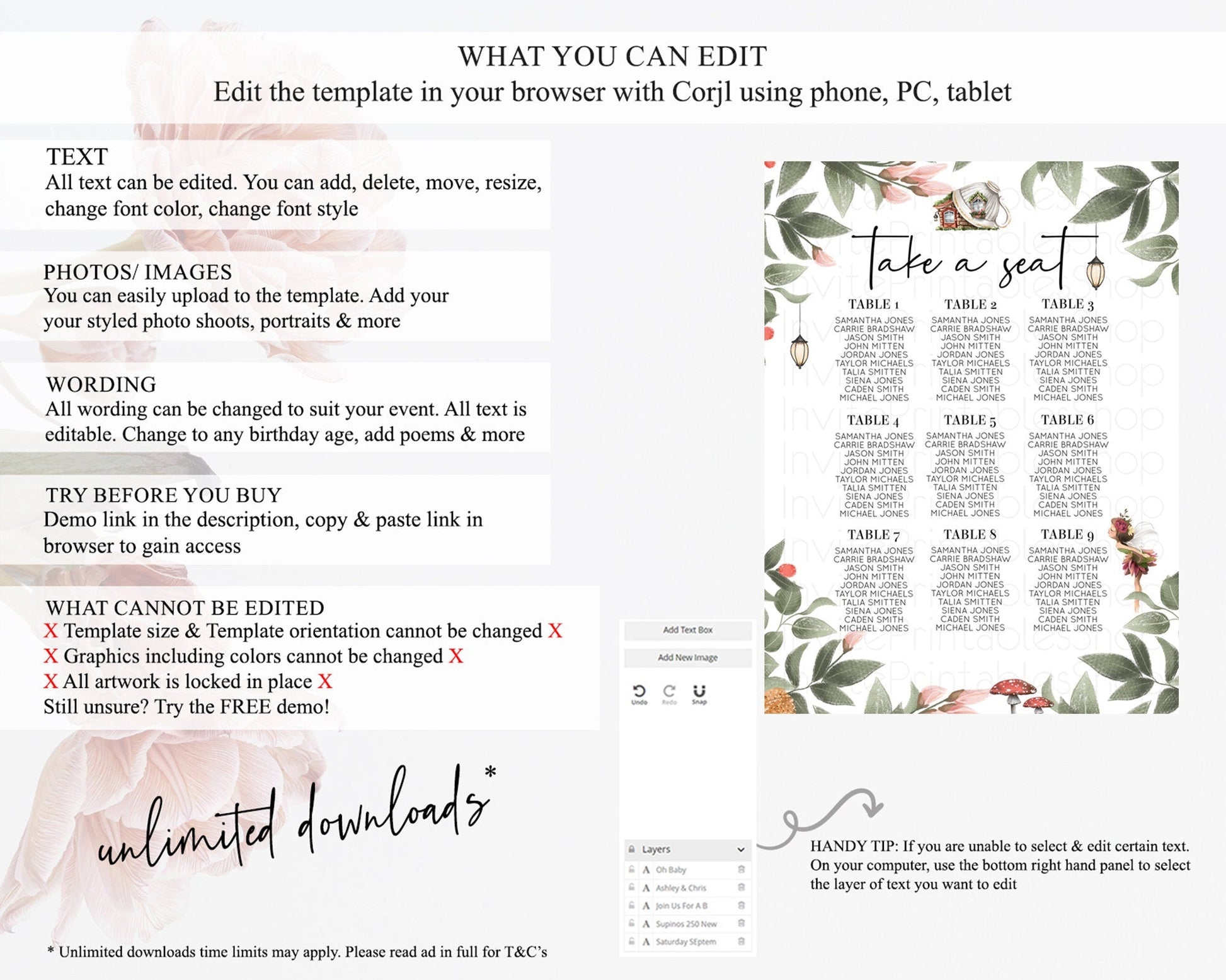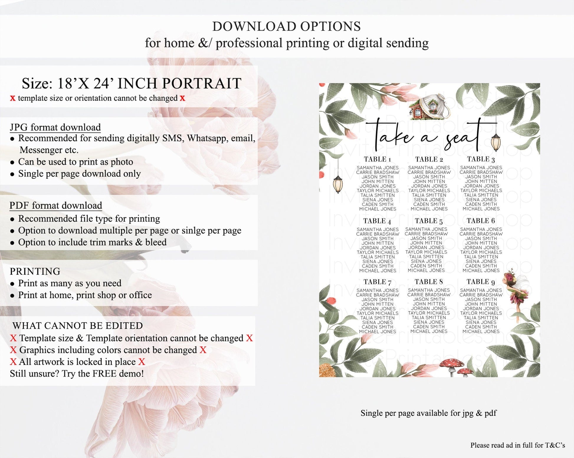 Fairy Seating Chart Pastel Fairy Seating Chart Fairy Tea Party Fairy Garden Seating Sign Enchanted Garden Floral Butterfly Decor D10851