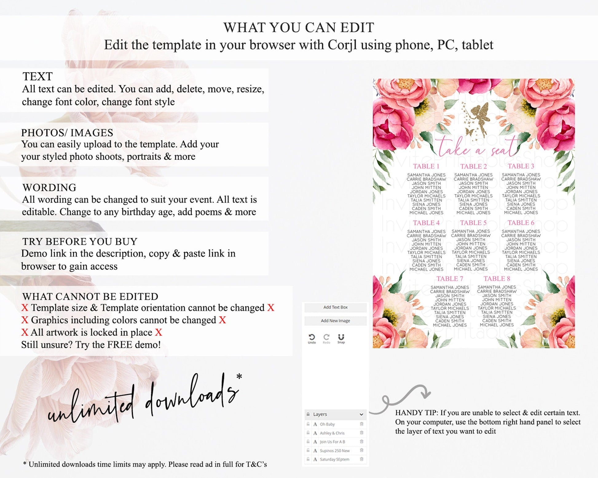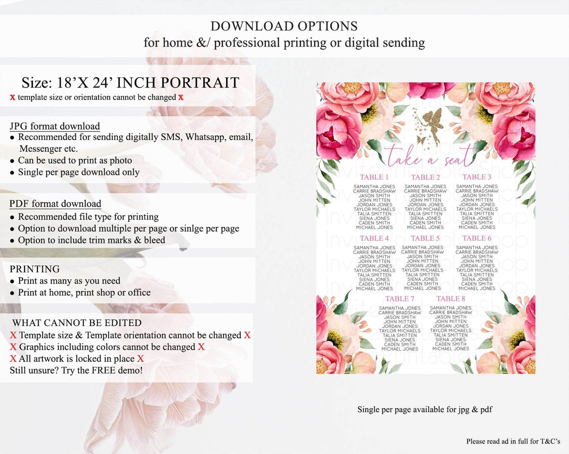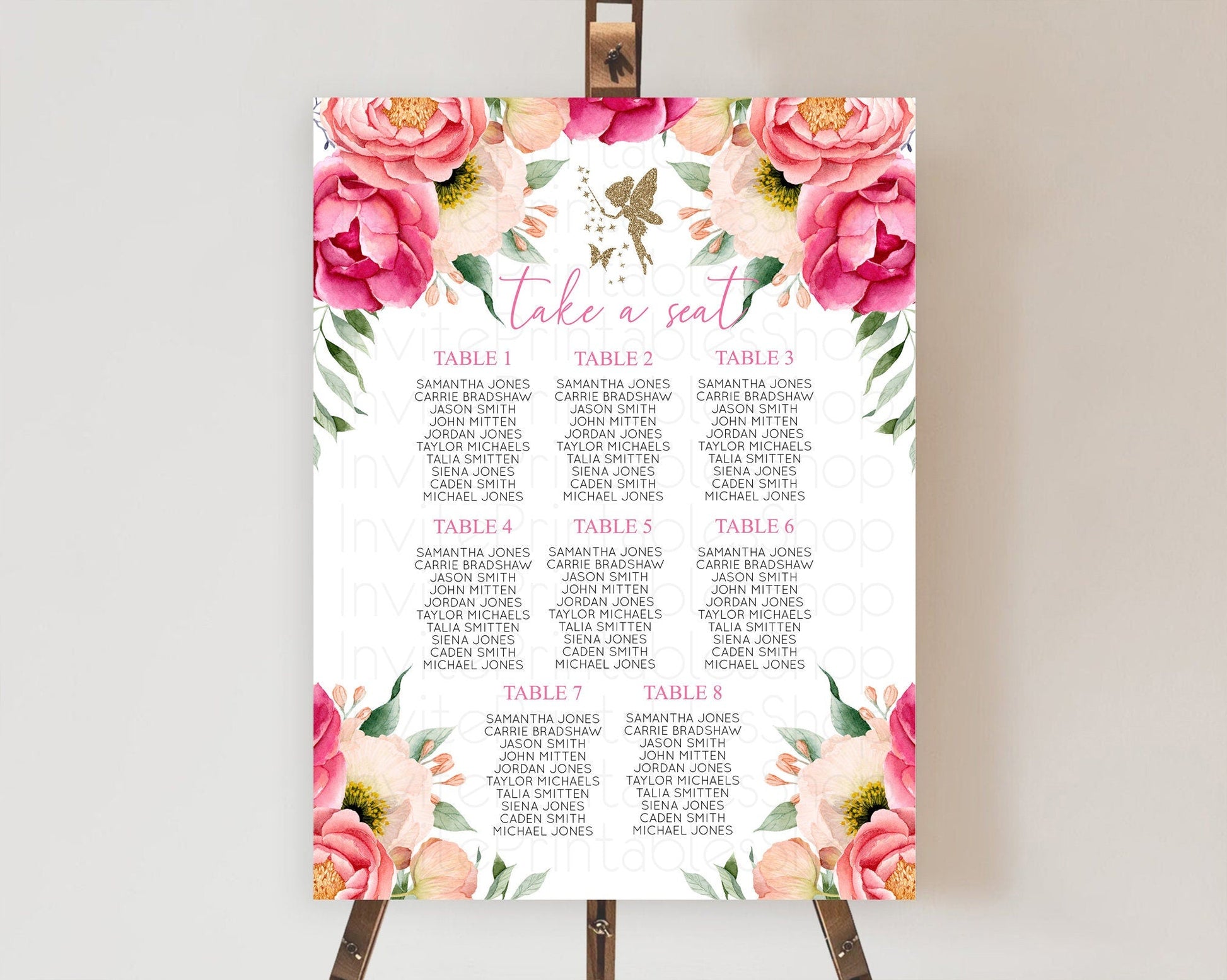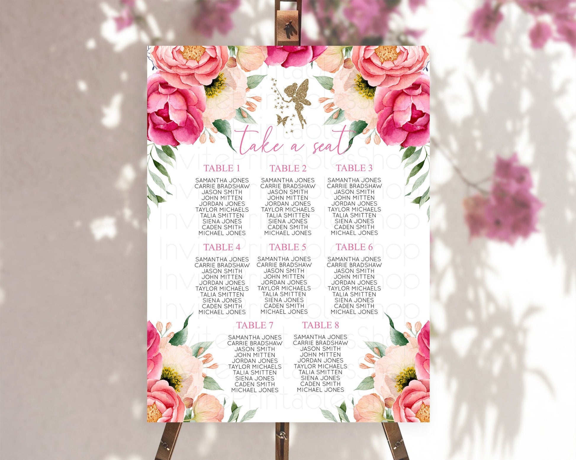 Fairy Seating Chart Pastel Fairy Seating Chart Fairy Tea Party Fairy Garden Seating Sign Enchanted Garden Floral Butterfly Decor D10883