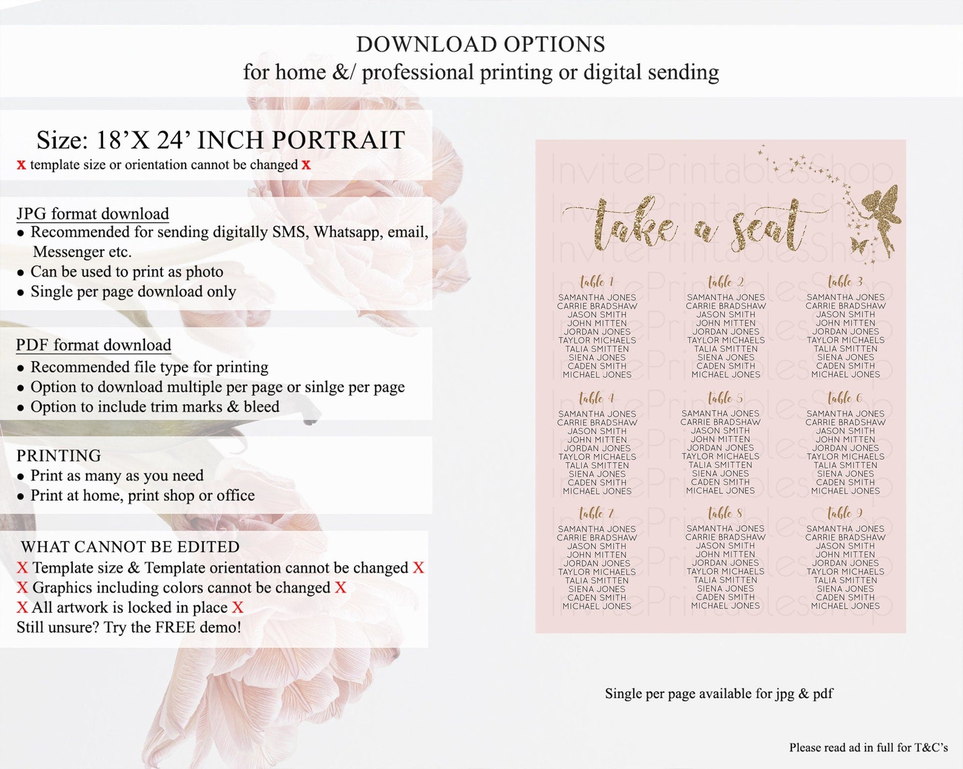 Fairy Seating Chart Pastel Fairy Seating Chart Fairy Tea Party Fairy Garden Seating Sign Enchanted Garden Floral Butterfly Decor D10899