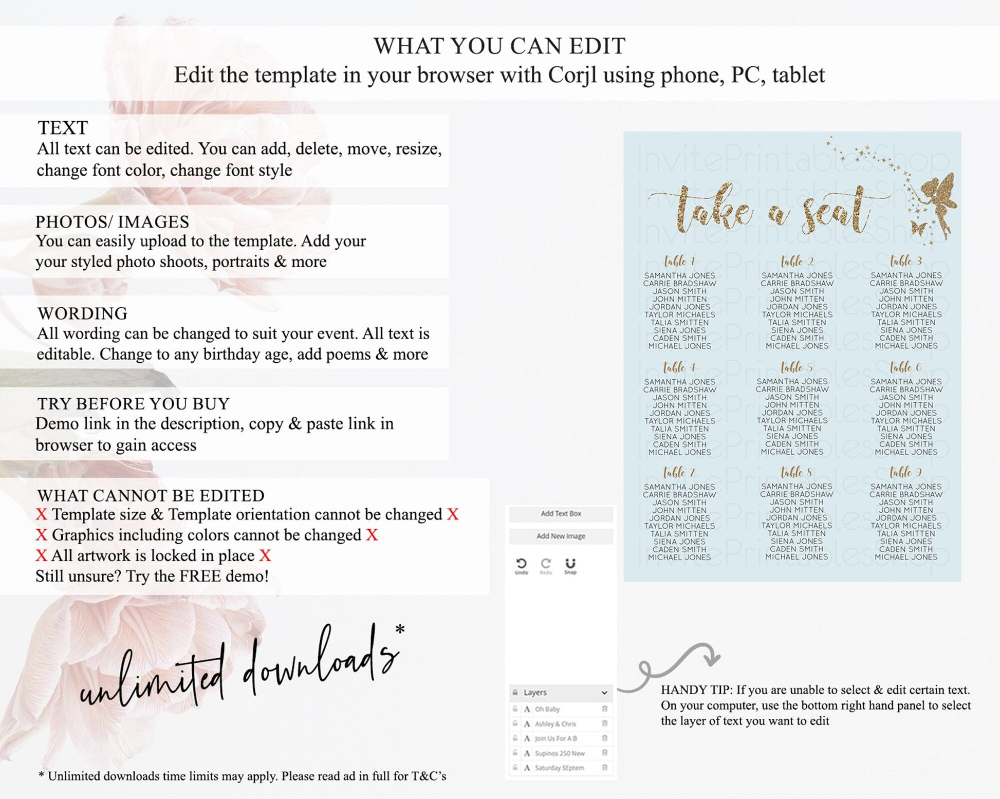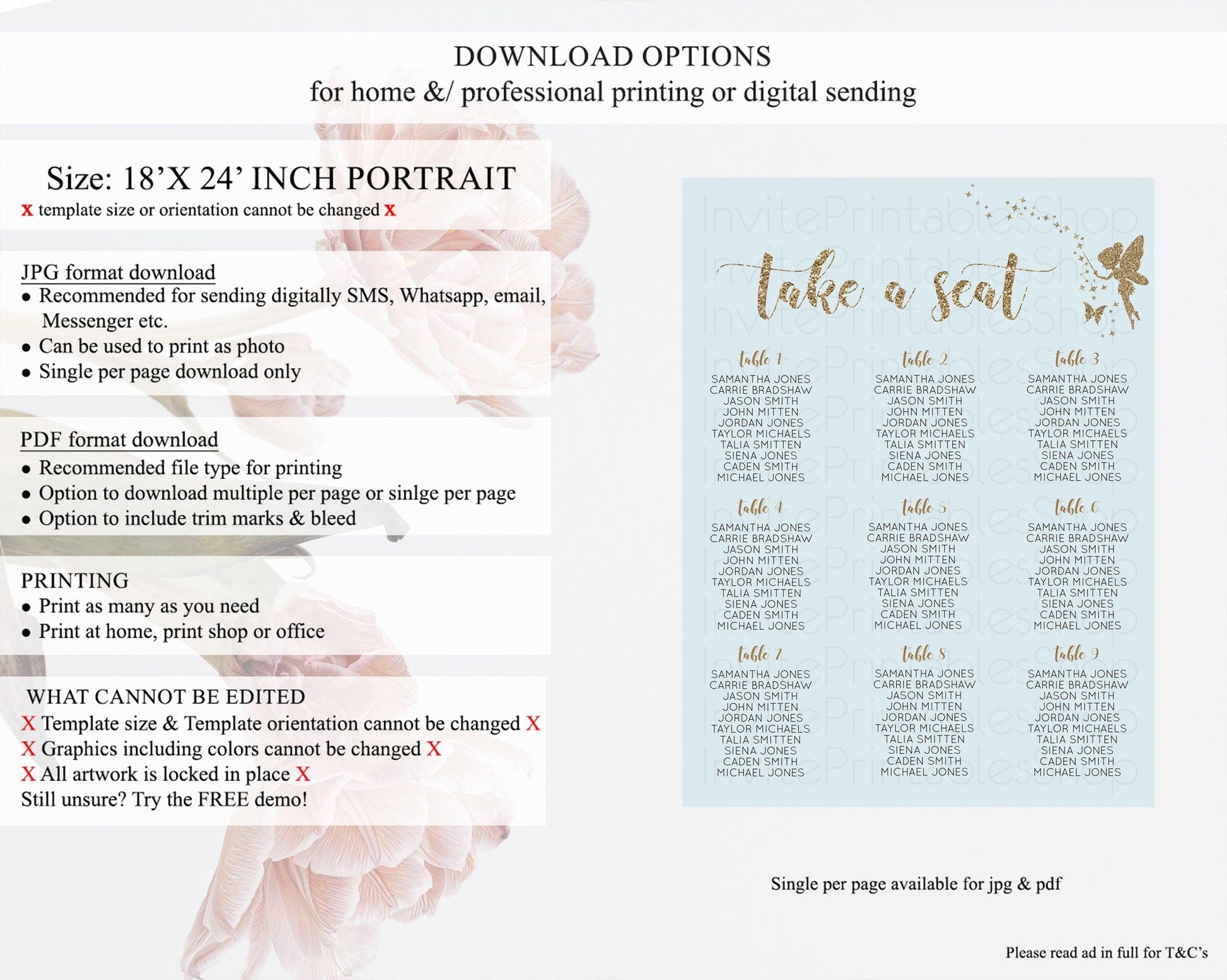 Fairy Seating Chart Pastel Fairy Seating Chart Fairy Tea Party Fairy Garden Seating Sign Enchanted Garden Floral Butterfly Decor D10907