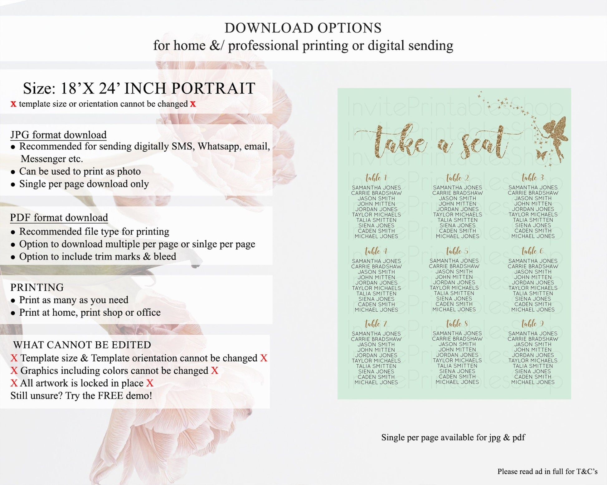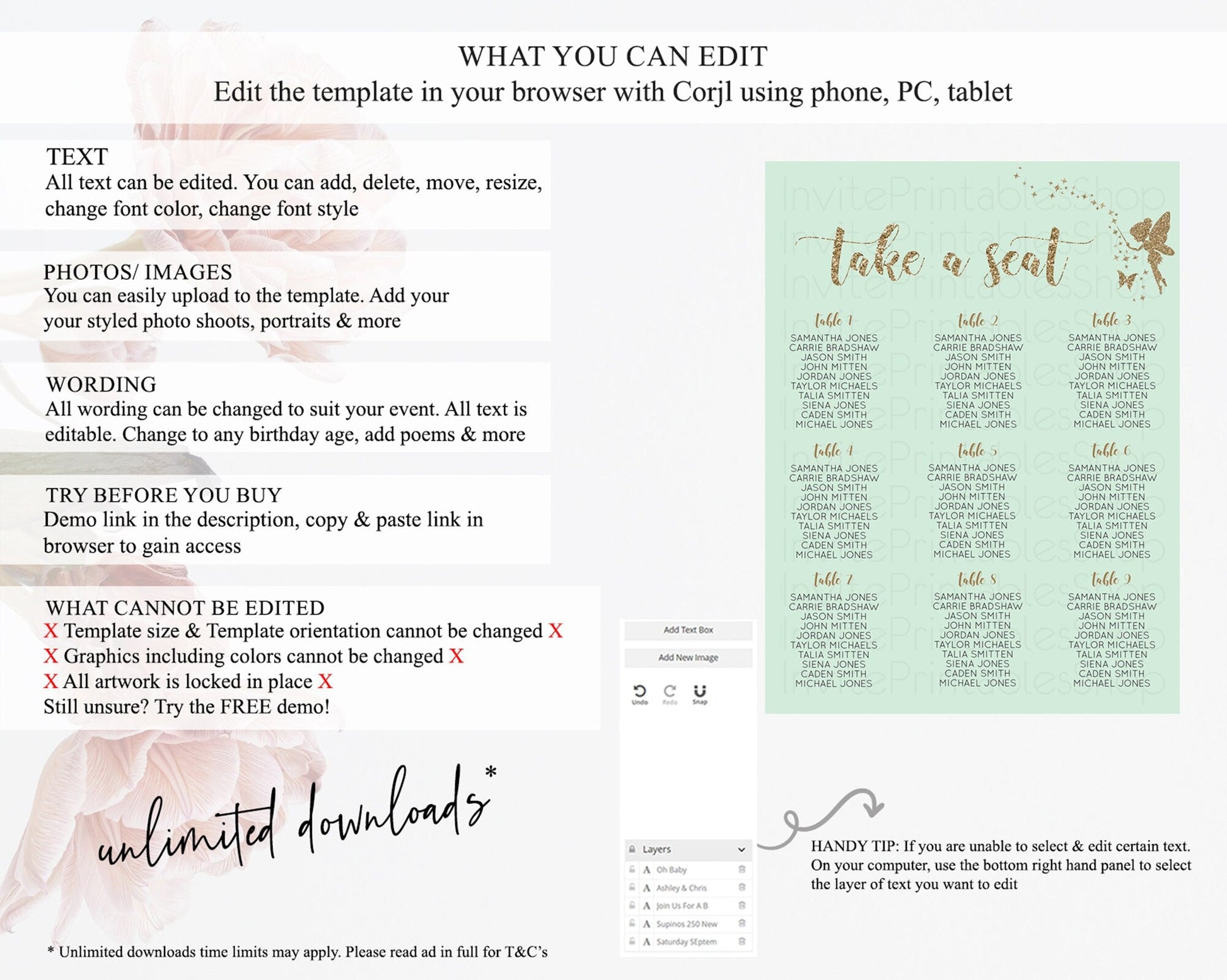 Fairy Seating Chart Pastel Fairy Seating Chart Fairy Tea Party Fairy Garden Seating Sign Enchanted Garden Floral Butterfly Decor D10908