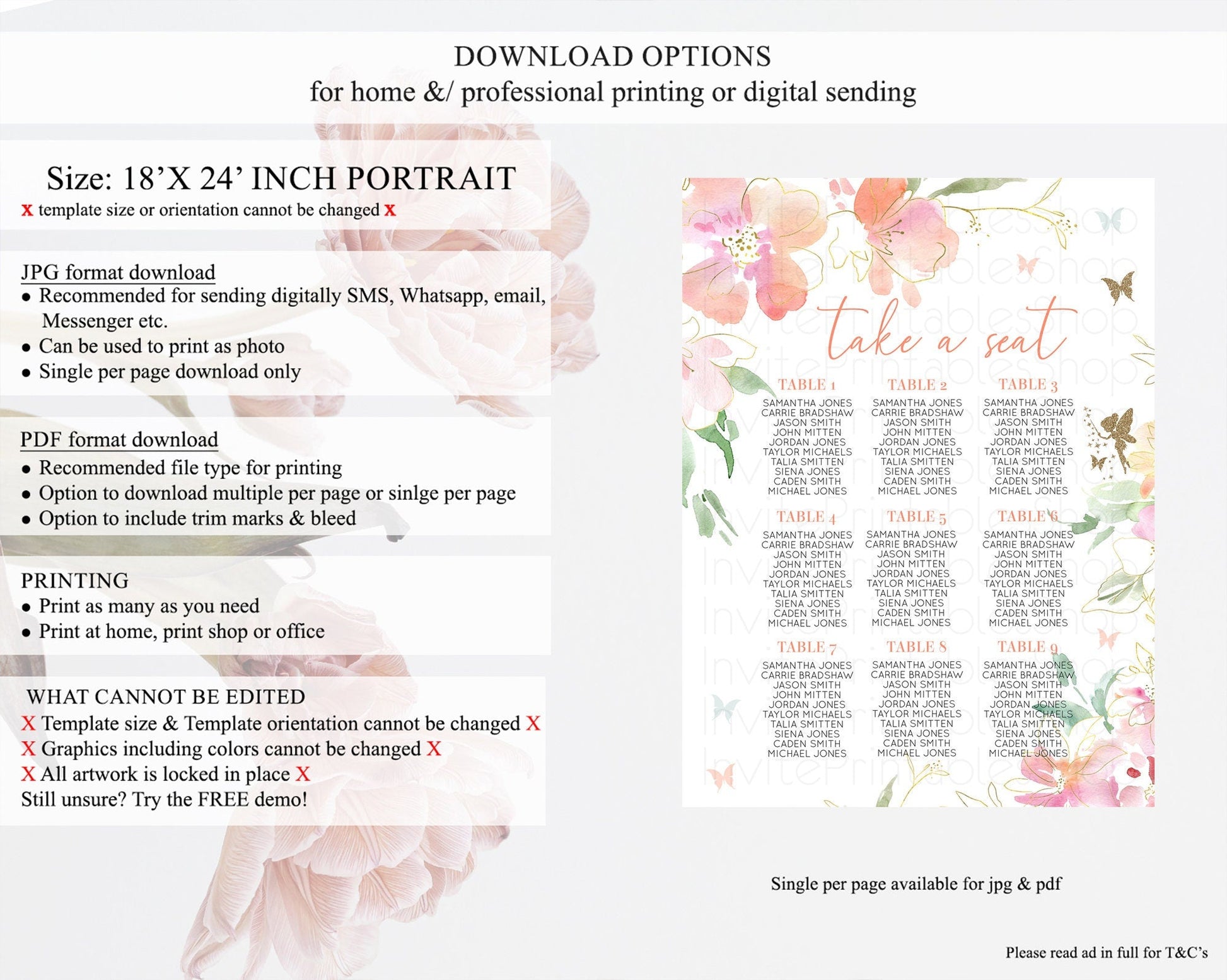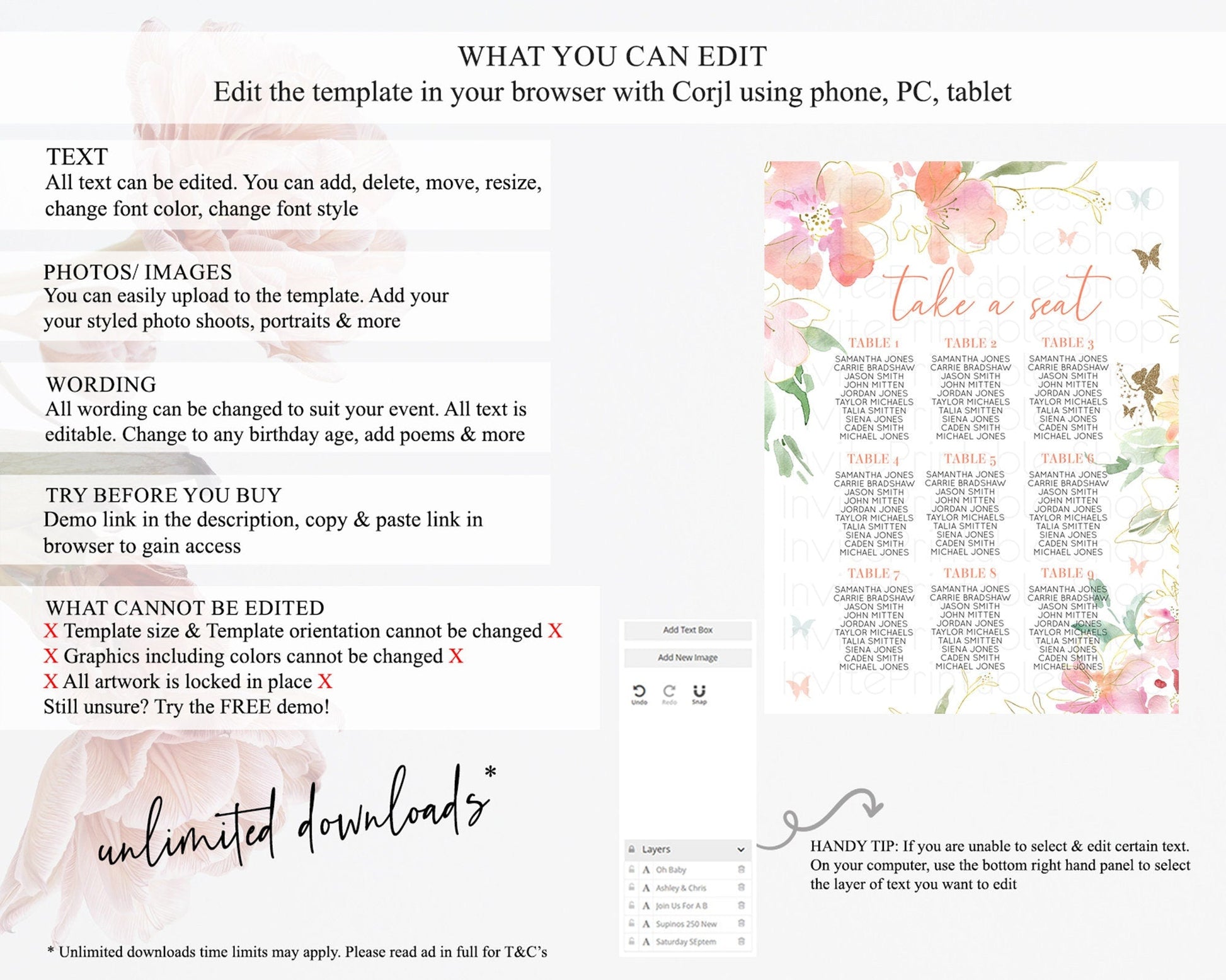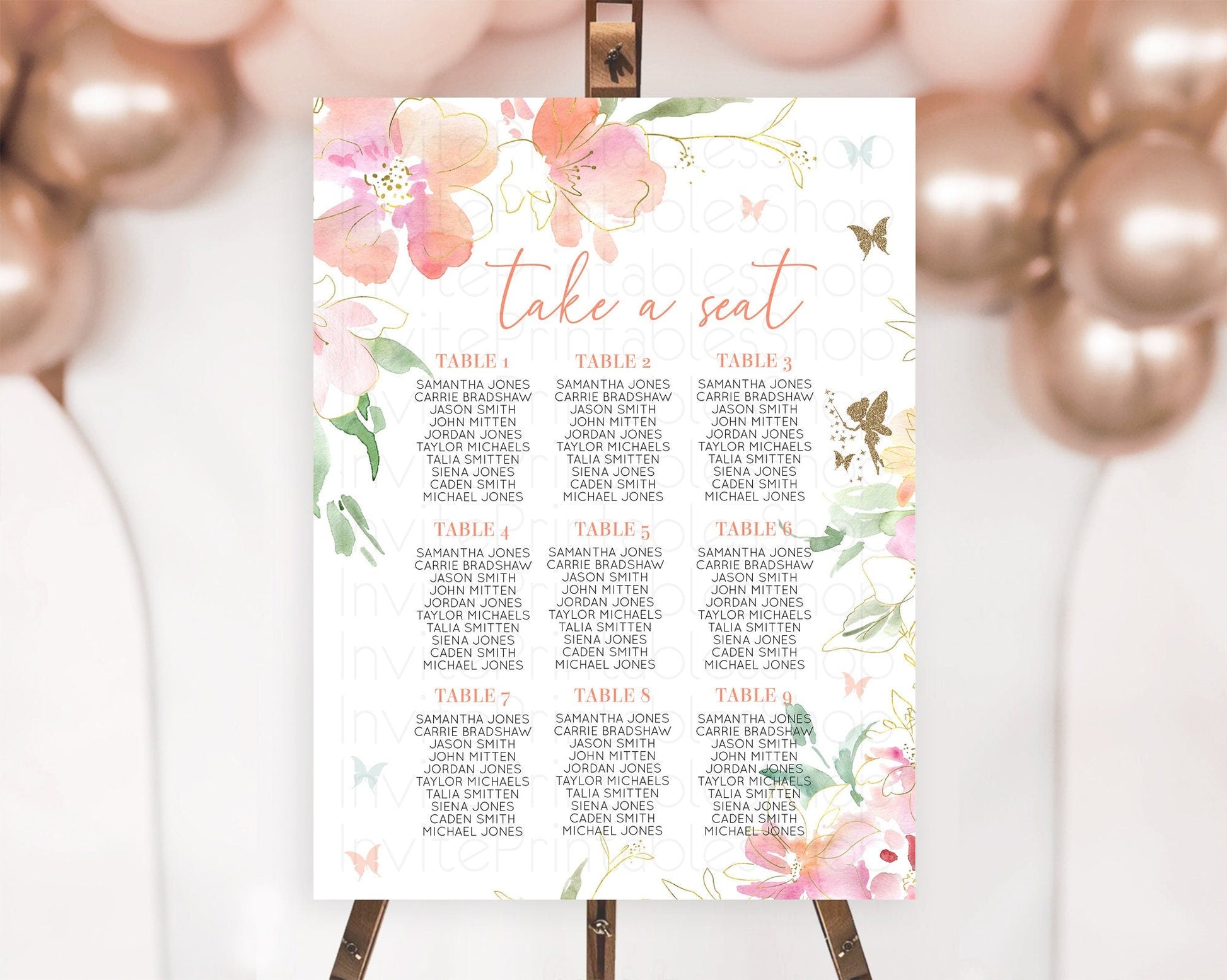 Fairy Seating Chart Pastel Fairy Seating Chart Fairy Tea Party Fairy Garden Seating Sign Enchanted Garden Floral Butterfly Decor D10934