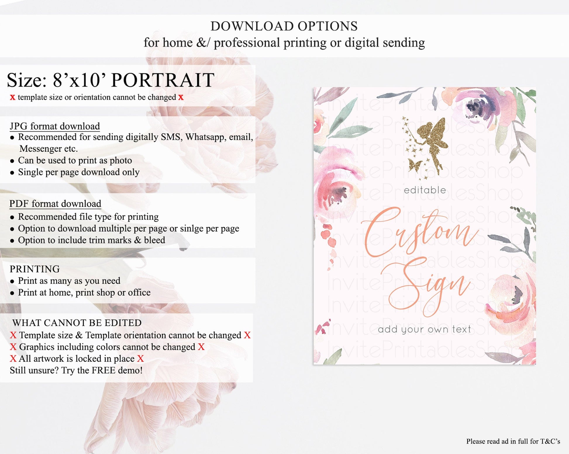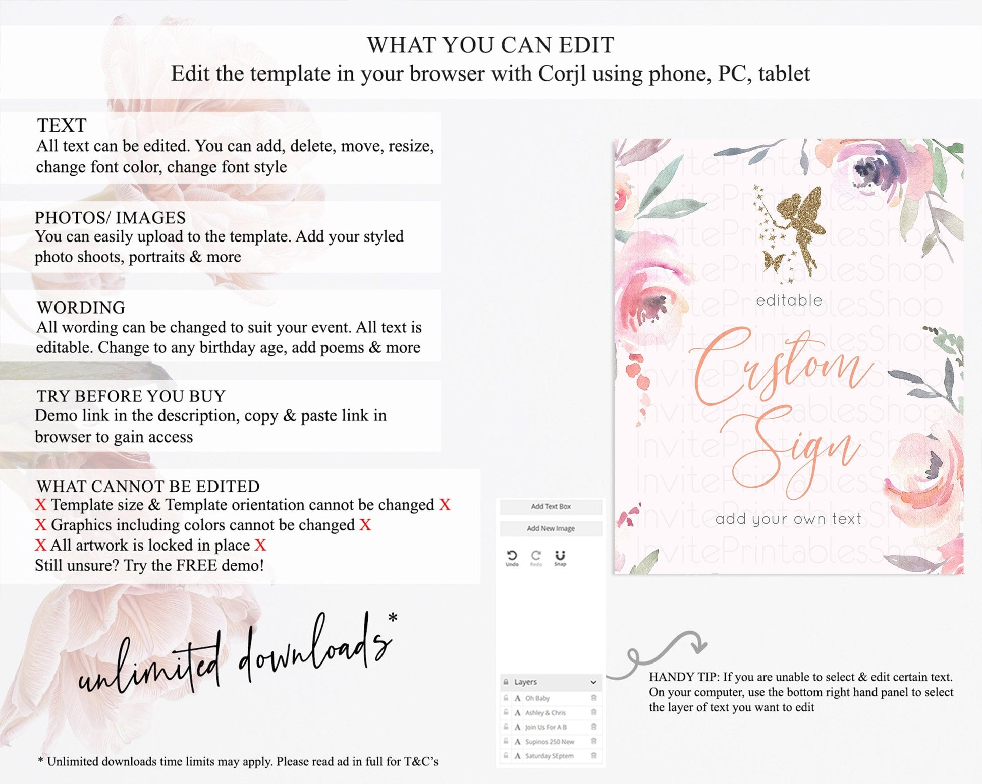 Fairy Sign Enchanted Garden Table Sign Decor Pastel Floral Butterfly Party Secret Garden Birthday Baptism Baby Shower Bridal Shower D10197