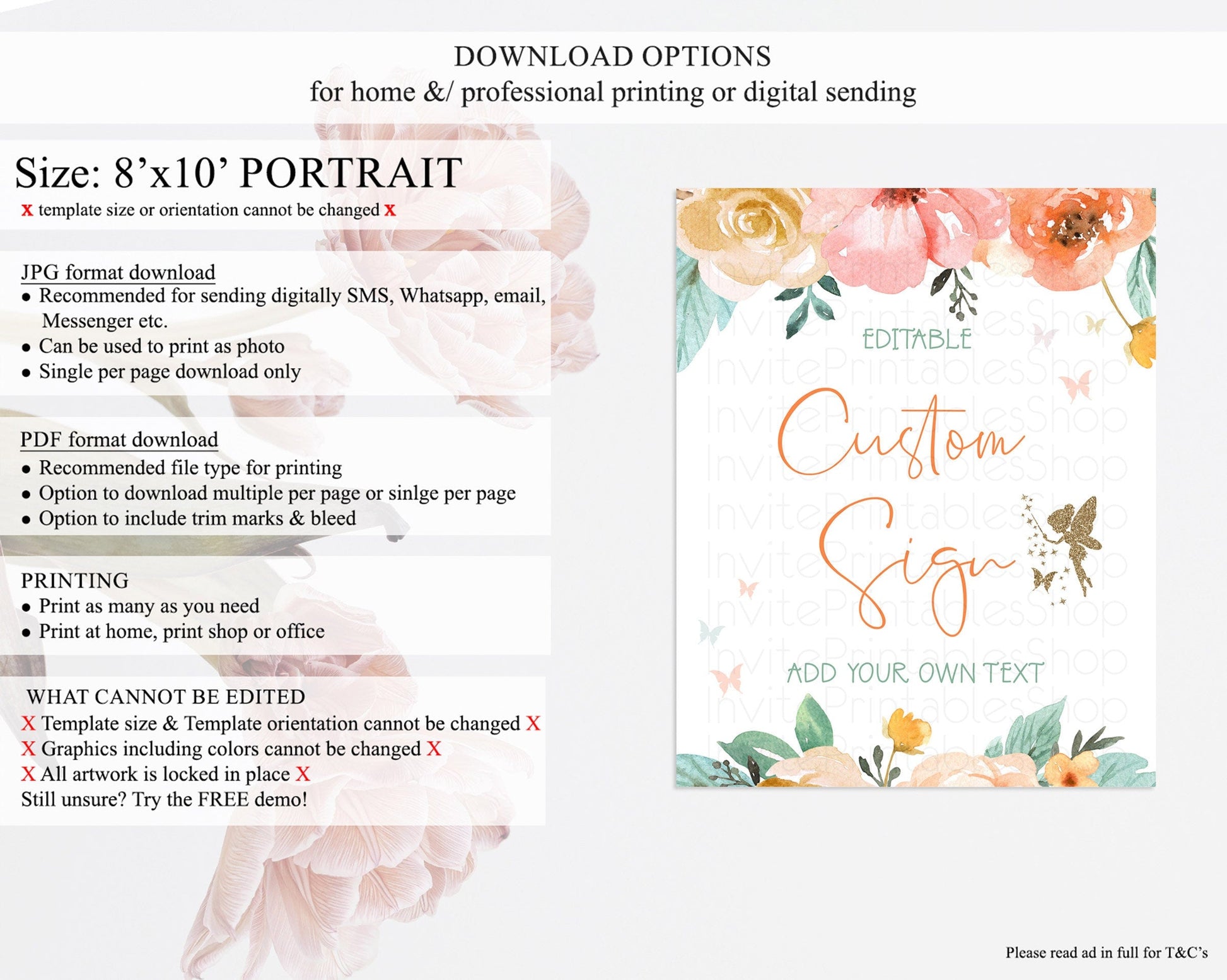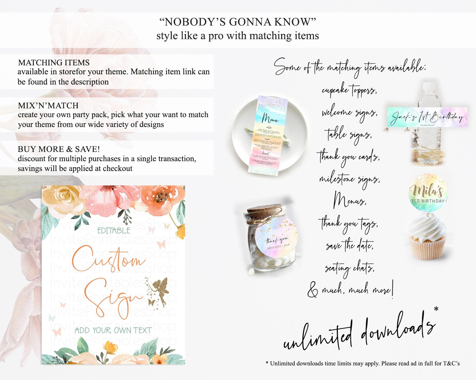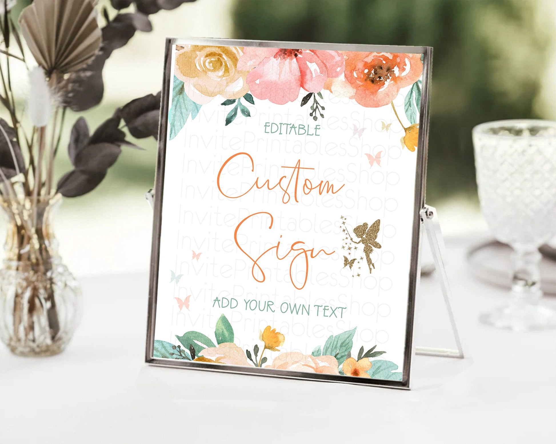 Fairy Sign Enchanted Garden Table Sign Decor Pastel Floral Butterfly Party Secret Garden Birthday Baptism Baby Shower Bridal Shower D10346