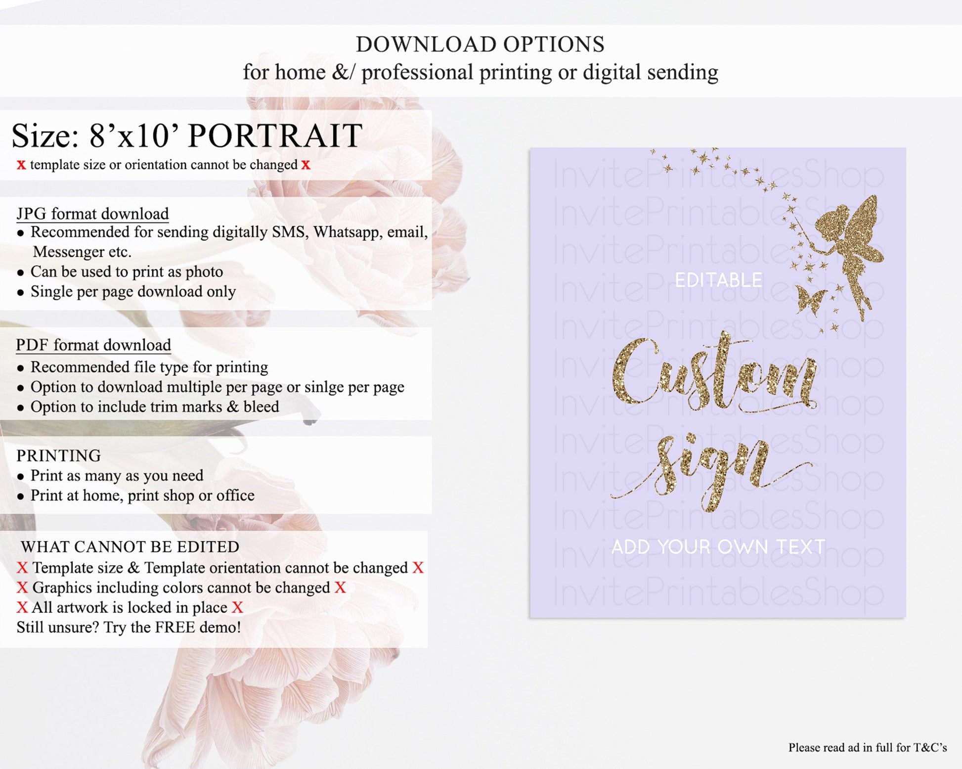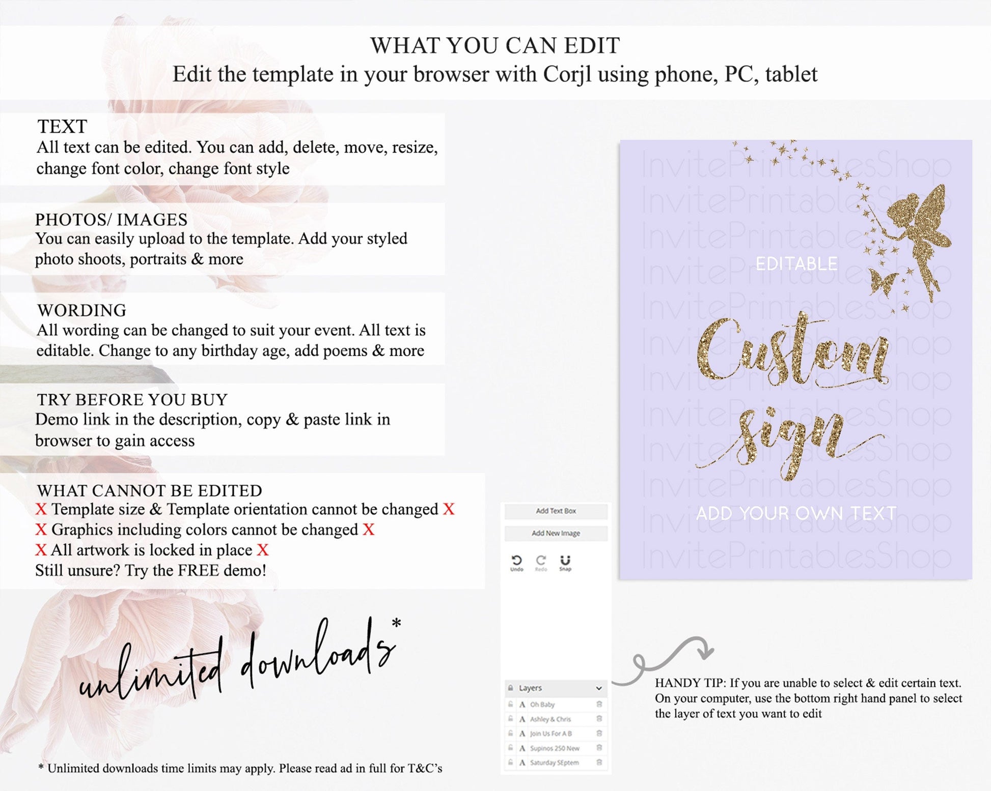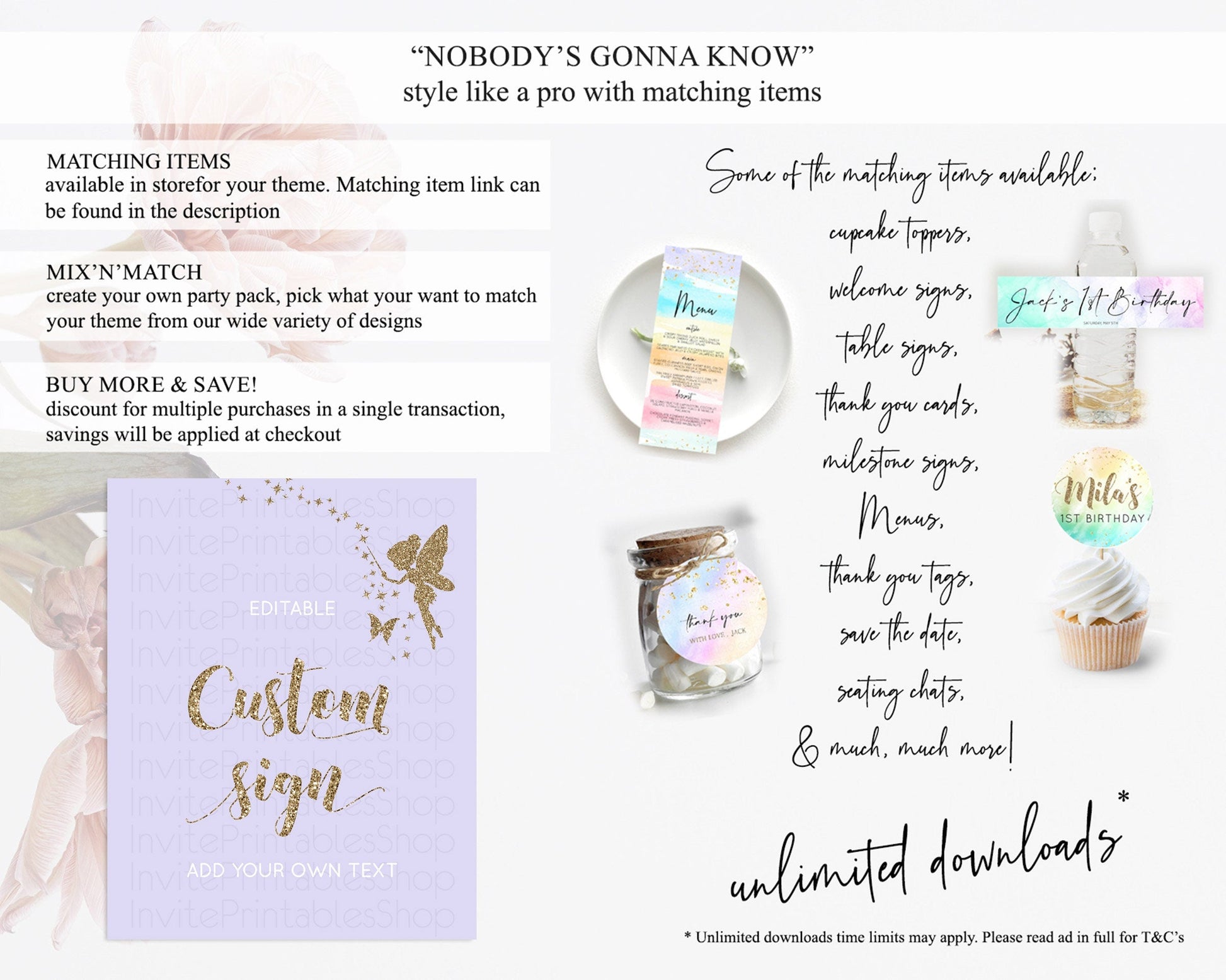 Fairy Sign Enchanted Garden Table Sign Decor Pastel Floral Butterfly Party Secret Garden Birthday Baptism Baby Shower Bridal Shower D10389