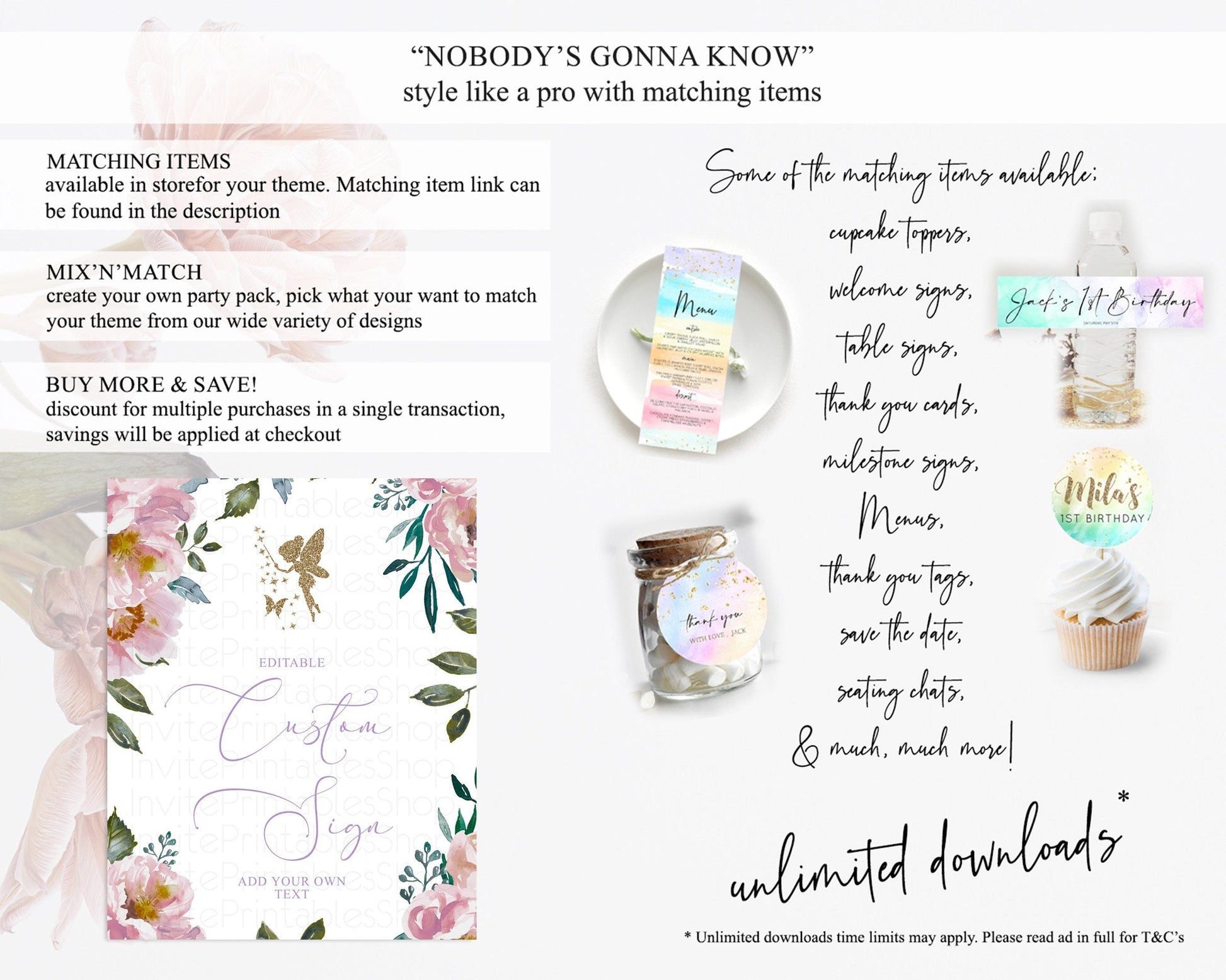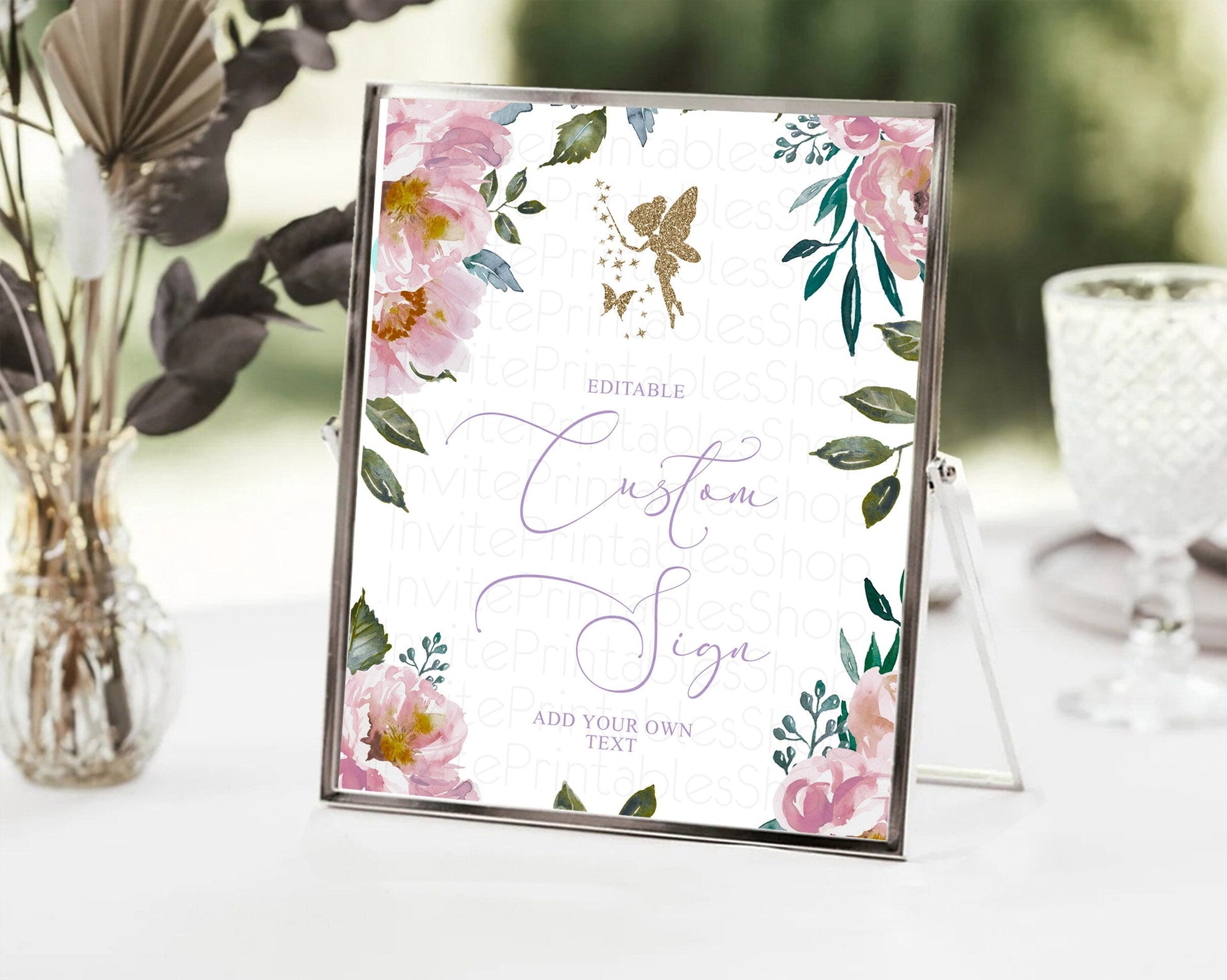 Fairy Sign Enchanted Garden Table Sign Decor Pastel Floral Butterfly Party Secret Garden Birthday Baptism Baby Shower Bridal Shower D10727
