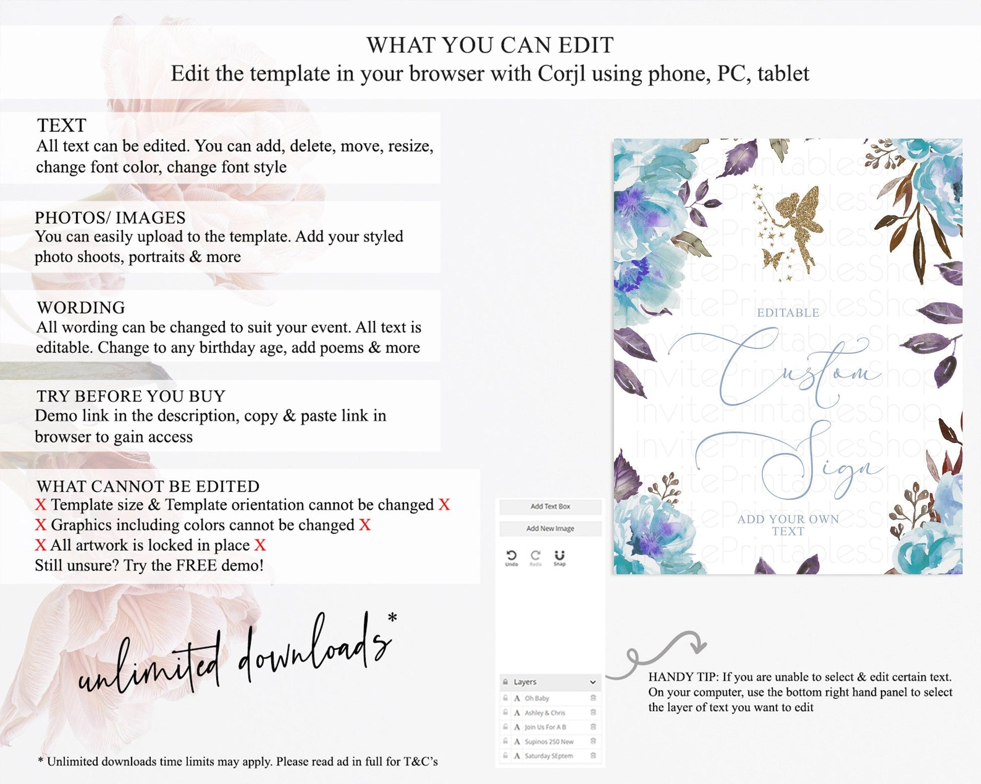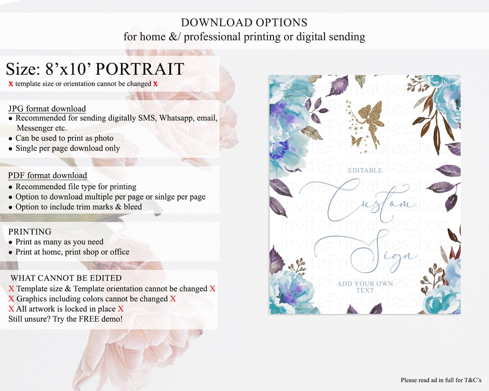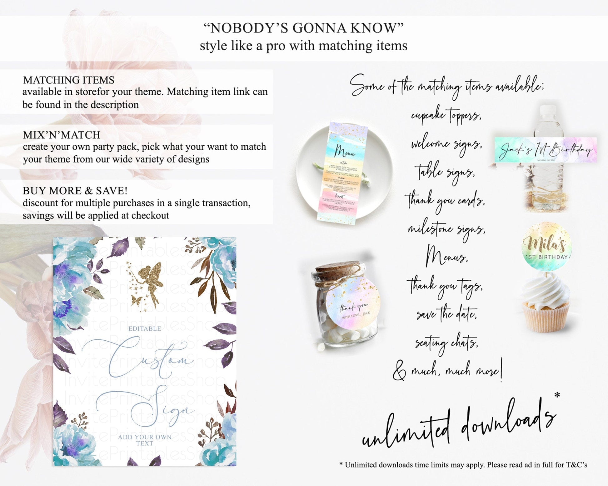 Fairy Sign Enchanted Garden Table Sign Decor Pastel Floral Butterfly Party Secret Garden Birthday Baptism Baby Shower Bridal Shower D10728