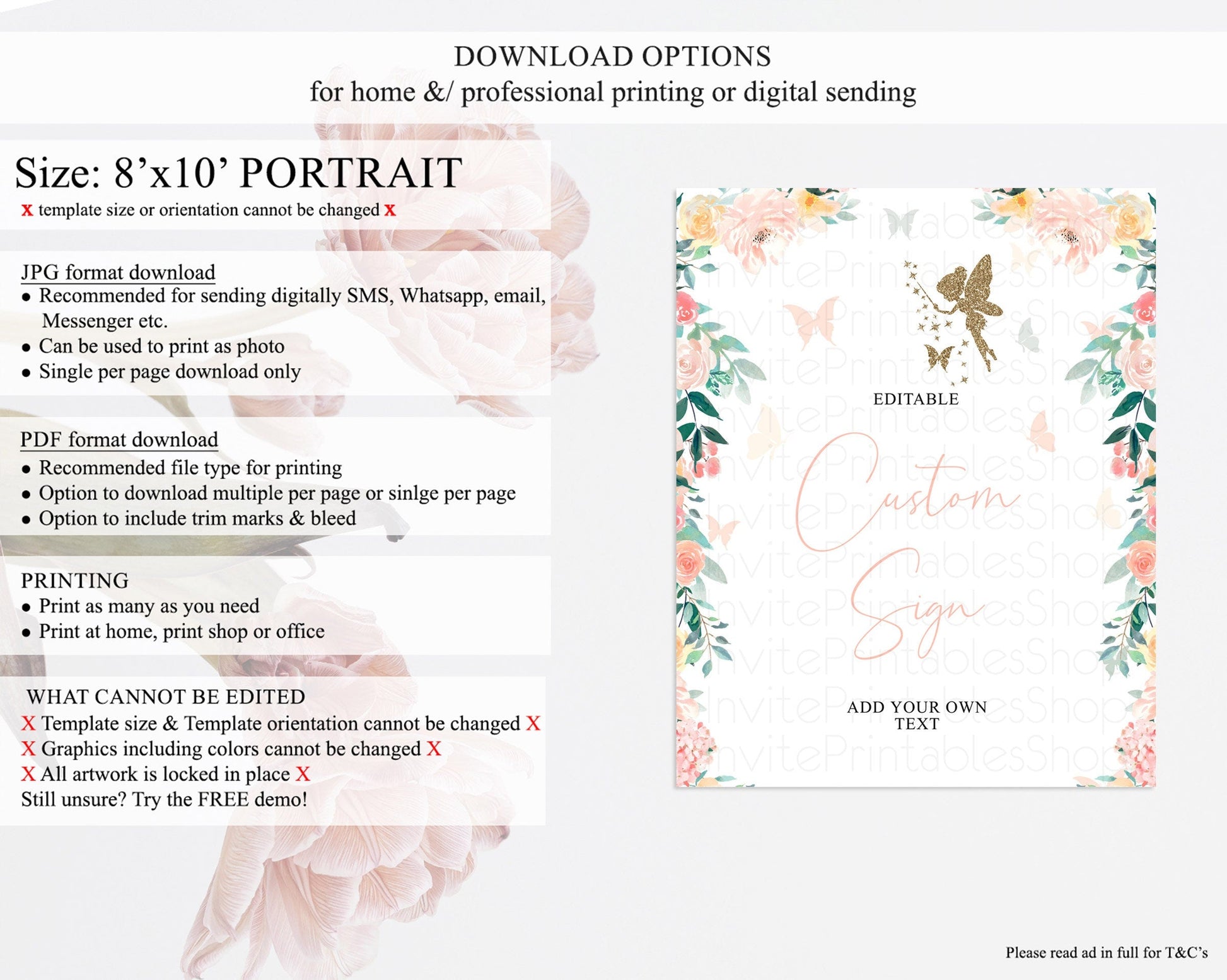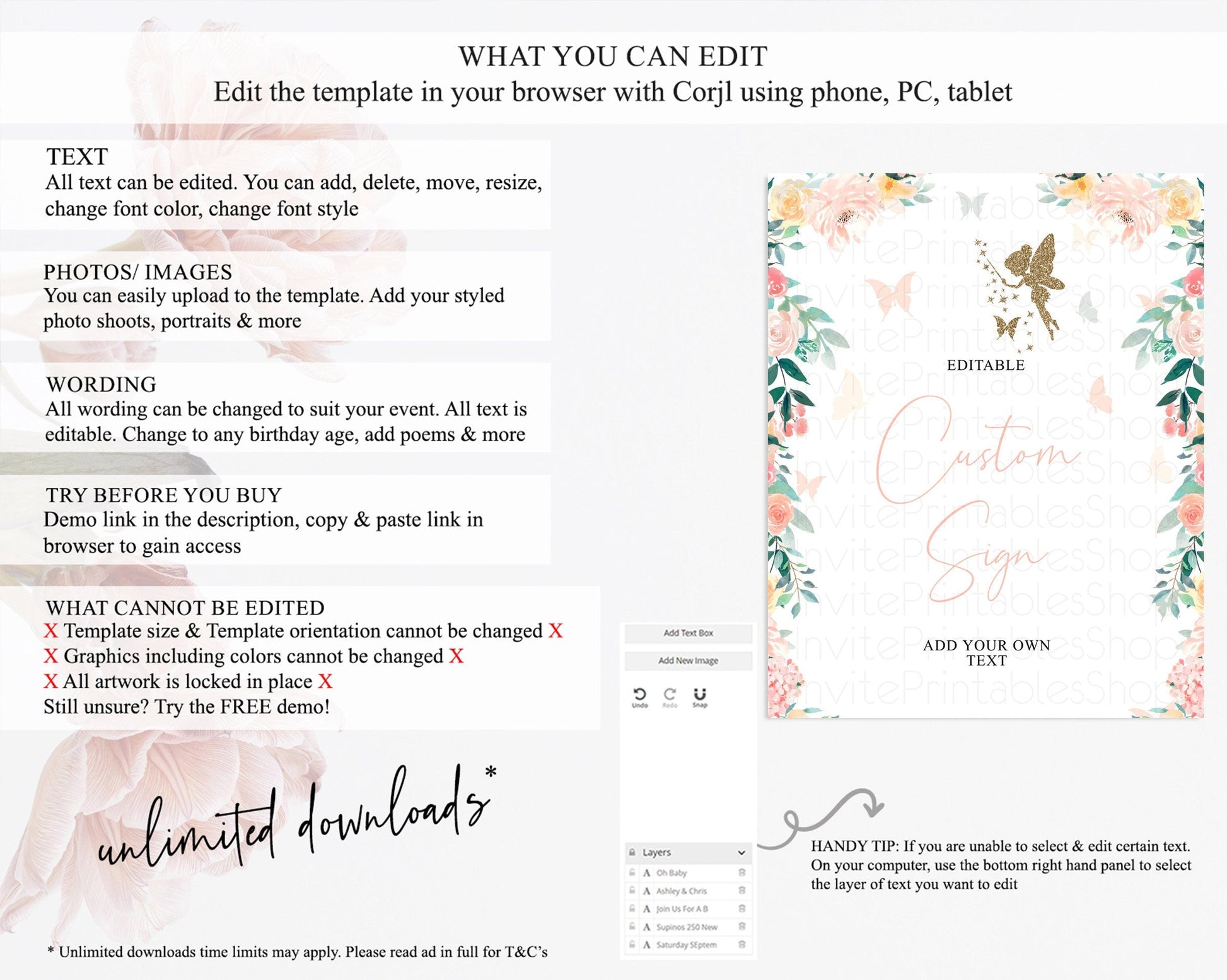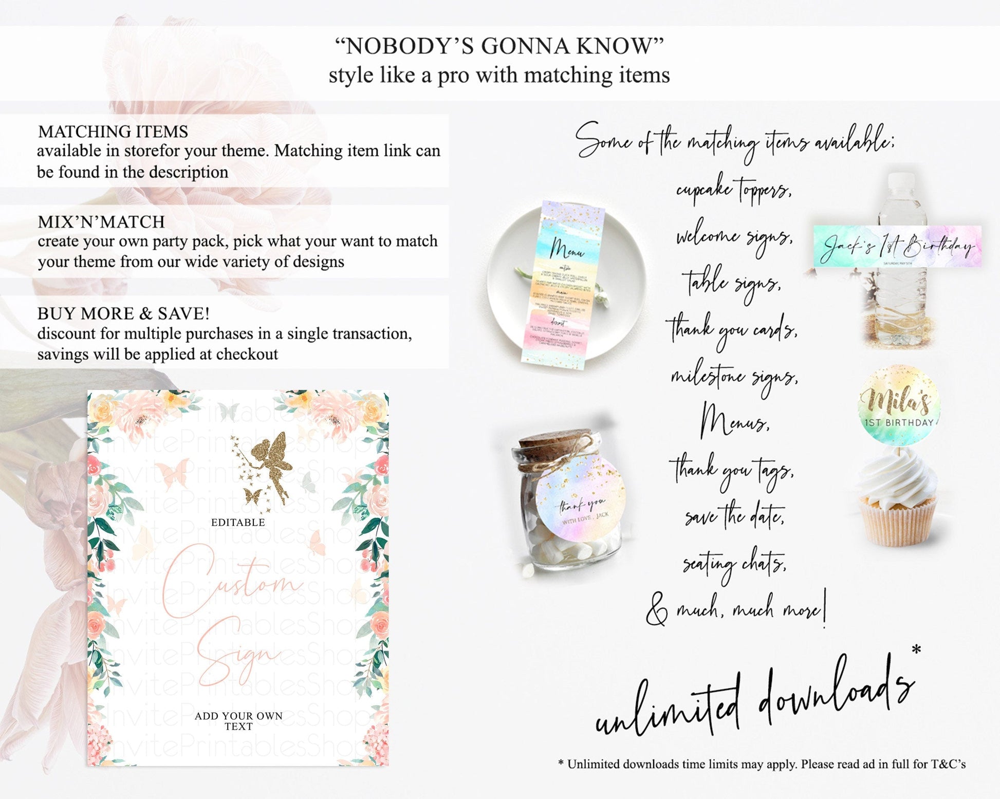 Fairy Sign Enchanted Garden Table Sign Decor Pastel Floral Butterfly Party Secret Garden Birthday Baptism Baby Shower Bridal Shower D10789