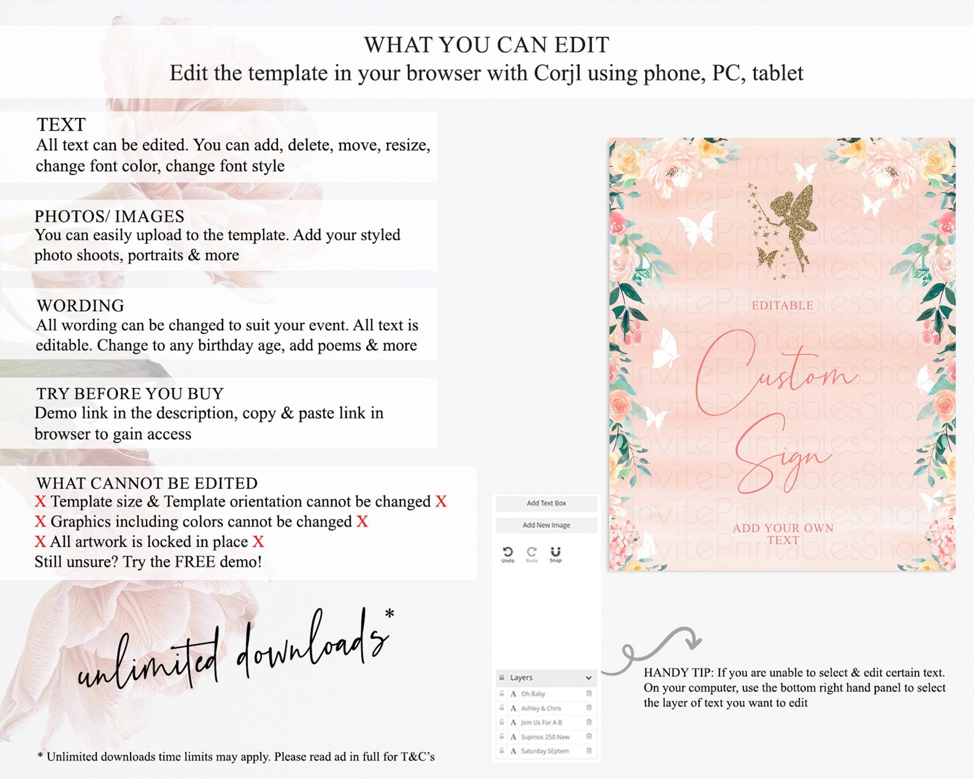 • After purchase, Corjl emails your editing link. Allow up to 15 minutes for delivery.