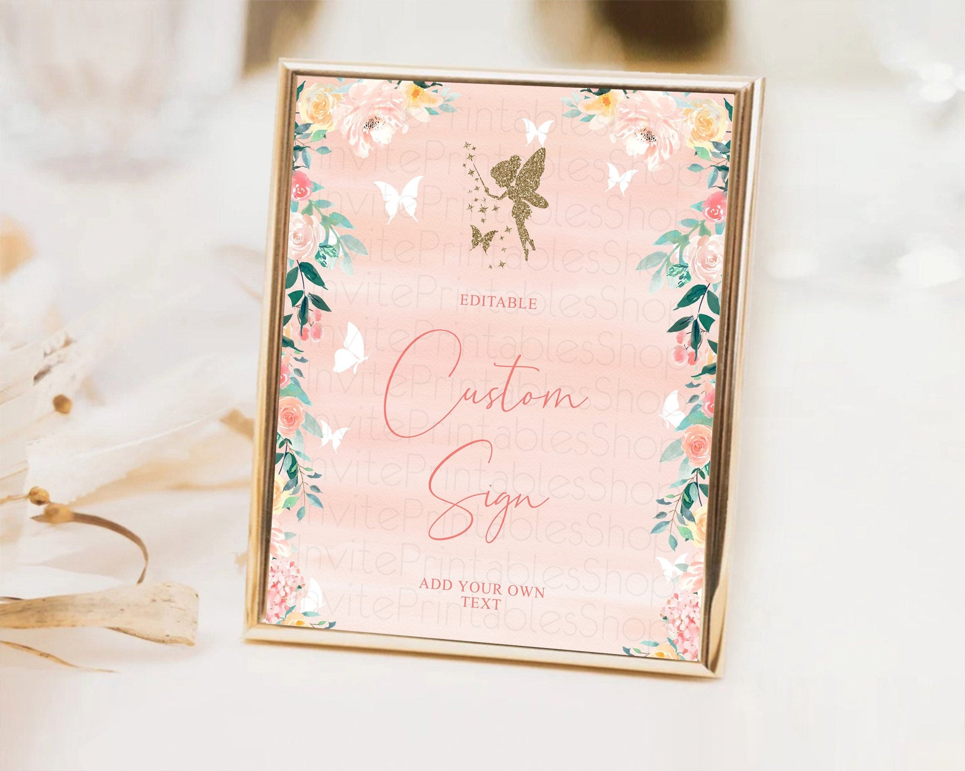 Fairy Sign Enchanted Garden Table Sign Decor Pastel Floral Butterfly Party Secret Garden Birthday Baptism Baby Shower Bridal Shower D10792