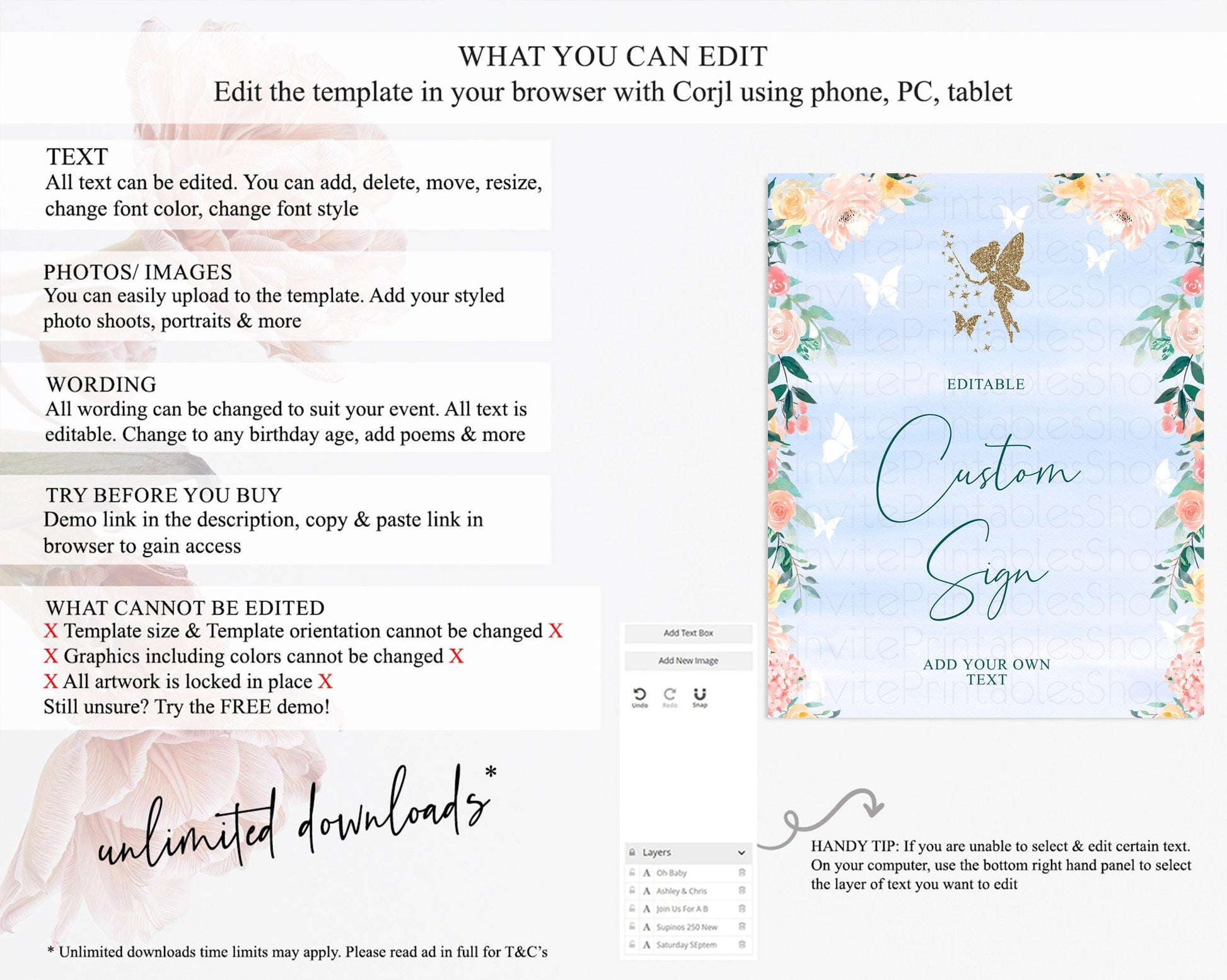 • After purchase, Corjl emails your editing link. Allow up to 15 minutes for delivery.