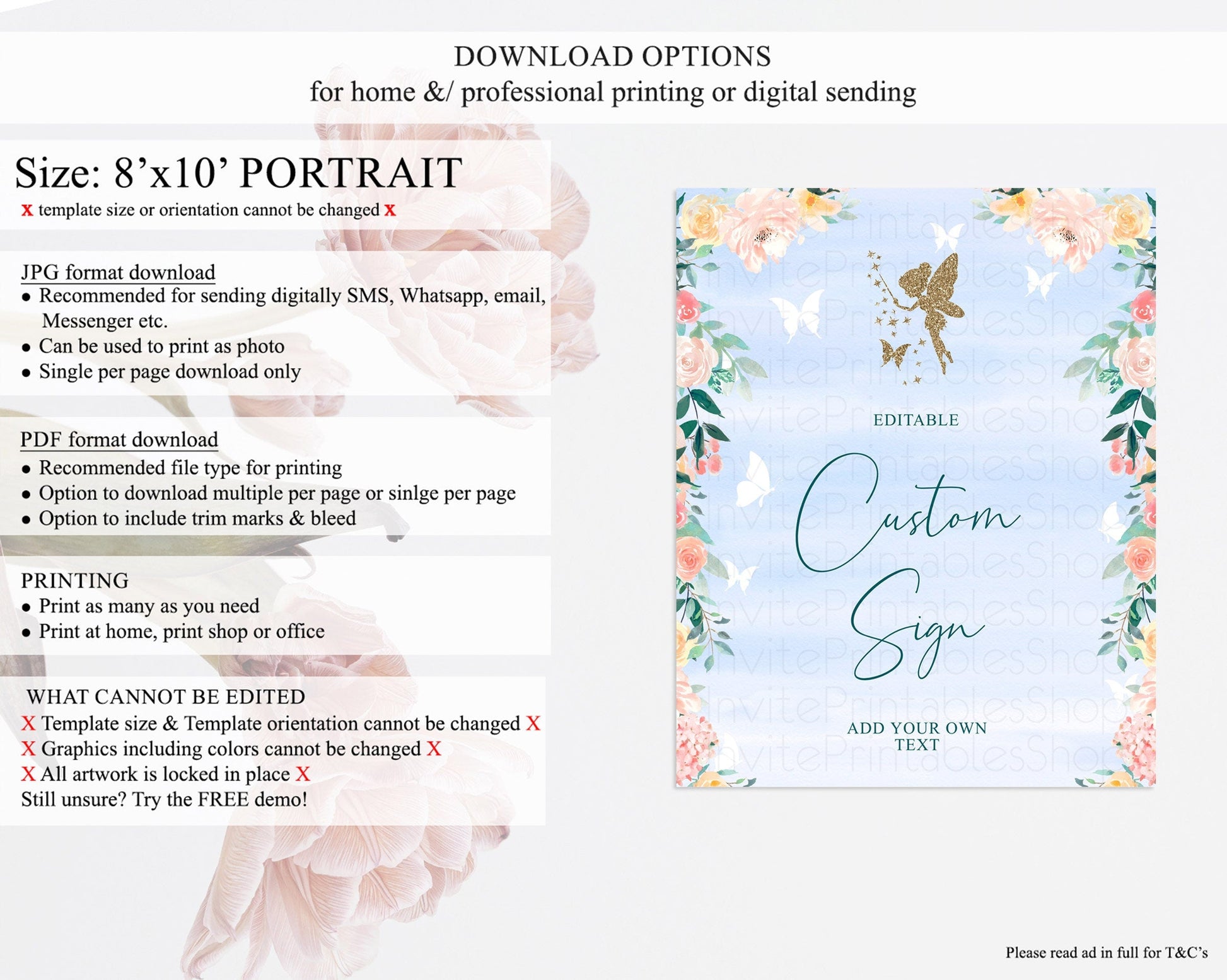 • Template size & orientation cannot be changed. Please use the demo link to confirm this product suits your needs.