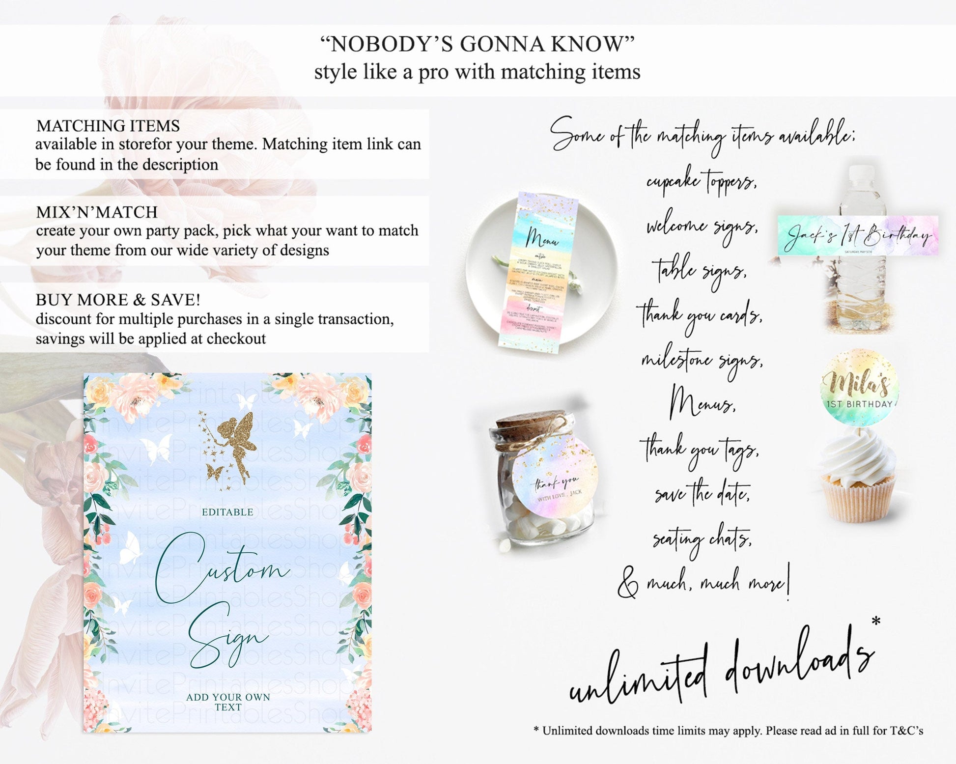 Fairy Sign Enchanted Garden Table Sign Decor Pastel Floral Butterfly Party Secret Garden Birthday Baptism Baby Shower Bridal Shower D10794