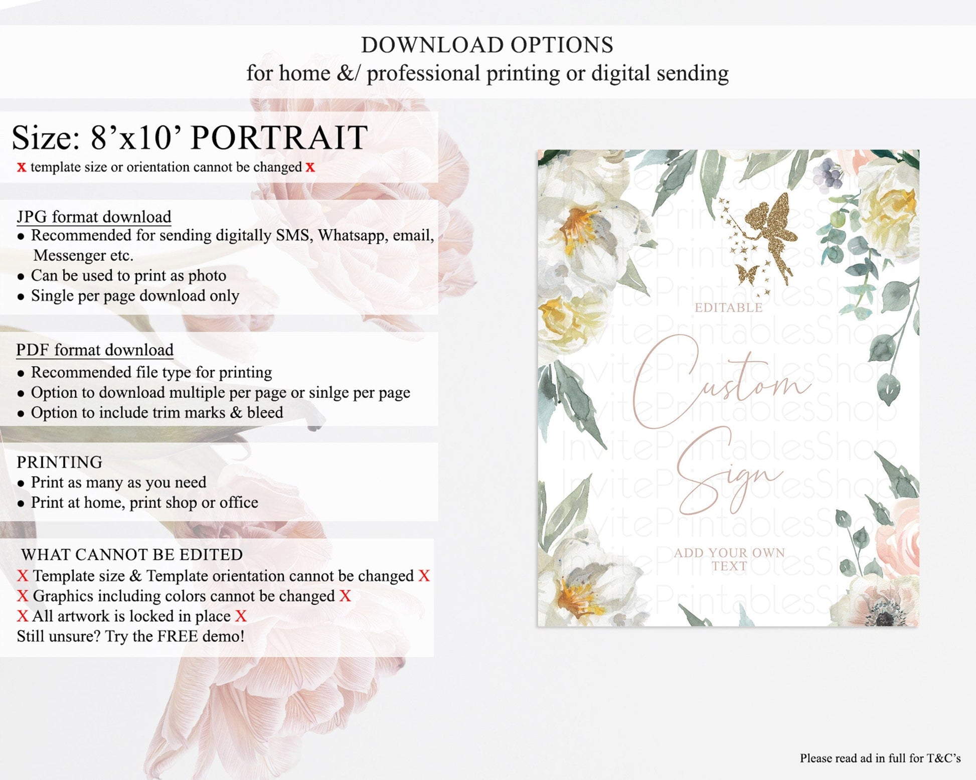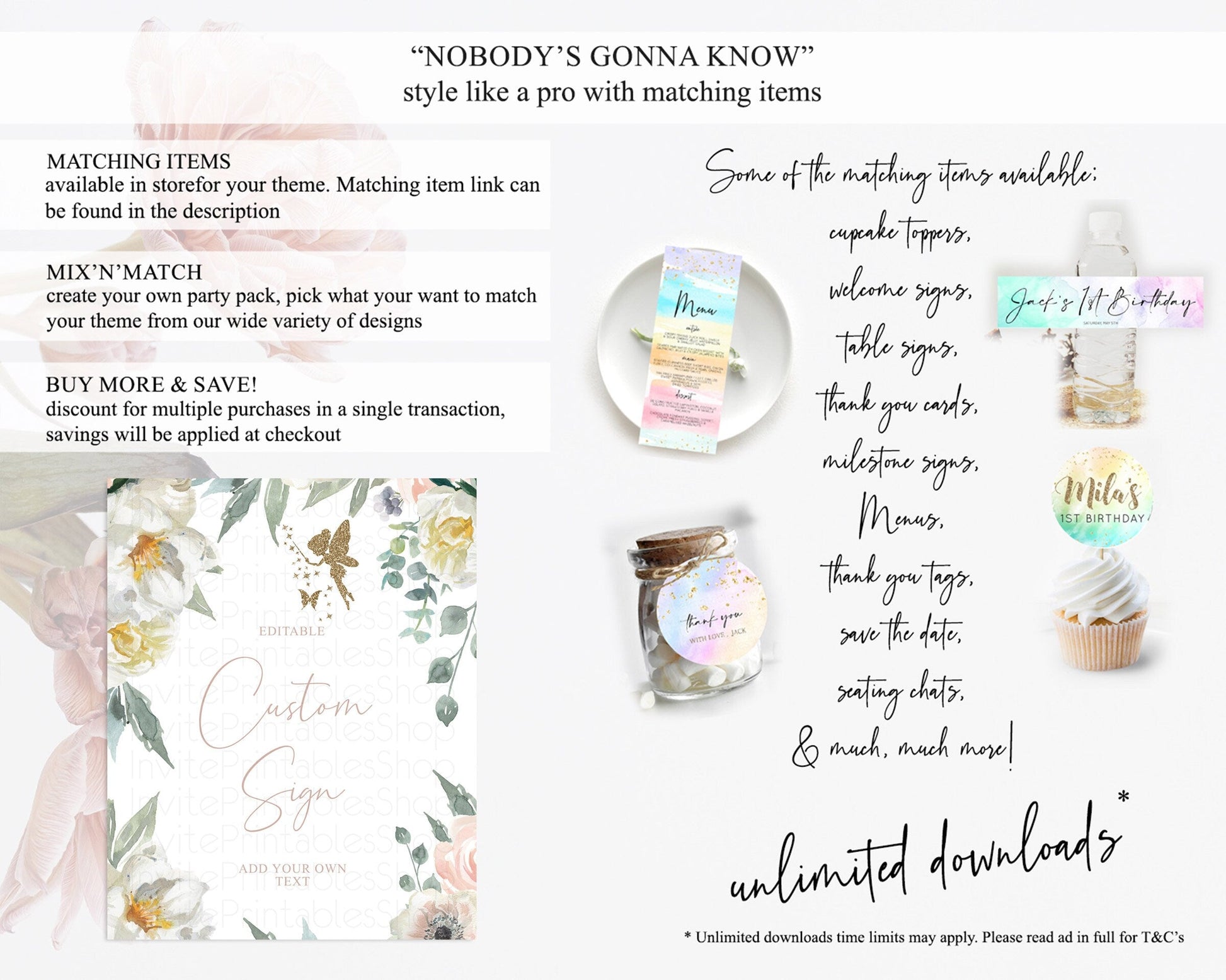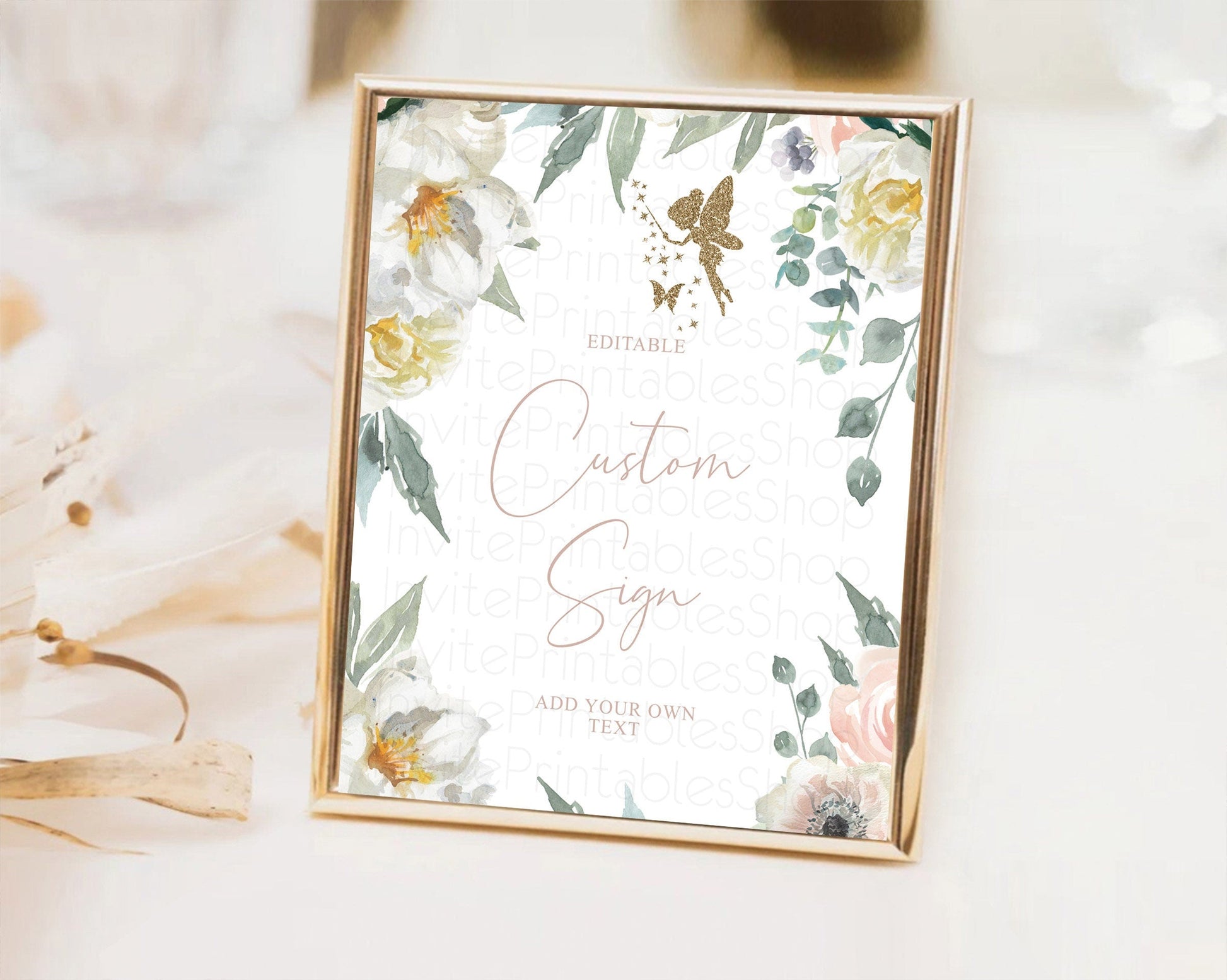 Fairy Sign Enchanted Garden Table Sign Decor Pastel Floral Butterfly Party Secret Garden Birthday Baptism Baby Shower Bridal Shower D10800