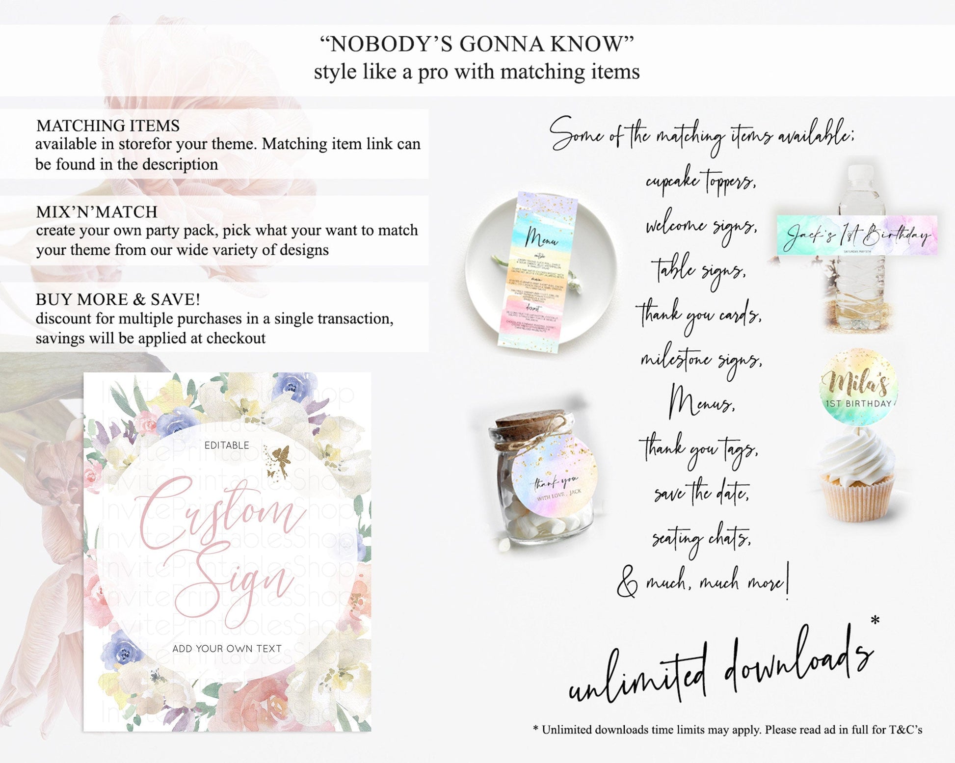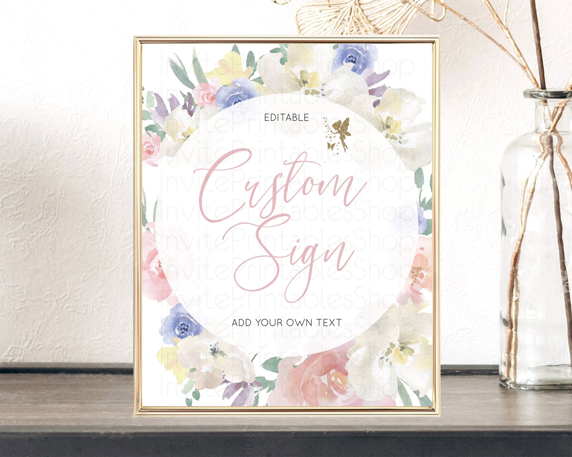 Fairy Sign Enchanted Garden Table Sign Decor Pastel Floral Butterfly Party Secret Garden Birthday Baptism Baby Shower Bridal Shower D10852