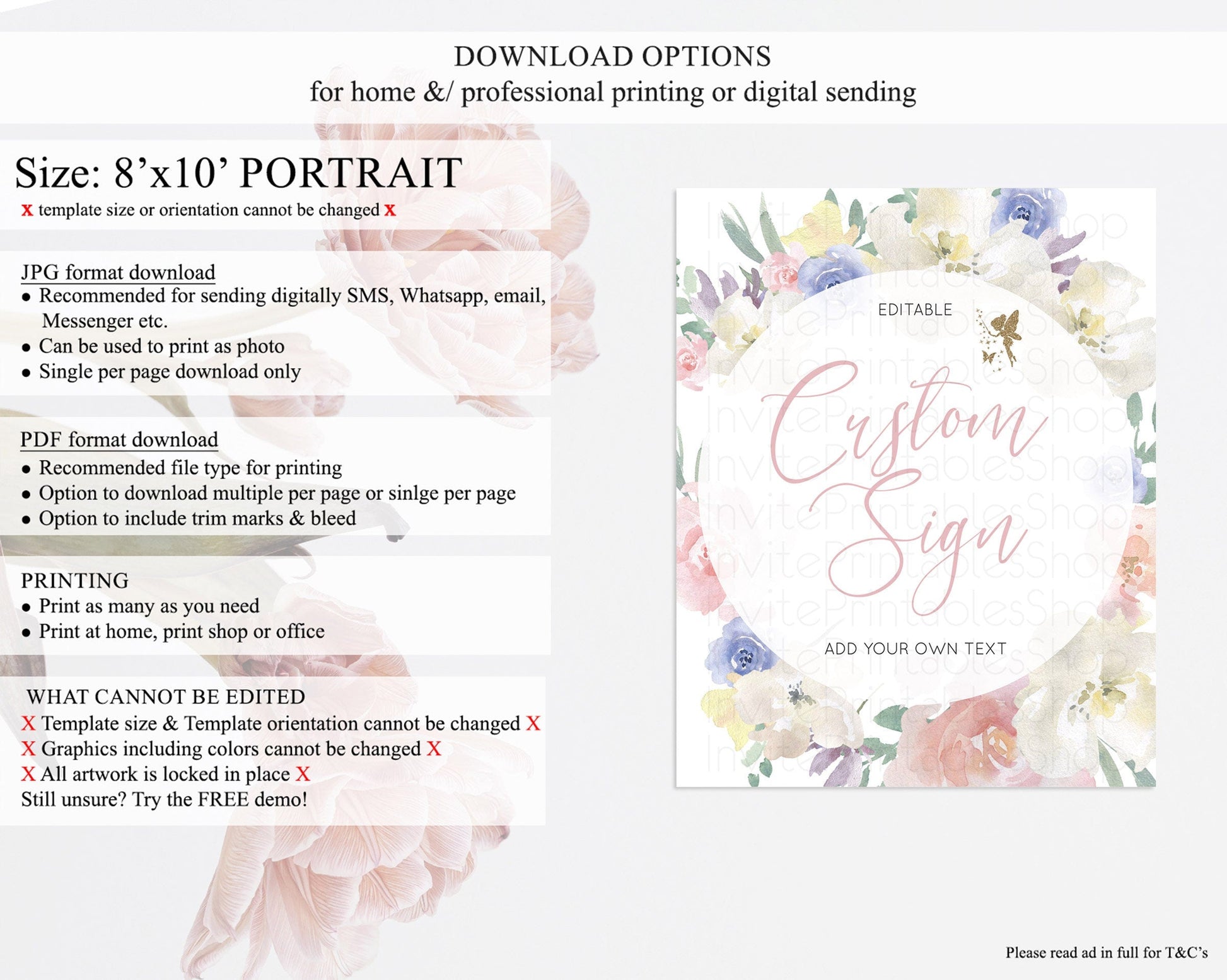• Template size & orientation cannot be changed. Please use the demo link to confirm this product suits your needs.
