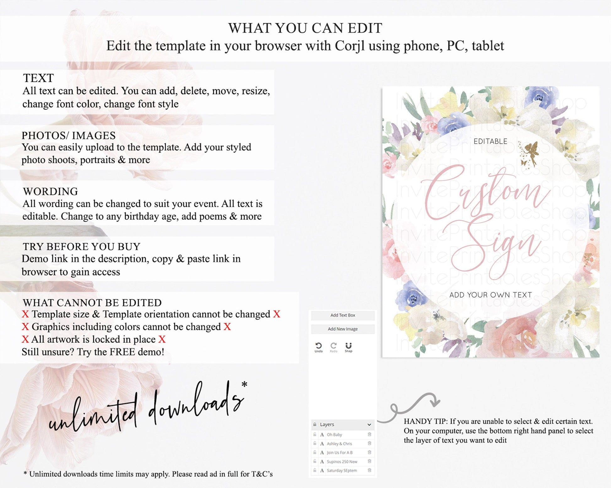 • After purchase, Corjl emails your editing link. Allow up to 15 minutes for delivery.