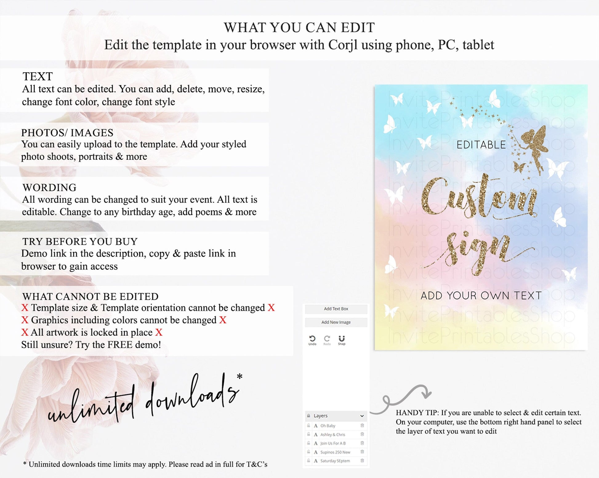 • After purchase, Corjl emails your editing link. Allow up to 15 minutes for delivery.