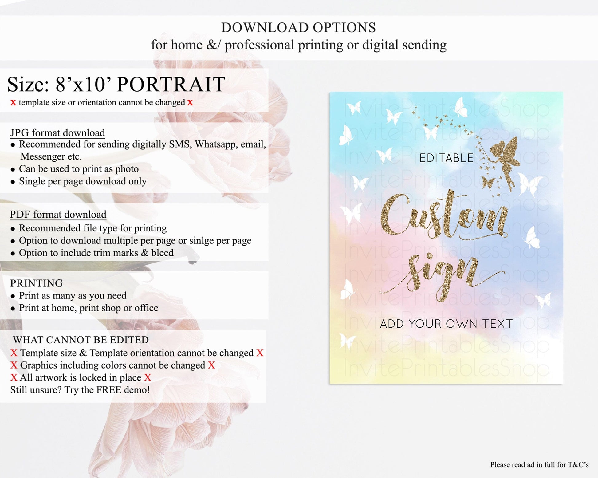 • Template size & orientation cannot be changed. Please use the demo link to confirm this product suits your needs.