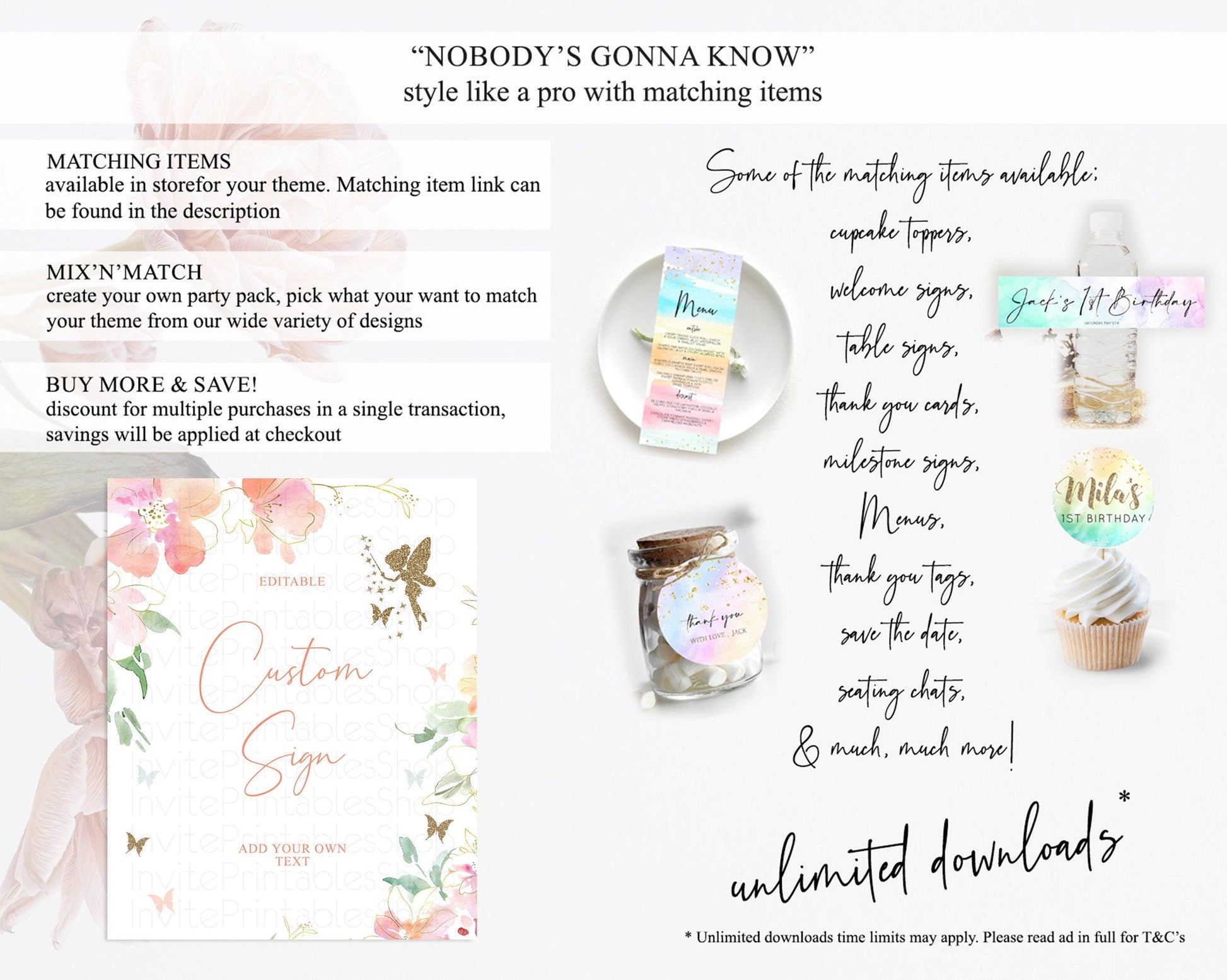 Fairy Sign Enchanted Garden Table Sign Decor Pastel Floral Butterfly Party Secret Garden Birthday Baptism Baby Shower Bridal Shower D10934