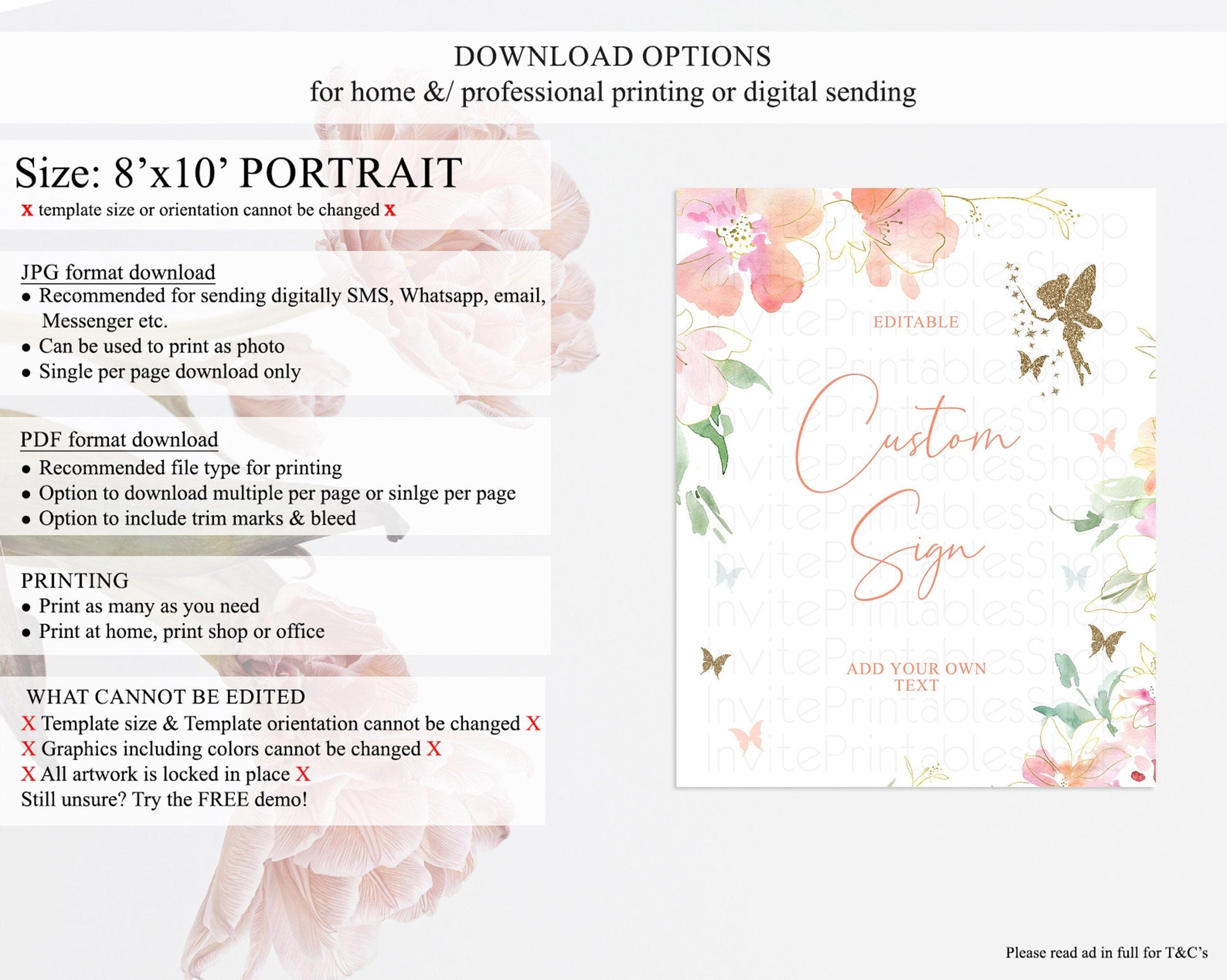 • Template size & orientation cannot be changed. Please use the demo link to confirm this product suits your needs.