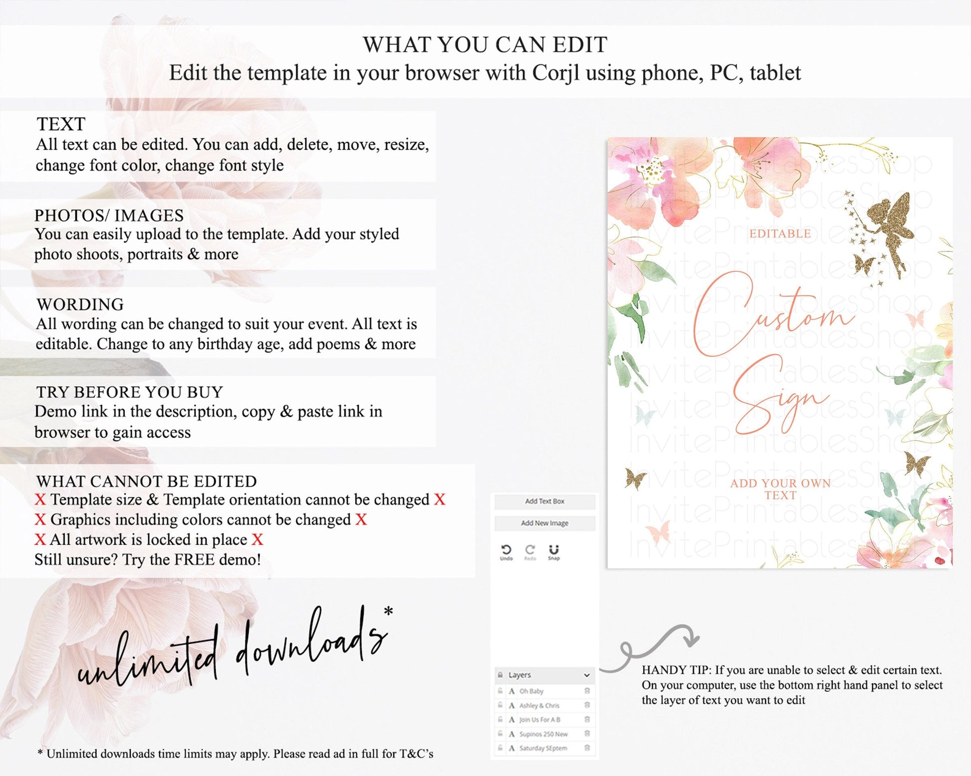 • After purchase, Corjl emails your editing link. Allow up to 15 minutes for delivery.