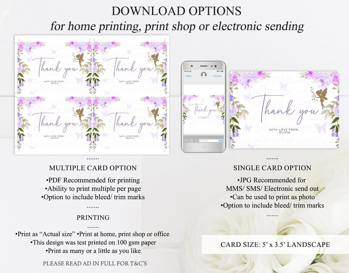 Fairy Thank You Card Fold Gold Purple Floral Tent Garden Enchanted Garden Thank You Card Kids Birthday Baby Shower Flat Postcard 47