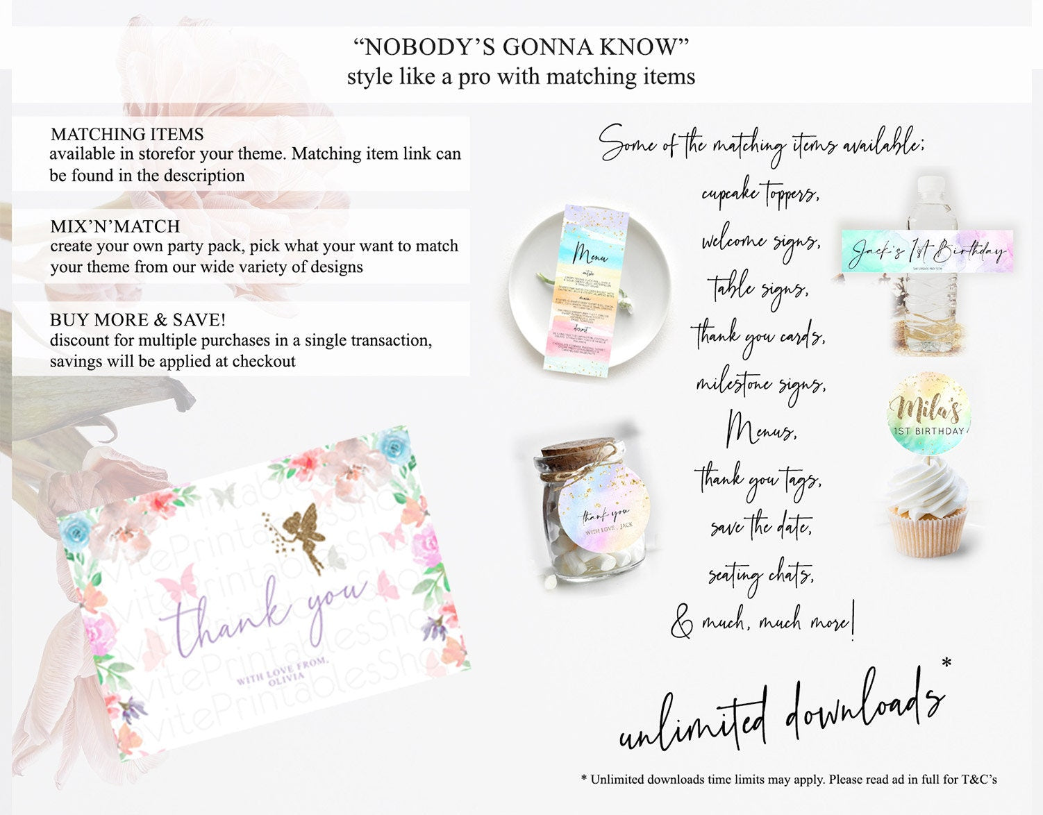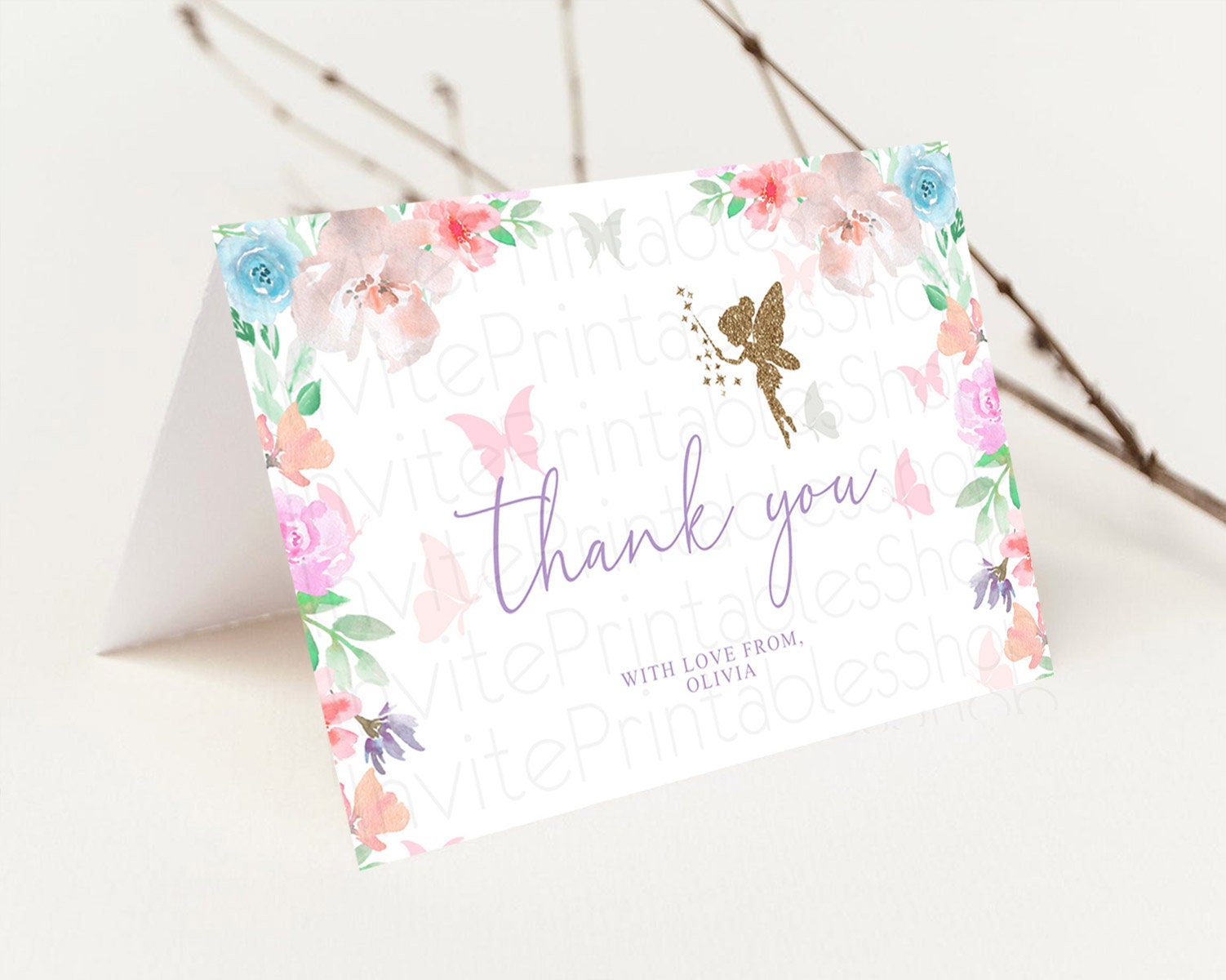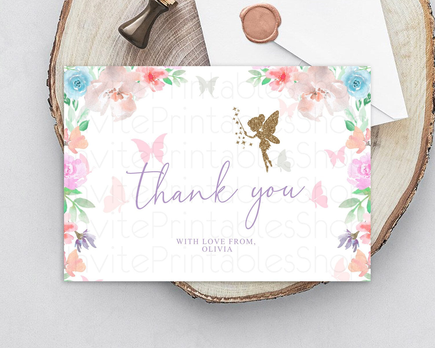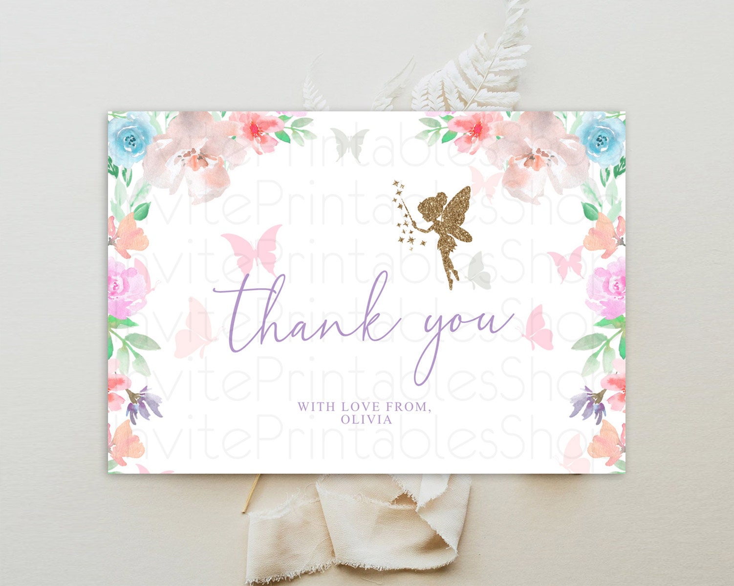 Fairy Thank You Fairy Thank You Card Enchanted Garden Pastel Butterfly Birthday Thank You Floral Secret Garden Teacher Thank You D10126