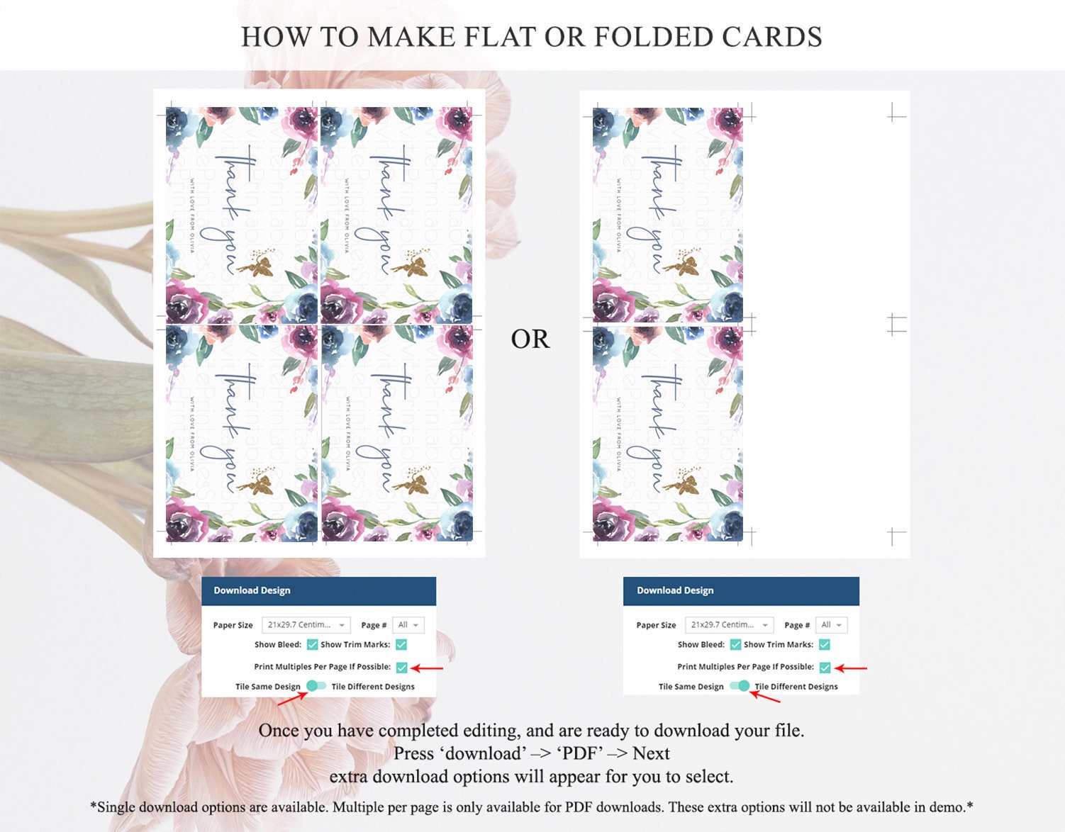 • Custom changes to artwork are not provided on existing templates.
