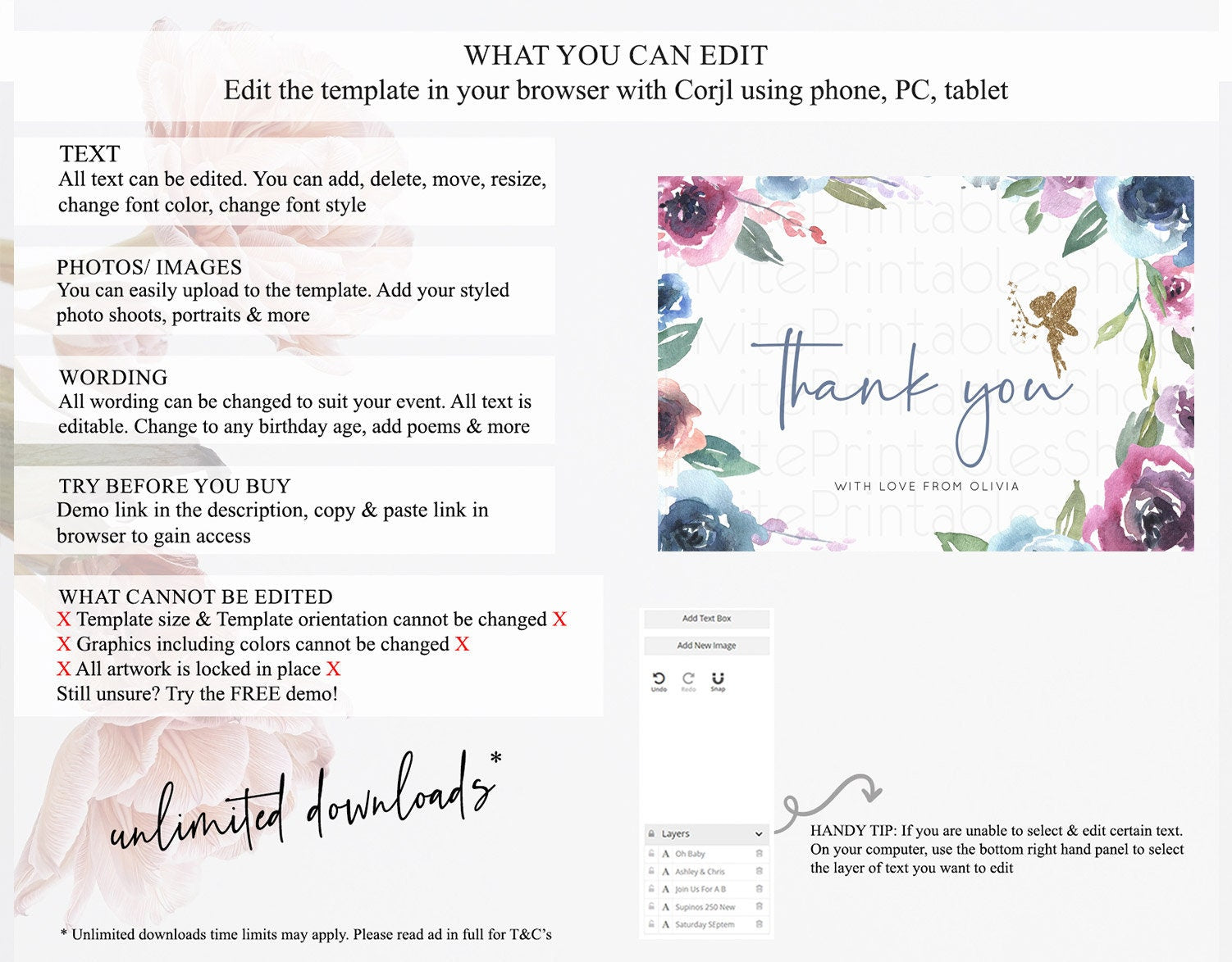 • After purchase, Corjl emails your editing link. Allow up to 15 minutes for delivery.